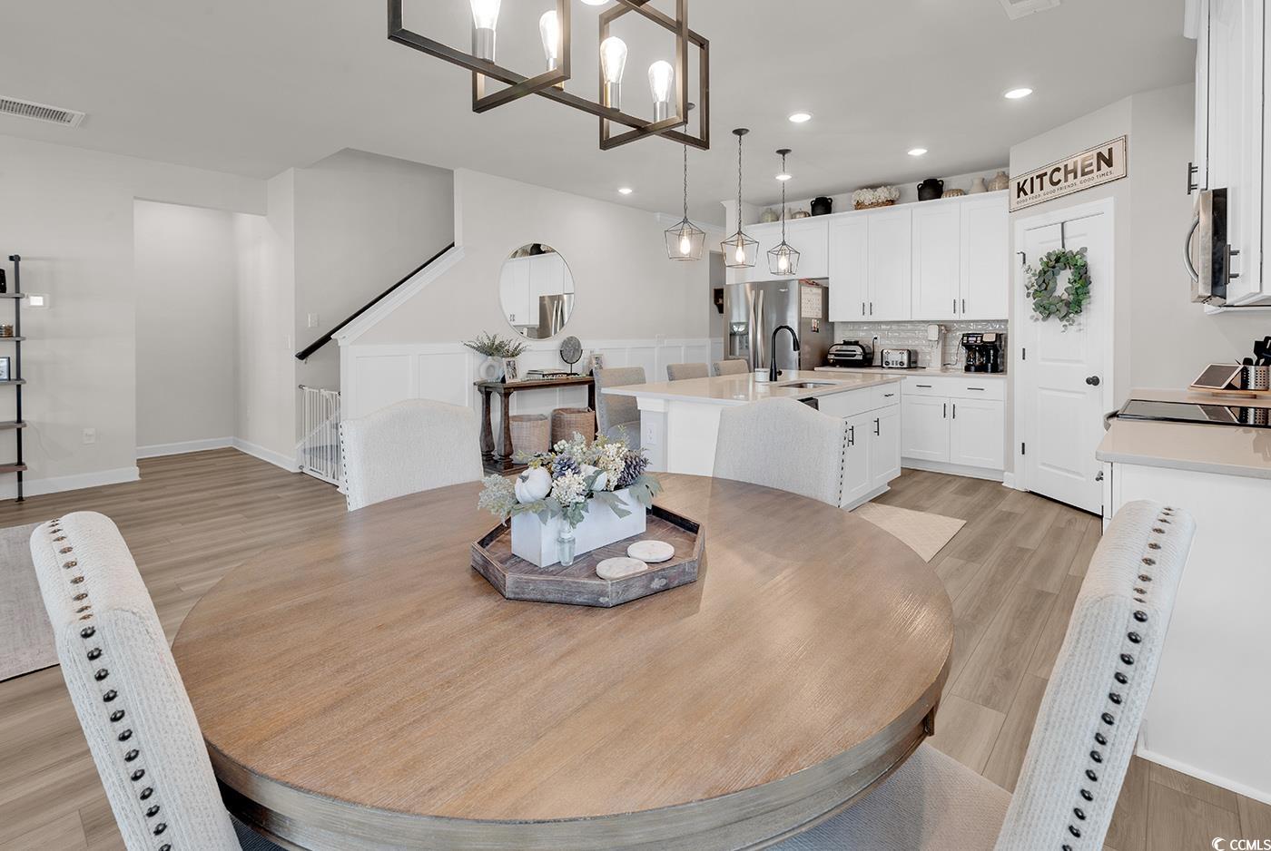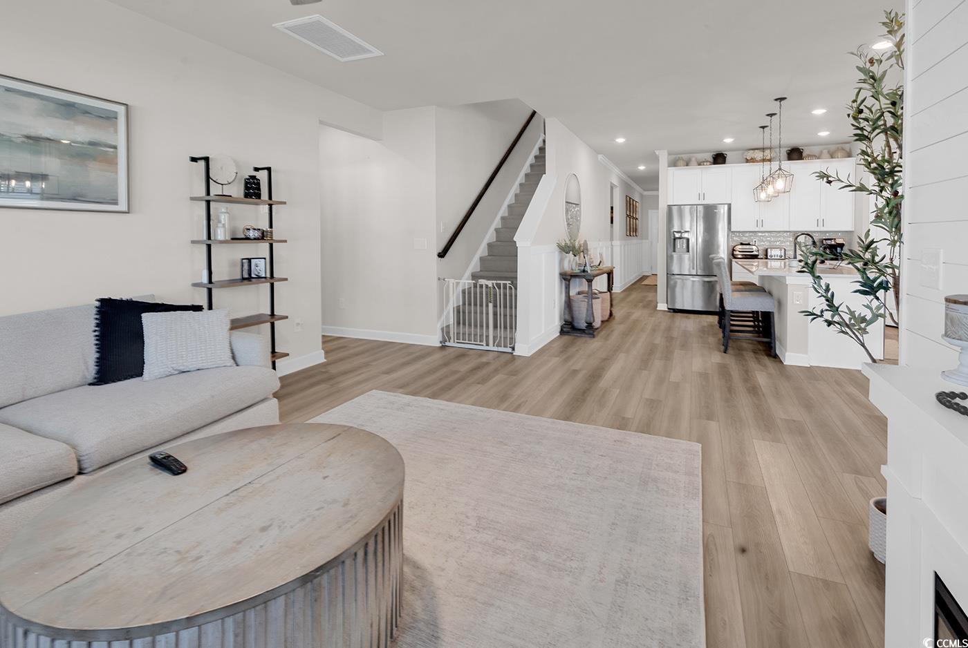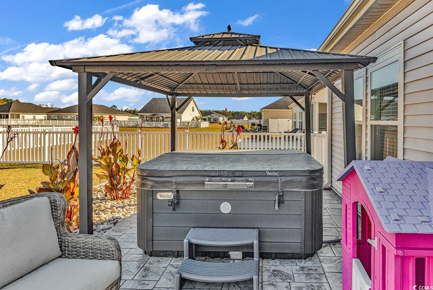 Move-in ready with a rare corner-lot setting in one of Little River’s most sought-after coastal communities. Extra-Large Corner Lot • 5 Bedrooms • 3 Bathrooms • Creekside Point Discover your dream home in Little River, South Carolina—where coastal charm meets modern design. This beautifully upgraded five-bedroom, three-bath home sits on an oversized corner lot, offering exceptional space, privacy, and curb appeal in the highly desirable Creekside Point community, just minutes from North Myrtle Beach and the Intracoastal Waterway. Inside, the open-concept layout is filled with natural light and thoughtful finishes. The kitchen features quartz countertops, stainless steel appliances, upgraded cabinetry with pull-out drawers, and custom lighting, flowing seamlessly into the dining and living areas. Post-construction upgrades include a decorative storm door, luxury vinyl plank flooring, wainscoting, a geometric accent wall in the office, an updated front bathroom, and a custom shiplap feature wall with mounted TV. Outdoor living shines with a screened porch, extended stamped-concrete patio, and fully fenced backyard accented by tropical palms. A hot tub and playground/swingset complete the space—ideal for relaxation and entertaining. The main-level owner’s suite offers a walk-in closet and spa-style bath, while upstairs includes two additional bedrooms, a full bath, and a bonus room providing flexible living options. The HOA includes high-speed internet and trash pickup service, adding everyday convenience and value.