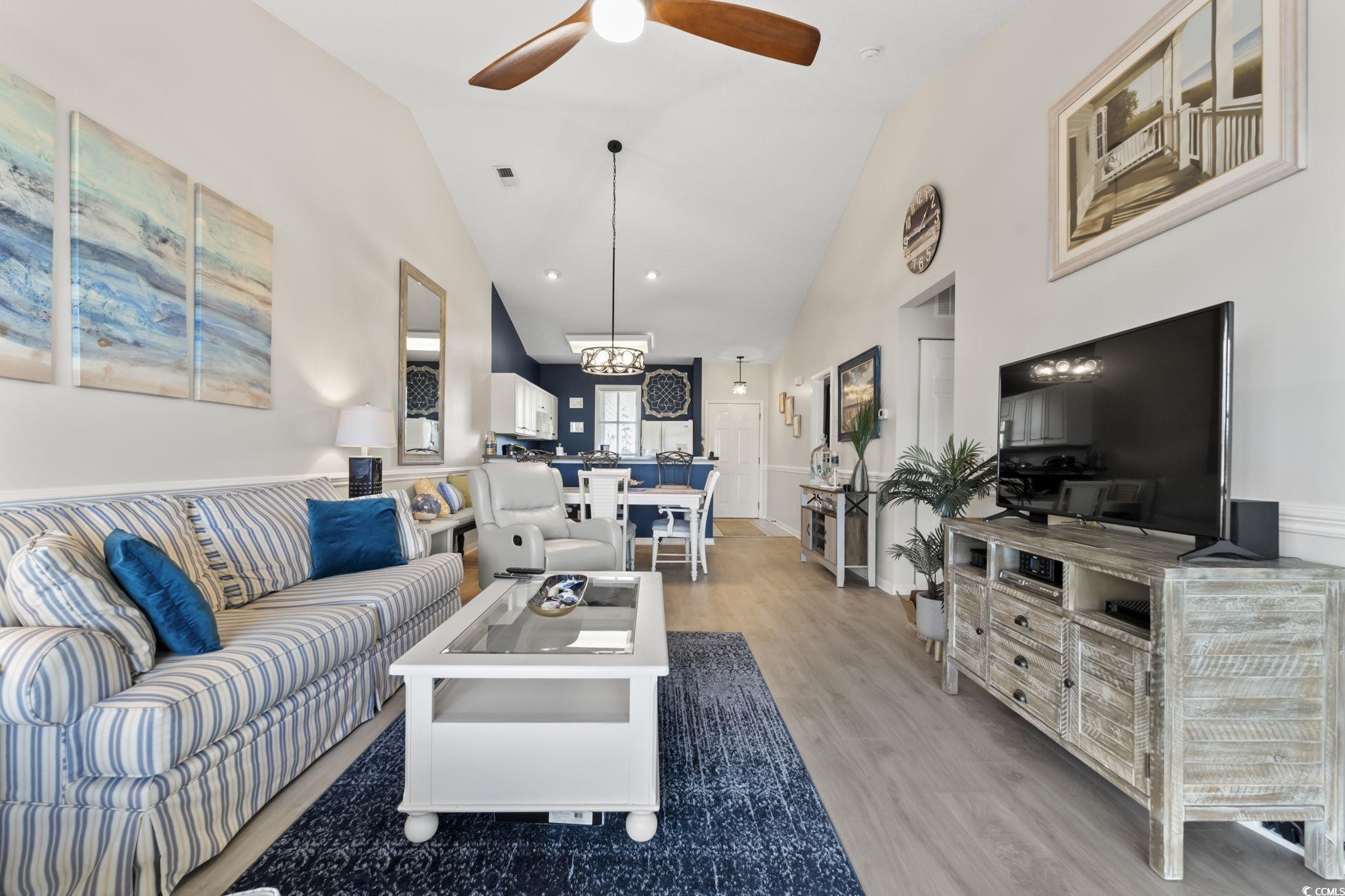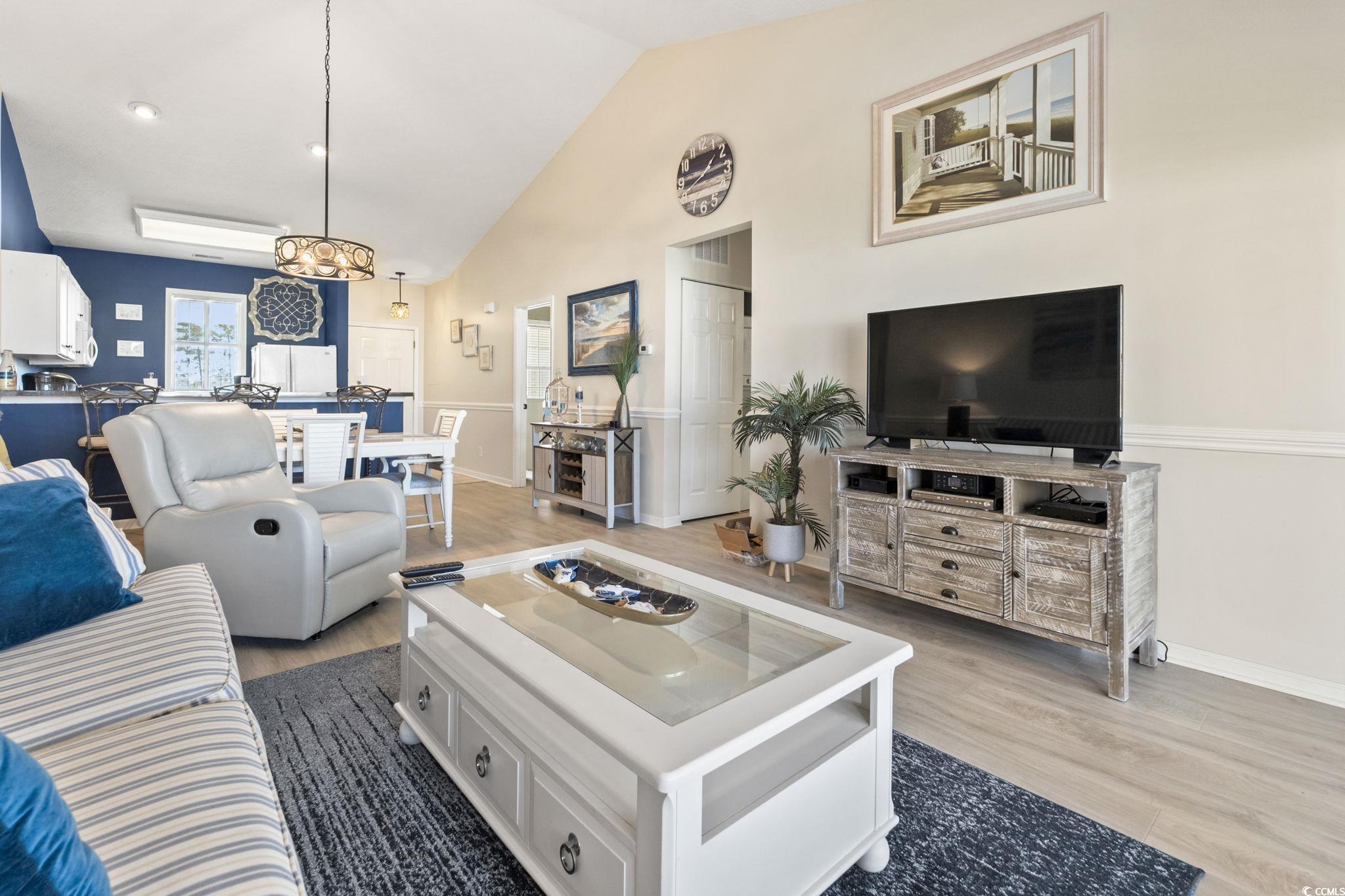 Look at this beautifully furnished 2 bedroom, 2 bath condo located in the Carolina Keyes community in North Myrtle Beach. This Intra-Coastal Waterway community offers the perfect blend of prime location and convenience being just minutes from the beach, shopping, dining, and entertainment of North Myrtle... while still having the quiet community feel people love. Now, walk inside and see high vaulted ceilings and feel the charming coastal vibe. It is tastefully decorated and furnished, this property is truly turn-key.. just bring your clothes and a tooth brush. There is new laminate flooring in the main area and bedrooms and the whole interior has been freshly repainted. The master suite is large, bright and airy. This entire property has no shortage of windows and light! It has its own ensuite bath and walk-in closet, as well as access to the big screened porch. The guest bedroom has its own access to the guest bathroom too, everything with this layout was well thought out! The living room opens to a private balcony through sliding glass doors, creating a relaxing space to enjoy the coastal breeze. Again, this condo is being sold fully furnished, making it move-in or rental ready. Note: it is the biggest floor plan in the development, many of the others are 900 sq ft or less, this one is almost 1100! Carolina Keyes offers fantastic amenities, including an outdoor pool, waterway access and a common area with tables that can be used for out door gatherings. This area is very golf-cartable to all that North Myrtle Beach has to offer, nice units like this go fast when they come available, so act quickly! Call your agent for a showing today.