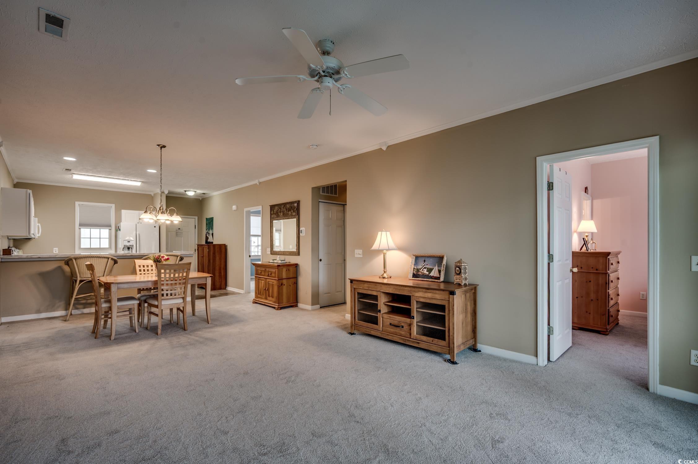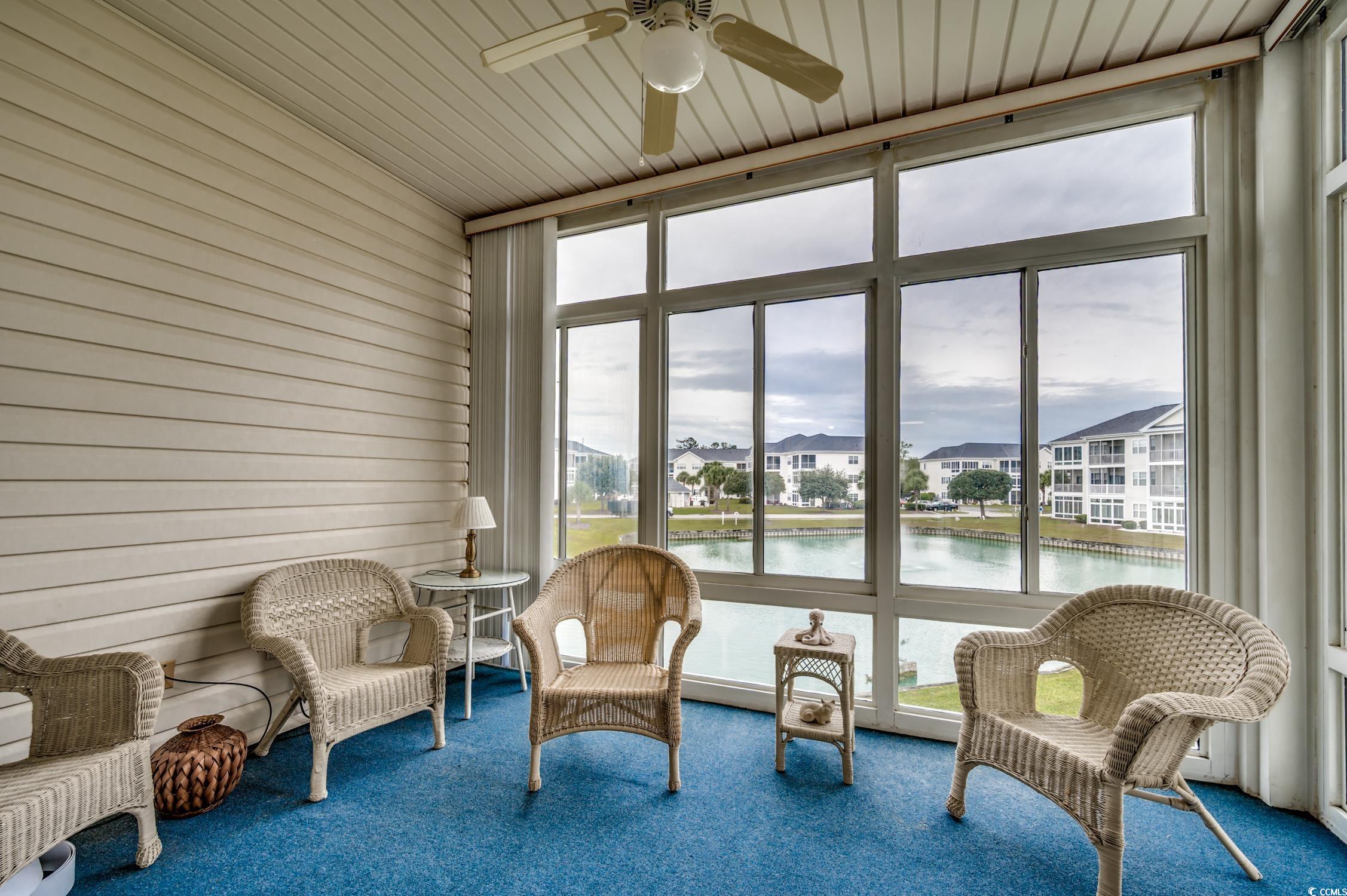 Experience the best of beach living at Carolina Keyes! Located in a sought after Intracoastal Waterway community , this beautifully maintained and partially furnished 2 bedroom, 2 bath condo is just a short golf cart ride to the beach!Step inside to find a bright, crisp kitchen with white cabinetry, all white appliances, a breakfast bar and plenty of cabinet space. the open concept layout features a spacious living and dining area with new carpet in the main rooms and laminate flooring in kitchen and baths. Relax in the enclosed Carolina room with sliding glass doors leading out from living room, perfect for enjoying your morning coffee or evening meal white taking in the tranquil lake views. The large primary suite offers a walk in closet and private bath, while the second bedroom has its own access to the guest bath. This inviting condo includes a new HVAC system installed in 2025 ,washer and dryer and outdoor storage closet for all your beach chairs, coolers, fishing gear, etc. This amazing community offers two outdoor pools, grilling areas, a boardwalk area and two docks on the ICW. The LOW HOA fee includes your water, trash, cable, internet and building insurance, along with maintaining the beautiful community. Carolina Keyes is a golf cart friendly community in the heart of North Myrtle Beach and is close to shopping, restaurants, Golf Courses, entertainment and the sparkling beach! Perfect primary residence, beach getaway or investment property as short term and long term rentals are allowed! Don't miss out on this opportunity!!!