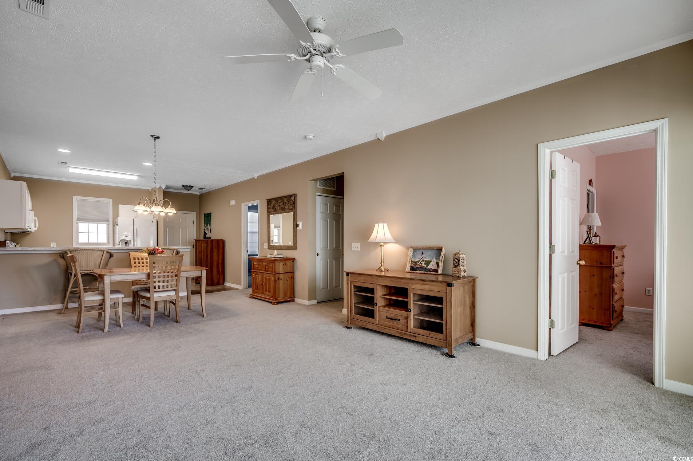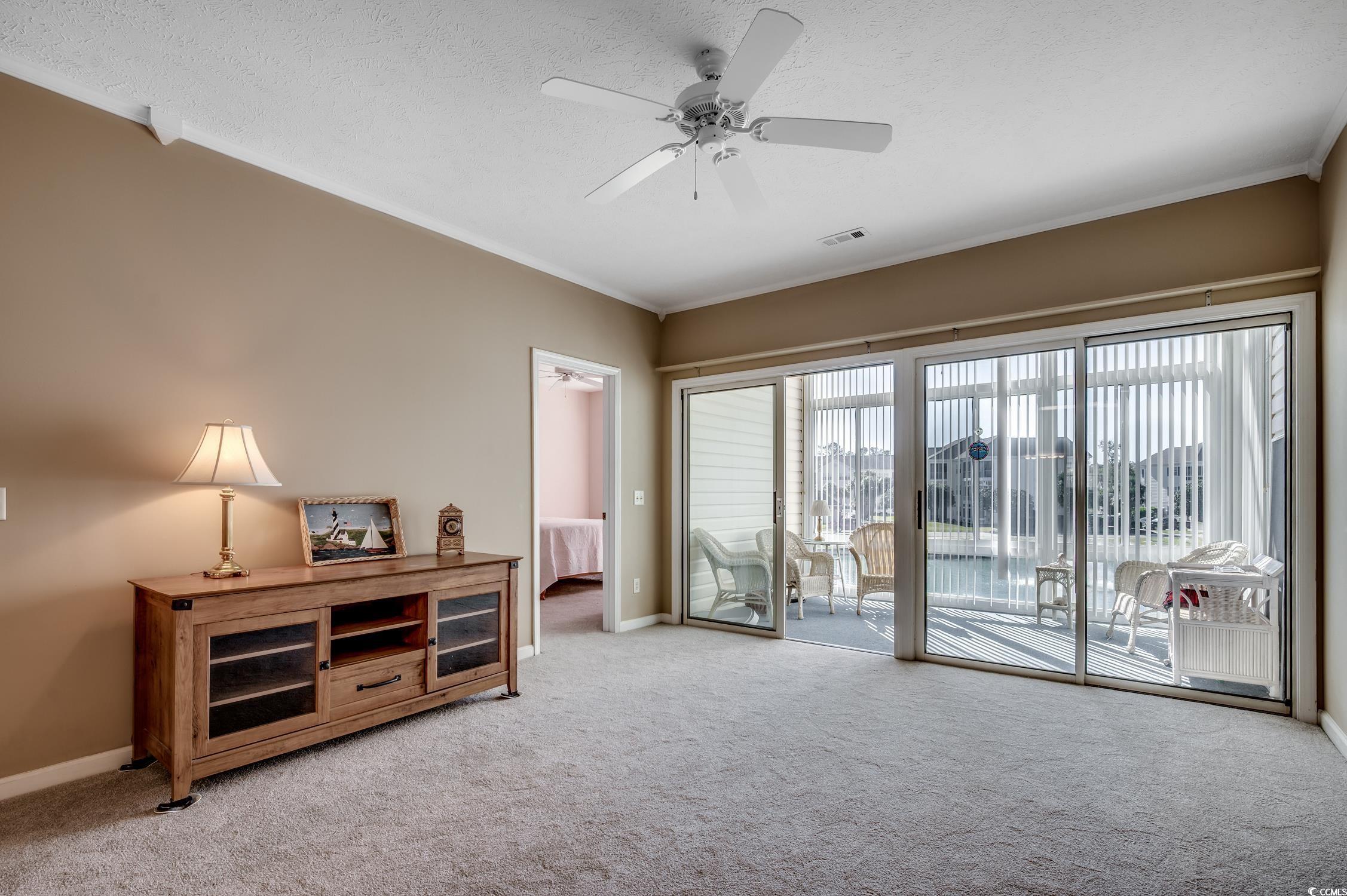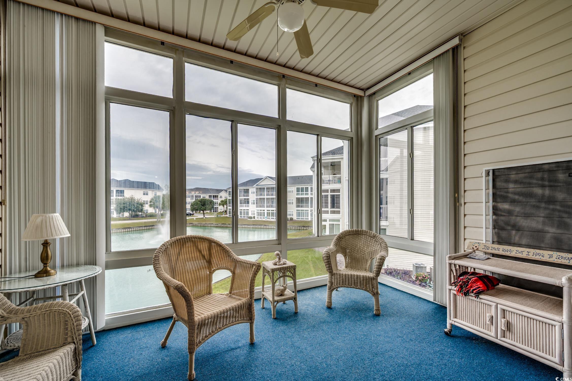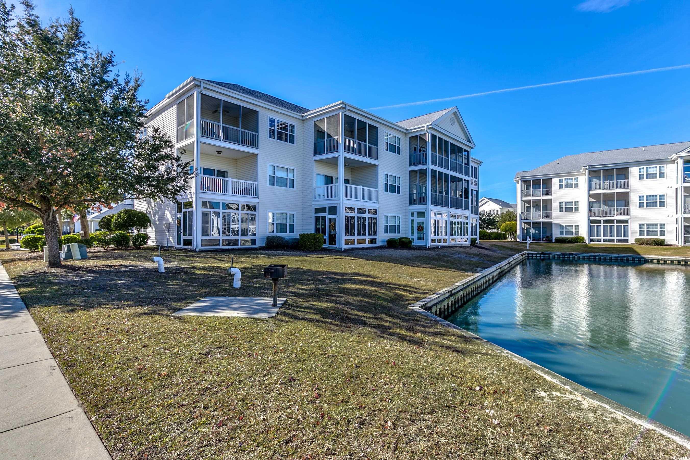 Experience the best of beach living at Carolina Keyes! Located in a sought after Intracoastal Waterway community , this beautifully maintained and partially furnished 2 bedroom, 2 bath condo is just a short golf cart ride to the beach!Step inside to find a bright, crisp kitchen with white cabinetry, all white appliances, a breakfast bar and plenty of cabinet space. the open concept layout features a spacious living and dining area with new carpet in the main rooms and laminate flooring in kitchen and baths. Relax in the enclosed Carolina room with sliding glass doors leading out from living room, perfect for enjoying your morning coffee or evening meal while taking in the tranquil lake views. The large primary suite offers a walk in closet and private bath, while the second bedroom has its own access to the guest bath. This inviting condo includes a new HVAC system installed in 2025 ,washer and dryer and outdoor storage closet for all your beach chairs, coolers, fishing gear, etc. This amazing community offers two outdoor pools, grilling areas, a boardwalk area and two docks on the ICW. The LOW HOA fee includes your water, trash, cable, internet and building insurance, along with maintaining the beautiful community. Carolina Keyes is a golf cart friendly community in the heart of North Myrtle Beach and is close to shopping, restaurants, Golf Courses, entertainment and the sparkling beach! Perfect primary residence, beach getaway or investment property as short term and long term rentals are allowed! Don't miss out on this opportunity!!!