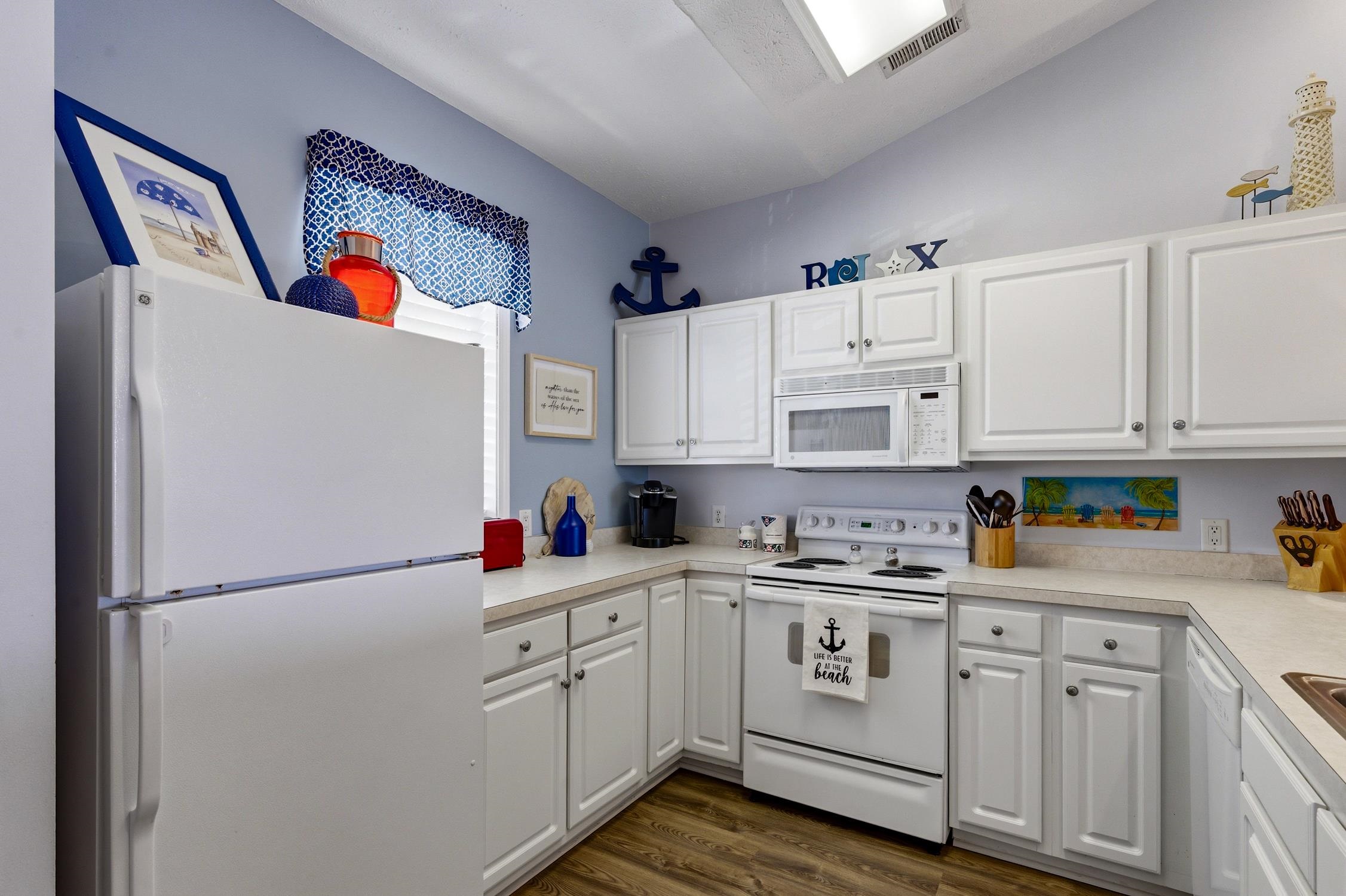 Welcome to the easy rhythm of coastal living in Carolina Keyes — a charming Intracoastal Waterway community just minutes from the beach. This beautifully maintained 2BR/2BA Hatteras model features new LVP flooring, fresh neutral paint, and soaring cathedral ceilings that fill the space with natural light and an airy, relaxed feel. Sold partially furnished, it’s ready for you to settle in and start enjoying the lifestyle from day one. Spend your mornings walking the scenic boardwalk along the Intracoastal, afternoons lounging by one of the two pools and spas, and evenings grilling with friends at the waterfront pavilions while boats drift by. With two community docks and peaceful water views throughout, life here feels like a permanent vacation. Just a short ride to the beach and close to Main Street’s restaurants, shops, and entertainment, this is more than a condo — it’s a place to slow down, unwind, and truly enjoy where you live.