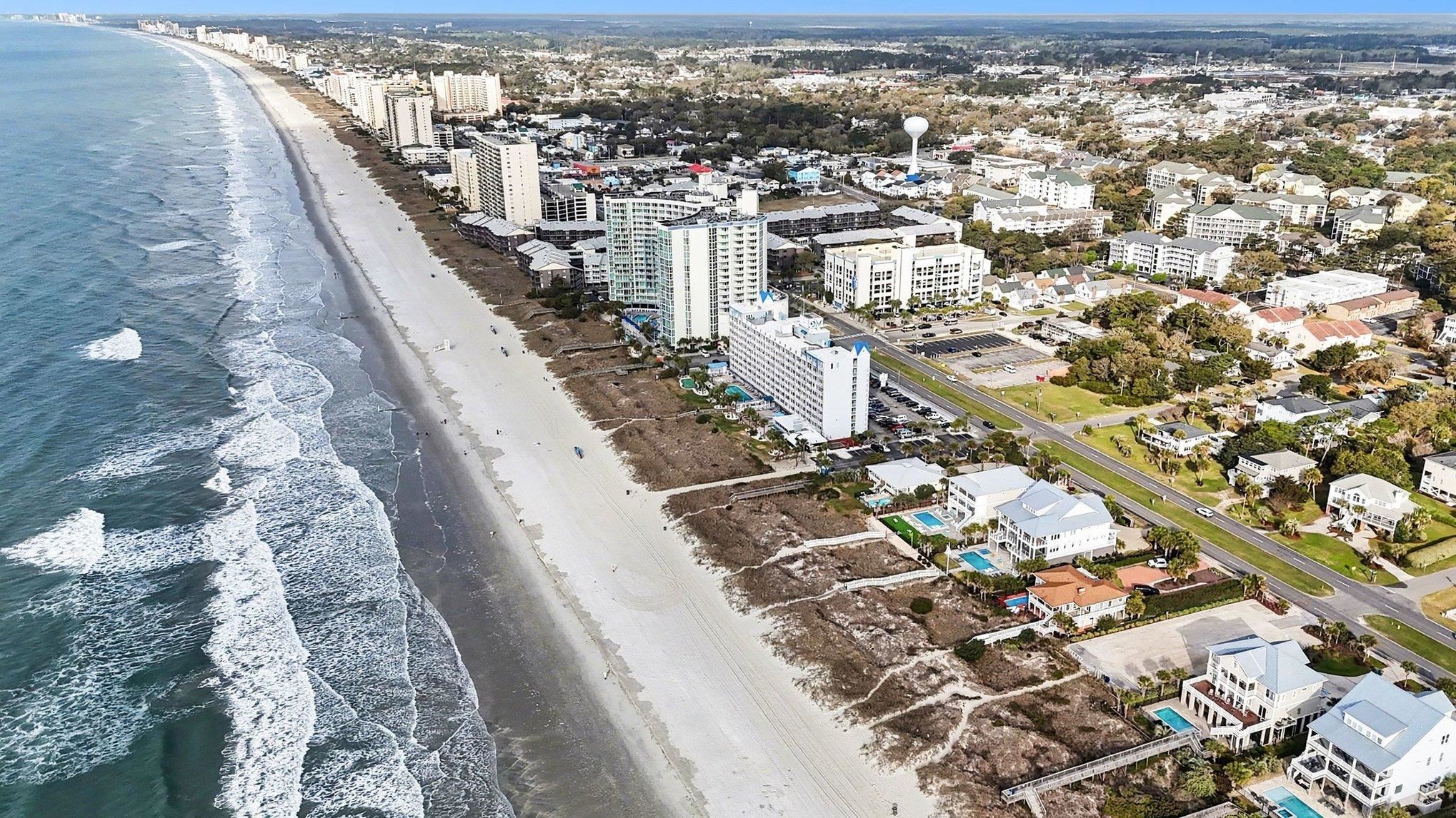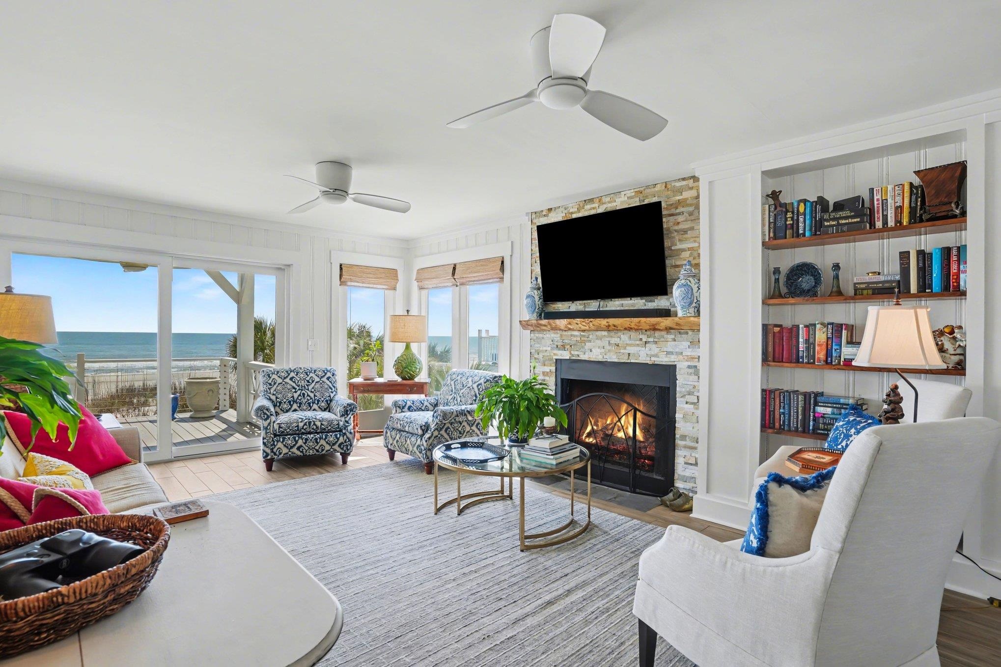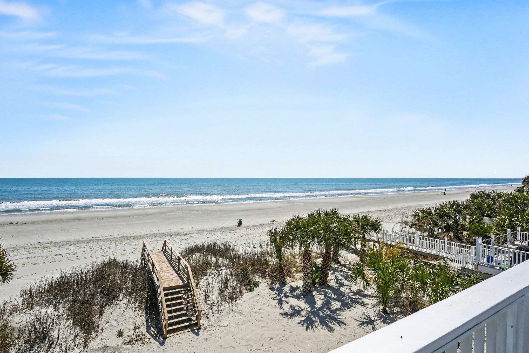 Welcome to your oceanfront paradise! Situated on an elevated .25 acre lot, this beautiful updated 3 bed 3 bath raised beach house has incredible views of the coast and is move in ready! Renovations in 2016 to the exterior and interior (down to the studs) include the addition of Hardie Plank siding, a fireplace, new sliders, LVP flooring, remodeled kitchen, including a new Bosch dishwasher in 2022 and new refrigerator in 2025, a fourth bedroom was converted to a dining room, and the porch was redone. With ceiling fans throughout and ocean views from almost every room, the first level boasts a spacious living room with sliders to the rear porch, stone framed gas fireplace, built in bookcase, and beadboard walls, formal dining room with crown molding, and a spectacular kitchen with tile backsplash, stainless appliances, gas stove, abundant cabinets, solid surface counters, soft close drawers, cabinet with pantry and pull out drawers, a work island, and a breakfast bar. On the first level there is also a bedroom with ocean views, balcony access and ensuite bath with vanity and shower and a washer and dryer just off the living area. If you dream of waking to the sounds and sights of the ocean, the second-floor primary master suite provides this perfect backdrop and includes a walk-in closet, bath with vanity and tub/shower and direct access to the balcony where you can enjoy your morning coffee or favorite book. In addition, a third bedroom with balcony access and ocean views on the second floor has an ensuite bath with double sink vanity and tub/shower and a walk-in closet and there is a reading nook just off the hallway. Outside, the expansive oceanside rear porch has double ceiling fans and room for everyone to gather for cocktails and al fresco dining plus after a long day on the beach or visiting local attractions, there is a hot tub to relax in and savor the ocean breezes. There is also a private walkway to the beach, an outdoor shower and parking for eight vehicles. Fantastic central location close to so many award-winning restaurant options, golf, fishing, Garden City Pier, Marlin Quay Marina, The MarshWalk at Murrells Inlet, Brookgreen Gardens, and just a short drive to Market Common, the airport, Broadway at the Beach and all the attractions and entertainment that Myrtle Beach has to offer. Whether you are looking for the forever home of your dreams, a perfect coastal retreat, or an investment property, the breathtaking views and ideal location provide a wonderful opportunity to make every day feel like you are on vacation! Make an appointment to view this fabulous home today!