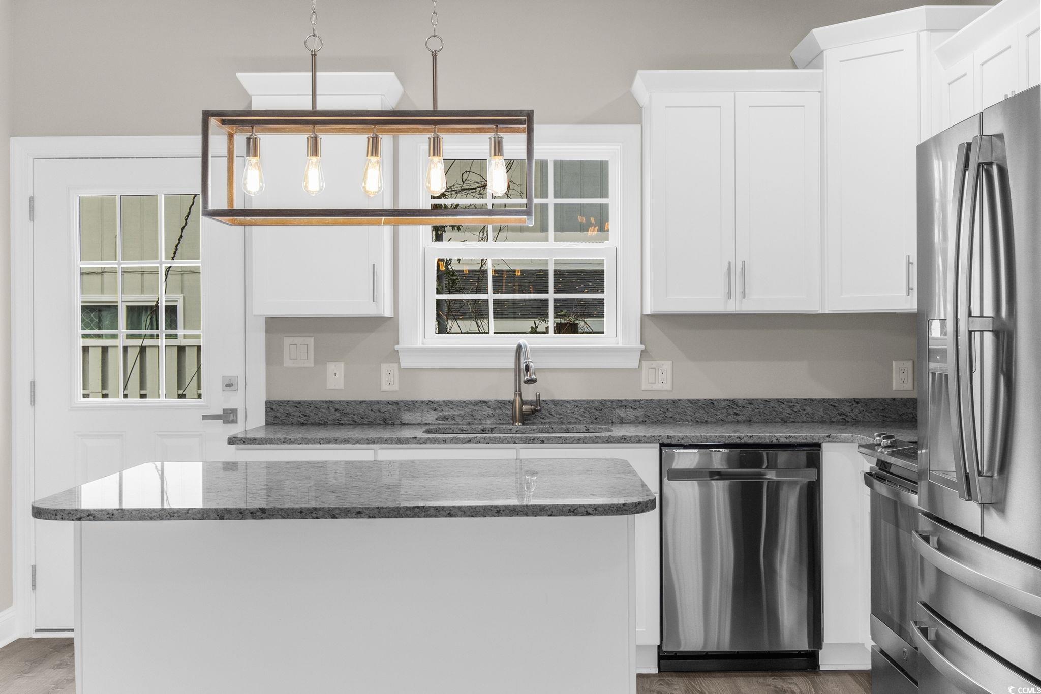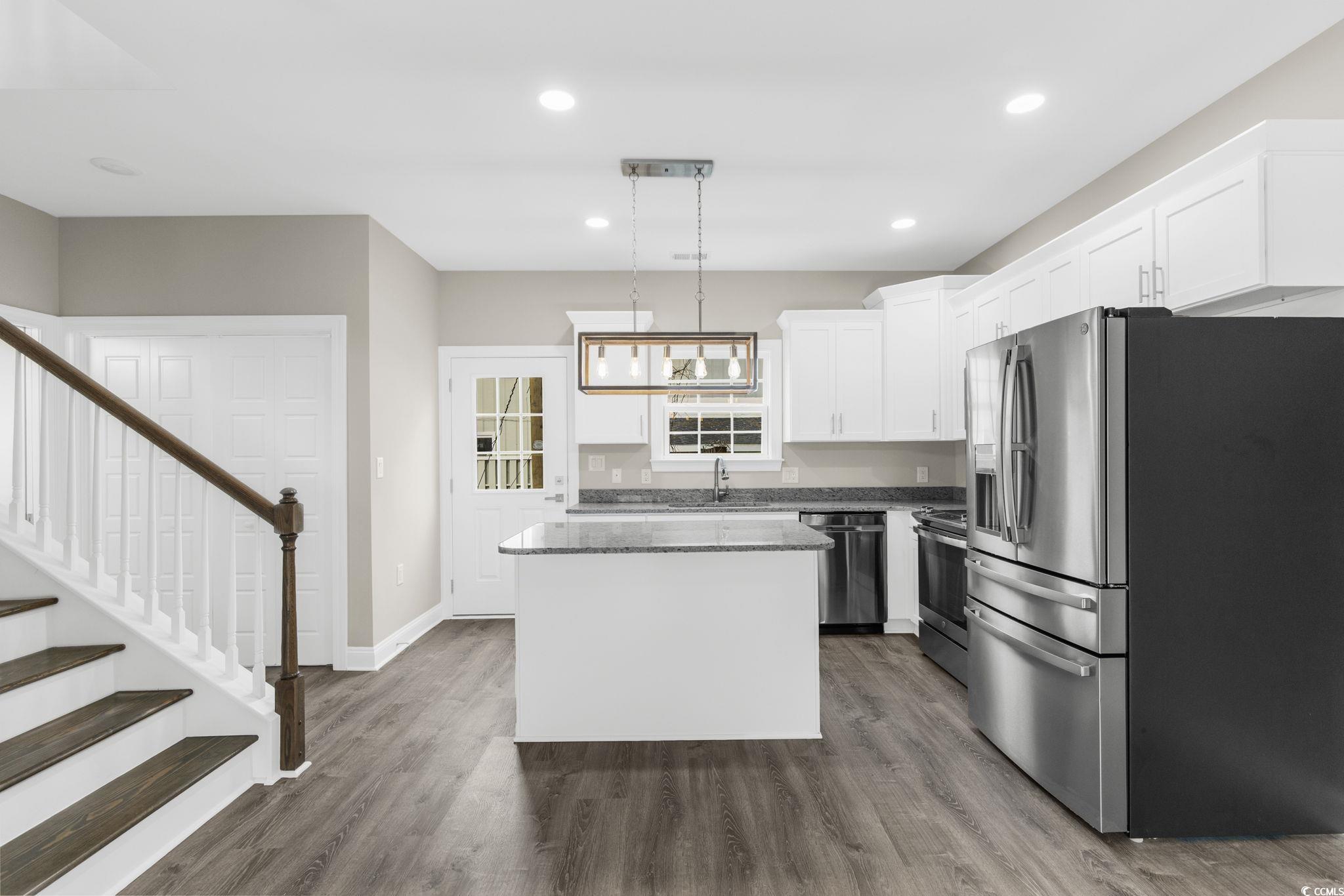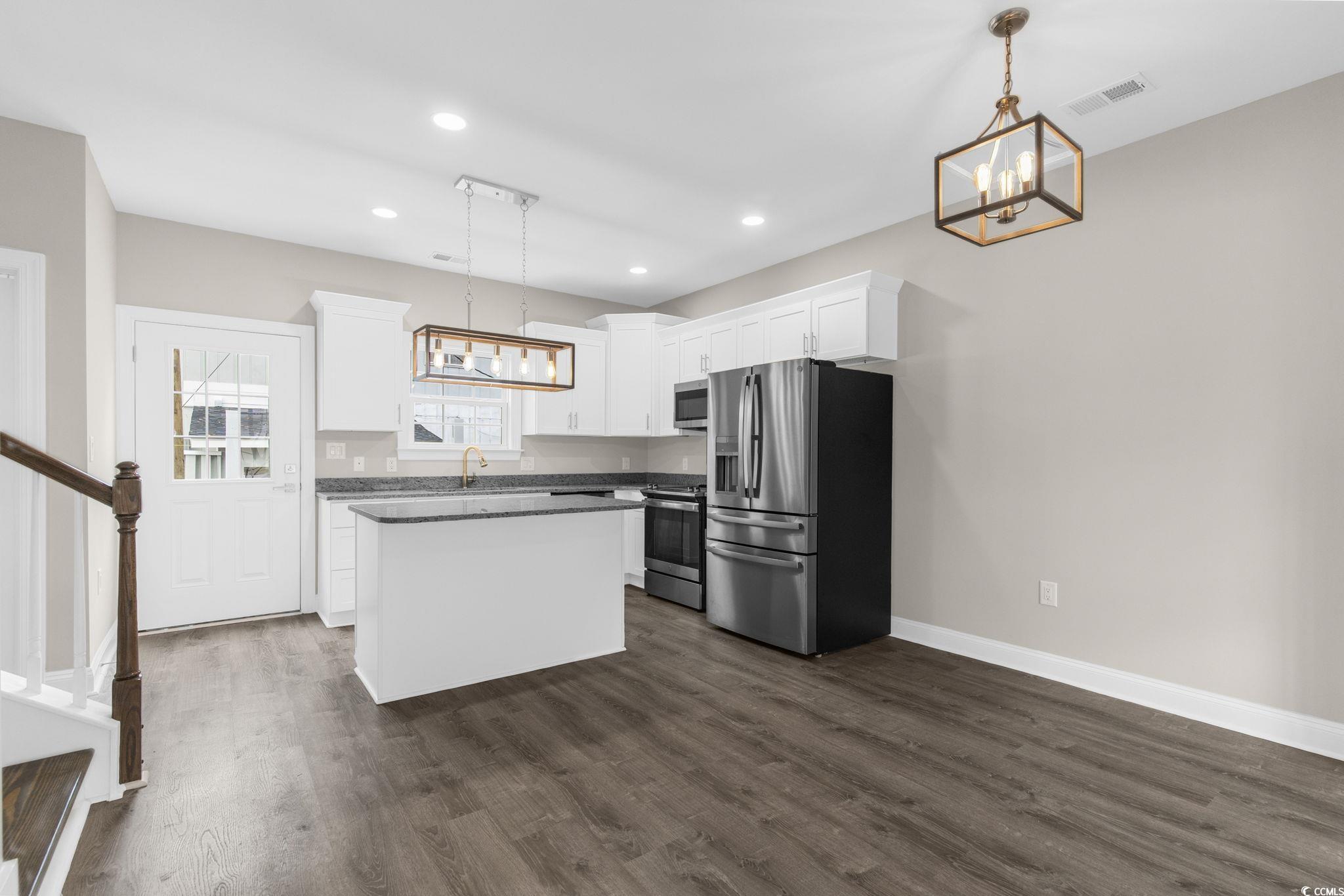 Welcome to Portofino Villas on 62nd, where coastal luxury meets maintenance-free living in these newly constructed townhomes. Just 1 mile from the beach, these exquisite homes are move-in ready and designed to elevate your lifestyle. Each villa, meticulously crafted with attention to detail, features 3 bedrooms and 2.5 baths and a 1 car garage! The interiors boast designer upgrades, including beautiful lighting, ceiling fans with lights, and wide-plank Luxury Vinyl Flooring throughout, creating a sophisticated ambiance. The heart of these homes are the designer kitchens, equipped with upgraded cabinetry, crown molding, stainless steel GE appliances, a granite center island, and countertops. The dining and living areas provide natural light through double large windows, providing ample space for family gatherings. The first floor hosts a convenient laundry room designed for a full-size washer and dryer, as well as a powder room with a pocket door. For privacy, all three bedrooms are located on the second level, accessible via a wooden staircase leading to a loft area. The master suite is a retreat with large windows, a walk-in closet, and an upgraded ensuite featuring a walk-in tile shower, tile flooring, and a cabinet-style vanity. The remaining two bedrooms have spacious closets and share a full bathroom. These villas go beyond the interiors, offering a garage for extra storage or even a golf cart. Positioned just over a mile from the beach, you can easily enjoy a golf cart ride to the stunning beaches, restaurants, and shopping in the area. Exterior features include a lead glass front door, garage door with accent windows, upgraded lighting, and attractive masonry accents. Whether you prefer grilling on your patio or watching the sunset from your front porch, Portofino Villas provides the perfect setting. The homeowners' association (HOA) takes care of common area maintenance, landscaping, grass maintenance for each unit, and building insurance. Trash pickup, provided weekly by the City of Myrtle Beach, is included in property taxes. Please note that the pictures shown are from the furnished model, and there are two unit styles available, both interior and exterior, allowing you to choose the perfect villa that suits your taste and lifestyle.
