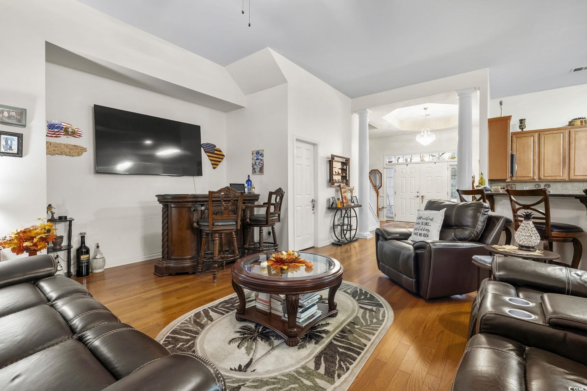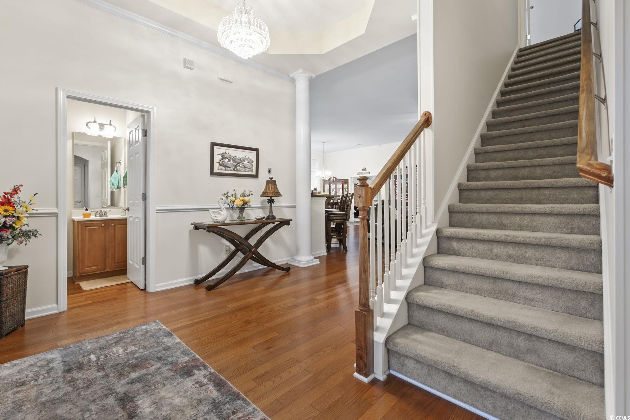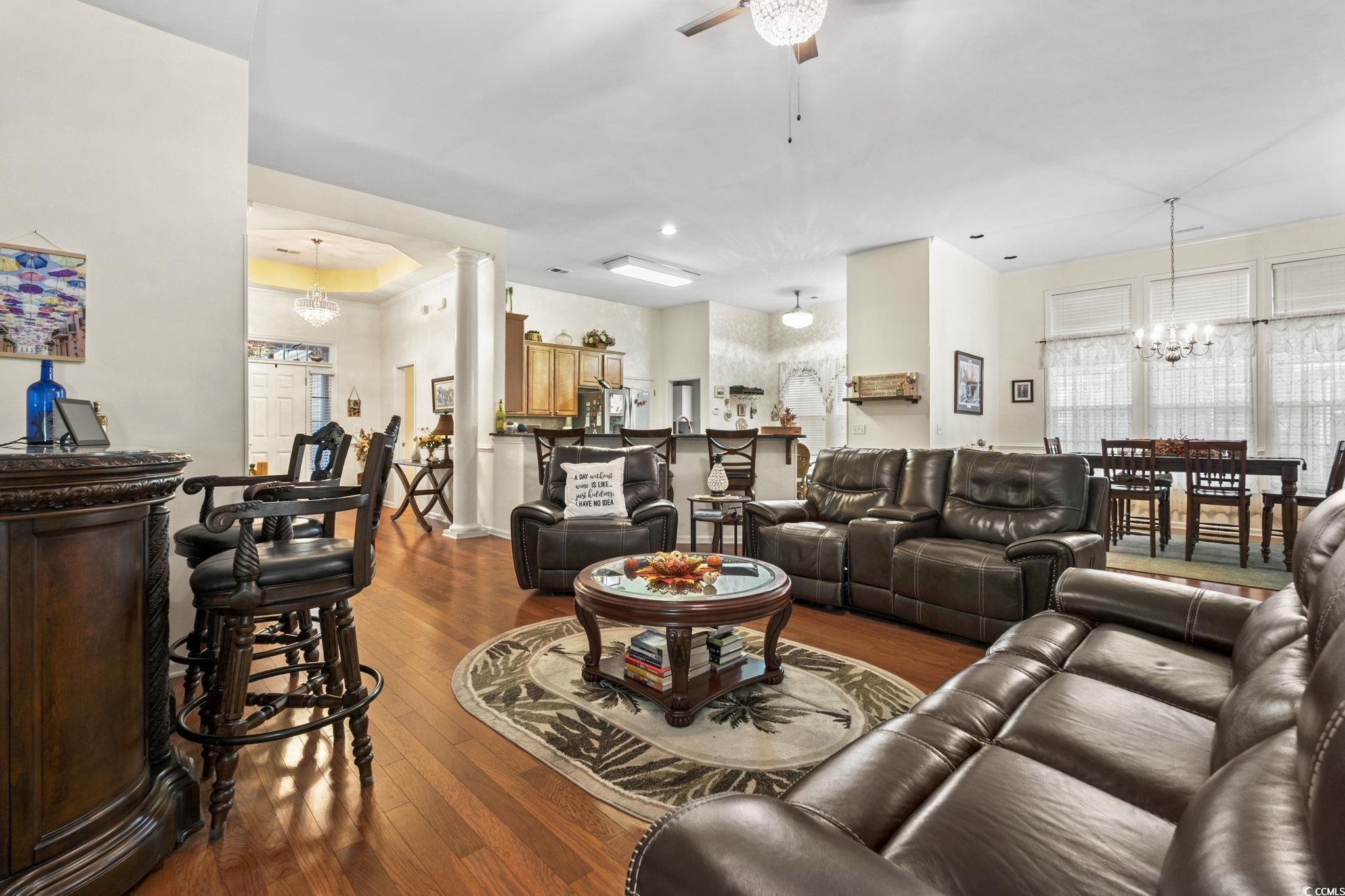 Spend the holidays in your new home located in the desirable Myrtle Trace Grande 55+ community! This spacious Cumberland model offers plenty of room and storage throughout. From the moment you walk in, you’ll feel right at home. The grand open entry flows seamlessly into the living, dining, and kitchen areas perfect for entertaining your family and friends. Featuring 3 bedrooms and 2.5 baths on the main level, including a large primary suite with both a walk-in and linen closet, huge double vanity and gorgeous walk-in shower, this home provides comfort and convenience. Upstairs, you’ll find an additional bedroom, full bath, and a versatile den/bedroom ideal for guests . The main floor also includes a private office with elegant glass French doors and a serene Carolina room for enjoying your morning coffee or quiet afternoons. Love to cook? The spacious kitchen offers plenty of room for everyone to join in and help prepare your favorite holiday treats with tons of counter space and storage throughout. This well-maintained home features beautiful wood floors, a recent HVAC upgrade with a UV light system, tinted windows throughout the entire home and gorgeous landscaping with a stunning driveway. Unwinding by the community pool or just Barbequing in your backyard, Myrtle Trace Grande is the perfect place for you. Conveniently located near shopping, dining, golf, and the beach. Come see why this home is the perfect place to spend the holidays and every season beyond!