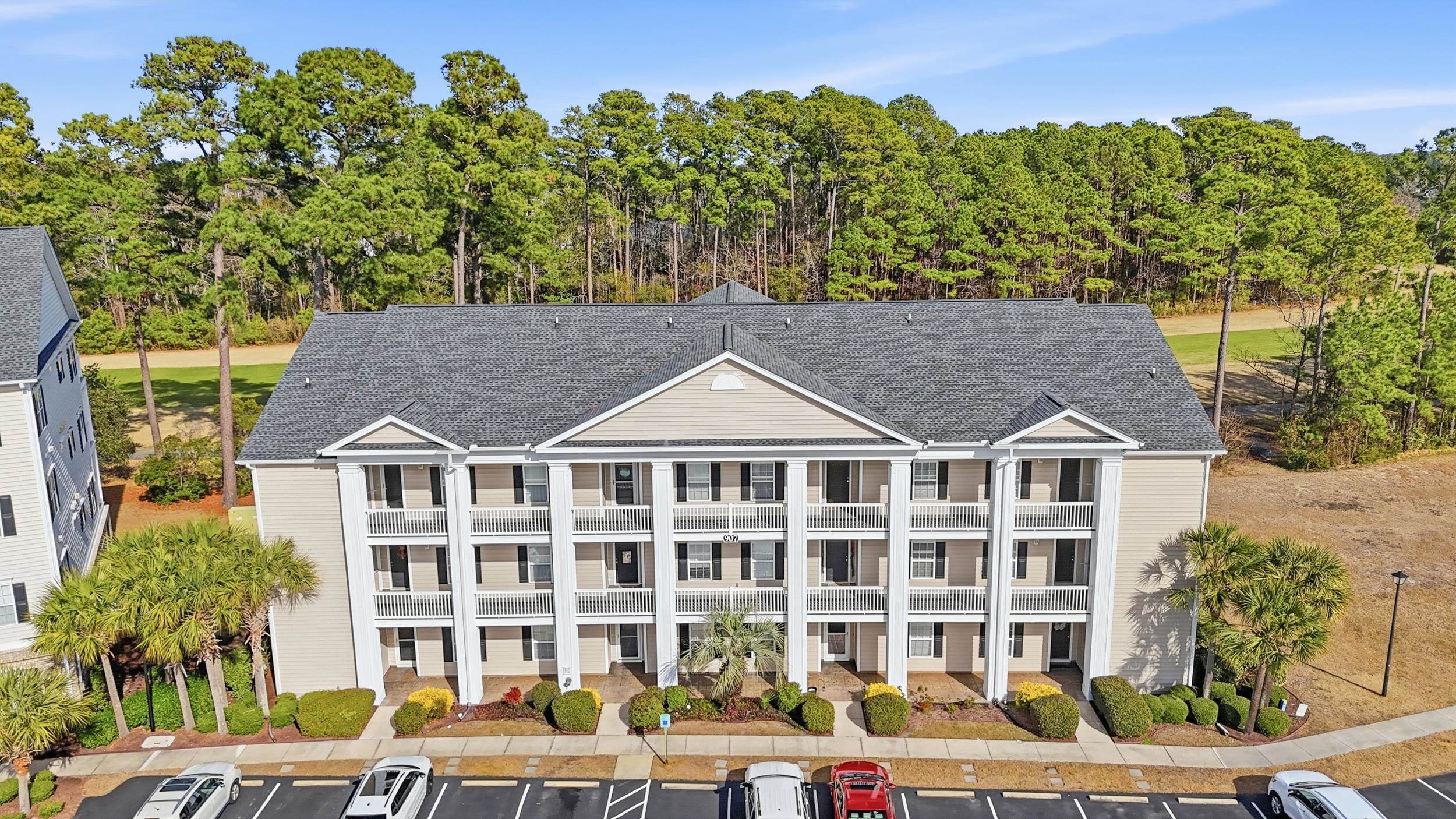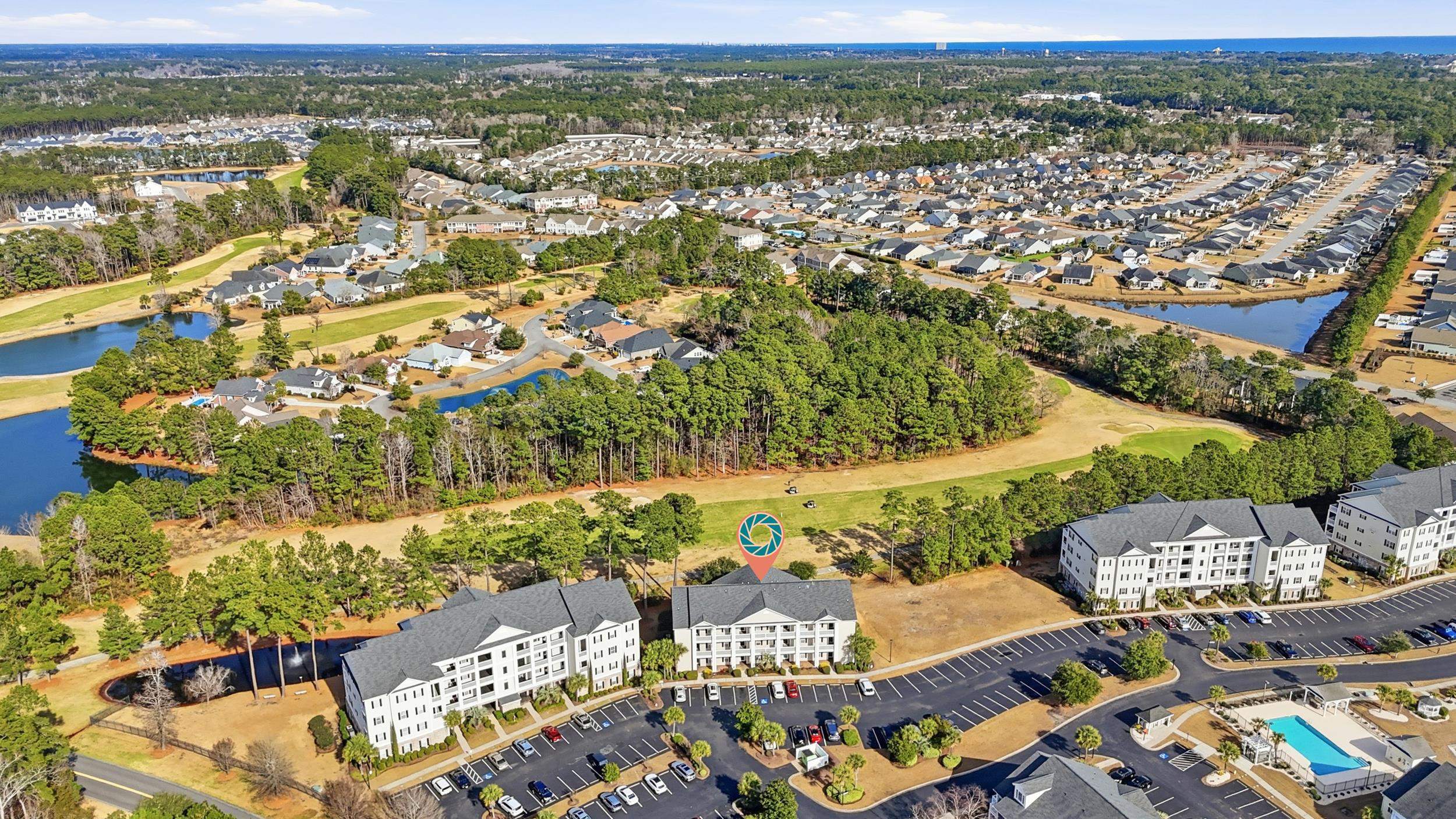 Set within a gated golf community, this 3-bedroom, 2-bath condo enjoys views of the 13th hole at The International Club. Thoughtfully designed with an open floor plan, the space features 9-foot ceilings, LVP flooring throughout, and abundant natural light. A breakfast bar anchors the kitchen and opens to the living area, while both the primary suite and living room extend to a private balcony. Whether used as a primary residence or a second home, the condo offers easy, low-maintenance living just minutes from shopping, dining, medical facilities, and approximately 15 minutes from the Atlantic Ocean