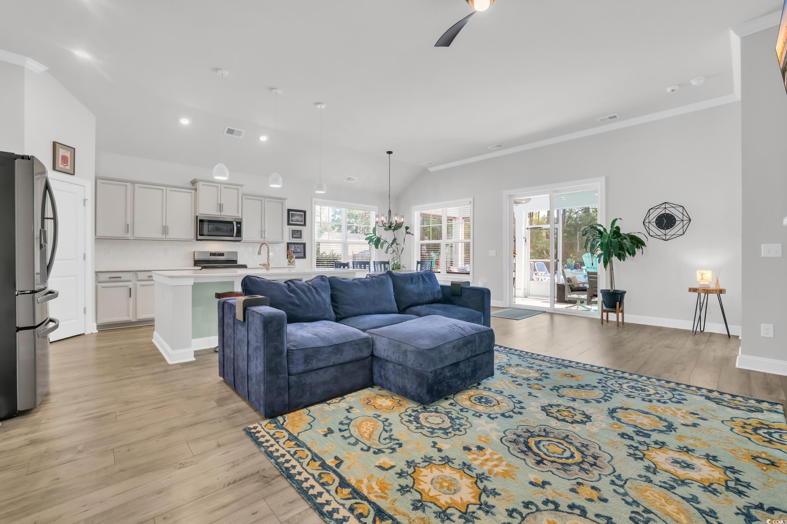 Welcome to this stunning 4-bedroom, 2-bath ranch-style home, perfectly blending elegance, comfort, and functionality. Located in a natural gas community with a prime location near key services, this open-concept home showcases 12-foot ceilings, abundant natural light, and thoughtful upgrades throughout. The heart of the home is the gourmet kitchen, featuring quartz countertops, a stylish tile backsplash, stainless steel appliances including a gas range, and a spacious island that seamlessly connects to the main living area. A cozy gas fireplace anchors the living room, while sliding glass doors extend the space outdoors to a large covered screened-in porch and your backyard oasis. The backyard features a heated and cooled 12x30 in-ground pool, an 8x8 spa, and a fenced-in yard, perfect for entertaining or relaxing year-round. The primary suite is a private retreat, offering a tray ceiling, two walk-in closets, and a spa-like en suite with a double vanity, elegant tile, and a zero-entry walk-in shower. Three additional bedrooms provide plenty of space for family, guests, or a home office. Additional features include concrete fiber siding, tons of storage, a smart home system, and a 2-car garage with overhead storage. This home combines modern design, energy efficiency, and resort-style amenities ready to welcome you home. All measurements and square footage are approximate and not guaranteed. Buyer is responsible for verification.