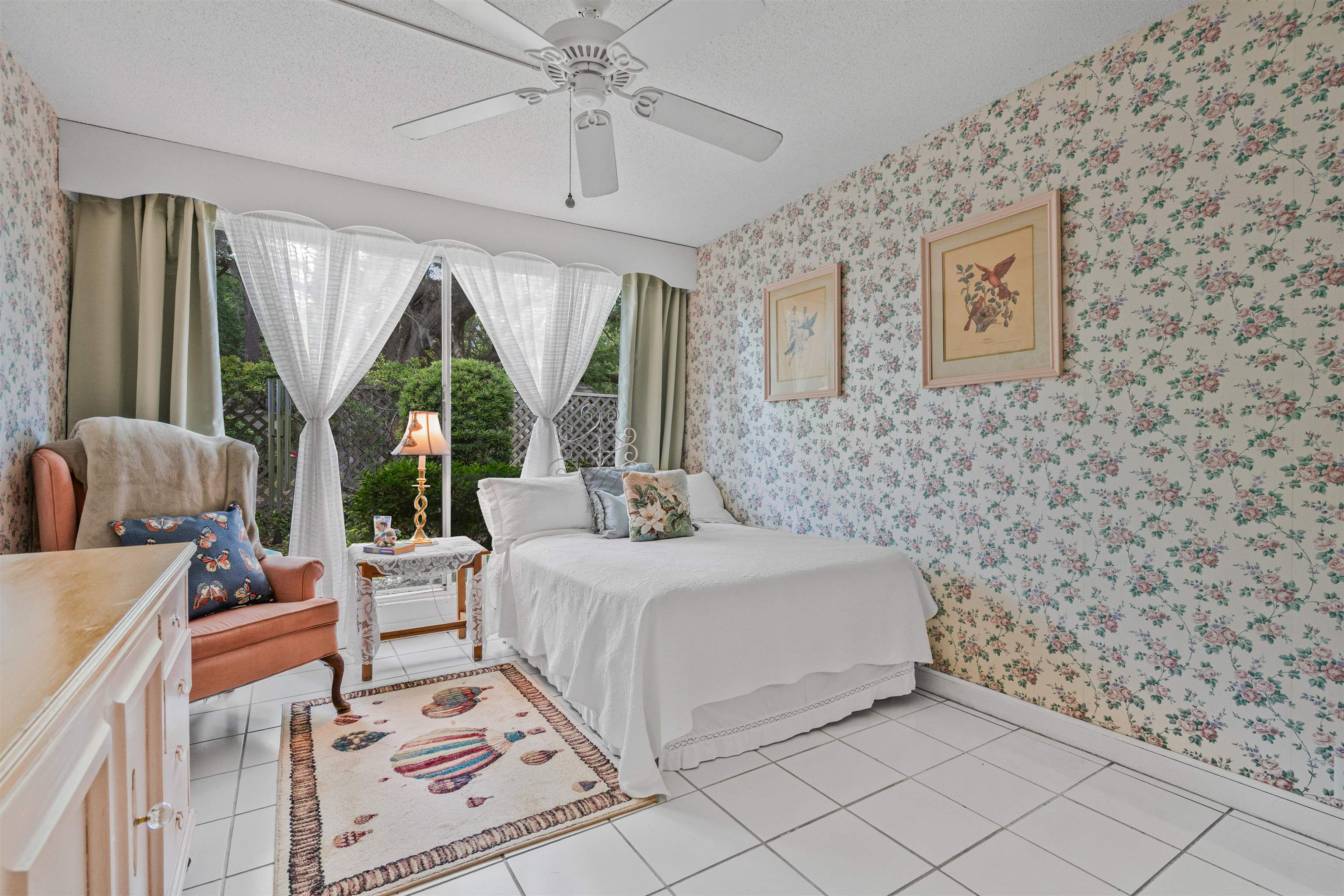 Beautifully maintained 2-bedroom, 1-bath condo located in the highly desirable Wedgefield Plantation Community. This move-in ready condo features tile flooring throughout, vaulted ceilings, and a bright, open layout that creates an inviting space. The spacious primary bedroom offers a walk-in closet with custom shelving, an additional closet, ceiling fan, and private access to the sunroom. Hunter Douglas remote-controlled blinds add both convenience and style. The second bedroom includes tile flooring, a ceiling fan, a closet, and sliding glass doors leading to the enclosed patio-perfect for guests or a home office. The full bathroom features a vanity, tub/shower combination, and a stackable washer and dryer for added convenience. The open living room boasts vaulted ceilings, tile floors, ceiling fan, and remote-controlled blinds, with sliding glass doors that lead into a light-filled sunroom. The sunroom in enclosed with vinyl windows and a glass door, opening to a private brick patio-ideal for relaxing or entertaining. A formal dining area with sliding glass doors provides access to an additional side patio, with the foyer includes custom white cabinet storage for extra functionality. The kitchen is well-equipped with white cabinetry, tile flooring, access lighting, dishwasher, smooth-top range, magic chef microwave, refrigerator, and a garbage disposal. The roof was installed approximately 5 years ago, and the HVAC system was installed in 2014. Assigned parking and a private storage shed convey with the property. Perfect as a primary residence or a vacation getaway-this charming condo offers low-maintenance living in a sought-after community. Don't miss your chance to own this well-maintained condo!