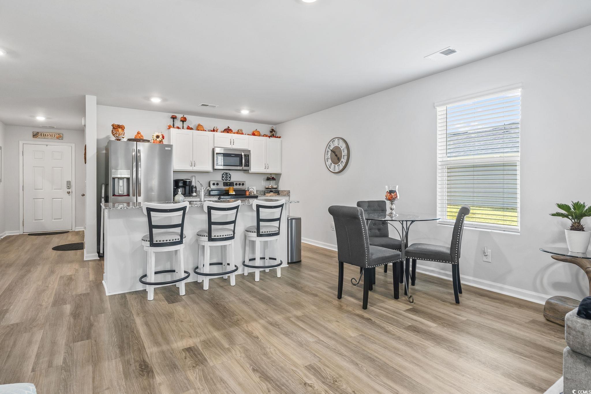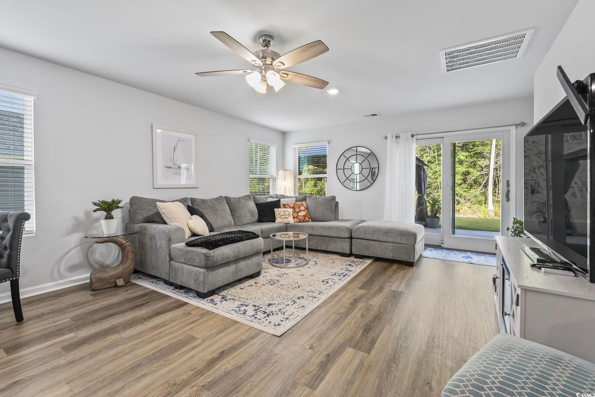 Welcome home to this comfy & adorable open-concept floor plan home in Shaftesbury Meadows. This home has 2 bedrooms and 2 bathrooms with a BONUS room for a den or office with large doors that overlooks the pond even when in the kitchen. This home has LVP flooring in the main living area, granite countertops in the kitchen, pantry, stainless steel appliances, walk-in closet, double slider glass backdoor and an irrigation system. This house has had several upgrades-BONUS extended patio outback that is width of the entire house, BONUS extended driveway parking pad, as well as ceiling fans in bedrooms and living room. This end lot sits next to a pond and backs to the woods, providing plenty of peace and privacy. Golf lovers get a lifetime of free greens at the Shaftesbury Green Golf course. This prime location is just minutes to historic downtown Conway a couple minutes to Hwy 22, and just a short drive to all the recreation, dining, shopping, and entertainment the Grand Strand has to offer. Don't miss out on the opportunity! This house is a MUST SEE!