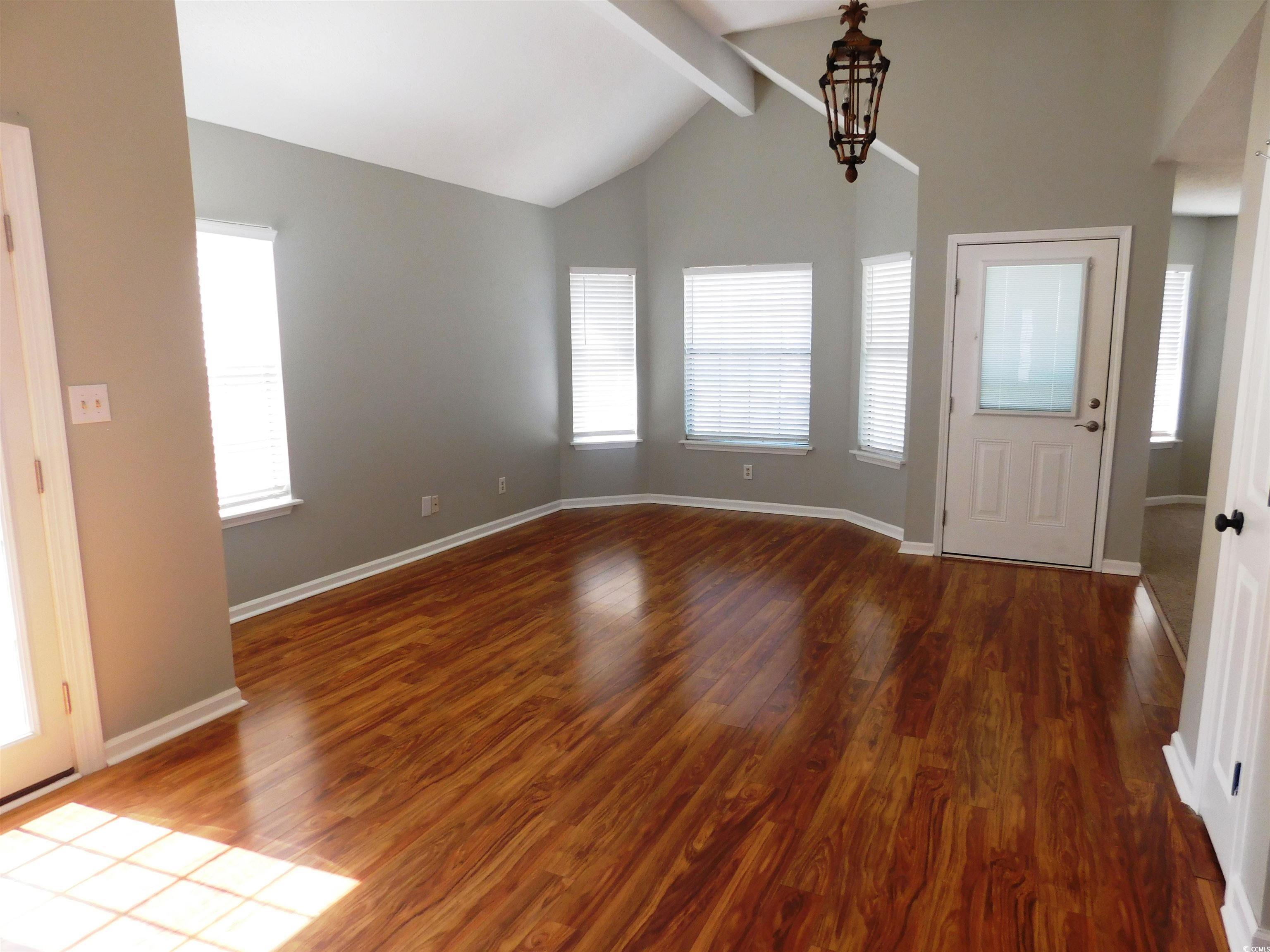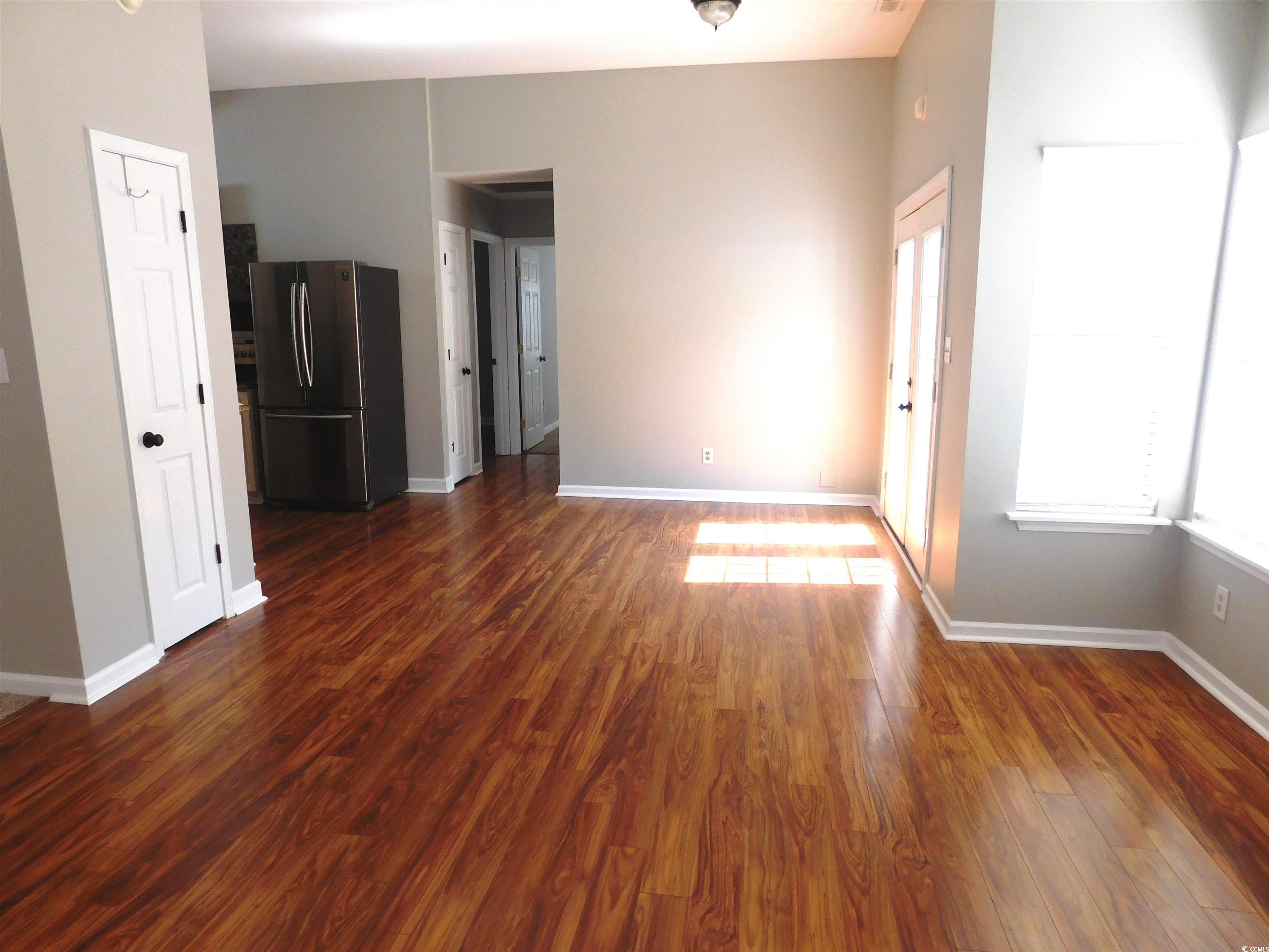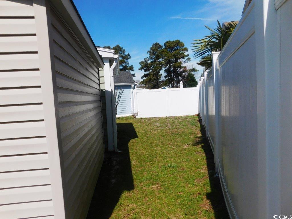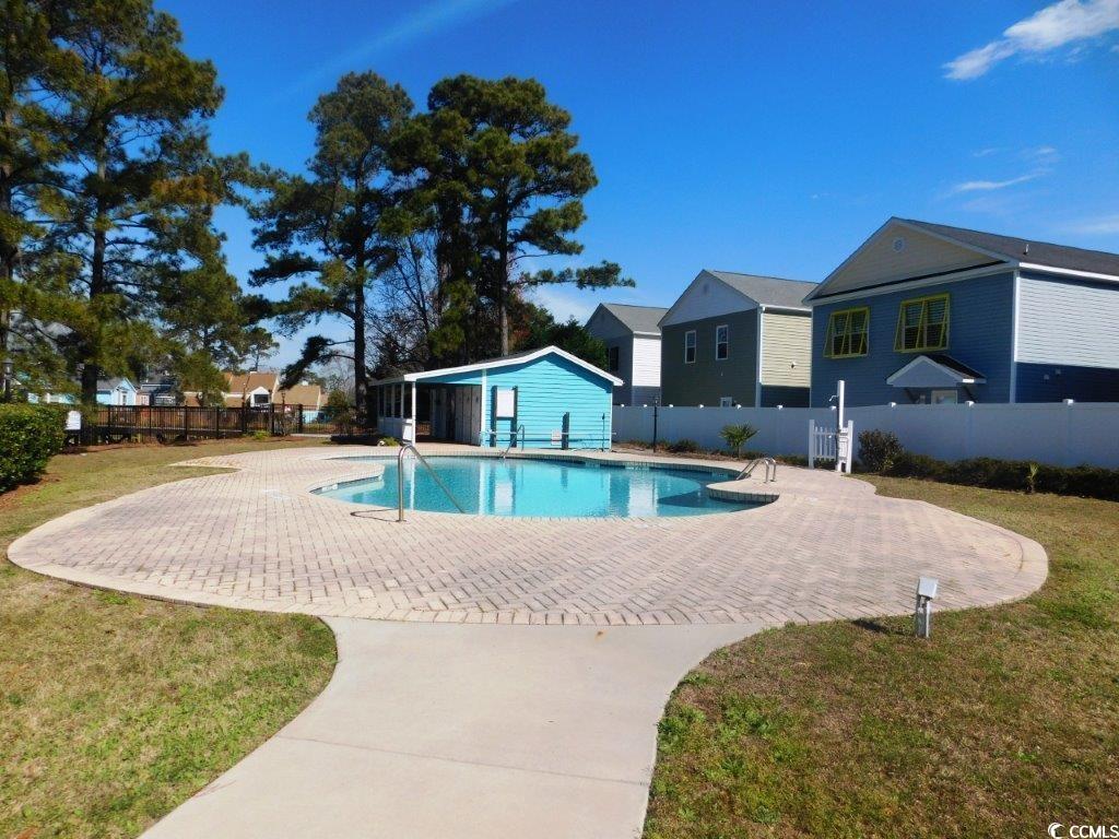 Adorable 2 bedroom/1 bath home in desirable Lake Homes @ Belle Park. Drive up to this precious home with white picket fence, literally steps from the community pool and feel that you have arrived at your beach cottage. Home truly has the coastal feel with awesome gathering spaces boasting a family room, a living room, and a Carolina Room to provide you and your guests areas to enjoy and be together. Walk in the front door and enjoy all the natural light and open, airy, space of this home. Family room is very inviting with a bay window area and tons of natural light. Living room is quite large and is directly across from family room and features another bay window area boasting plenty of space for entertaining and enjoying family/friends. Kitchen has lovely granite counter tops and beautiful coordinating back splash with custom metal pot rack, stainless steel appliances to include French door refrigerator/freezer, and dishwasher. Kitchen features a pantry and white cabinets that accent the appliances, granite counter tops and backsplash. Dining area is right off the family room and kitchen for perfect placement and has French doors leading to your own fenced- in patio for privacy and outside living. Master bedroom has 2 large, seated windows and French door leading to a tiled flex room with windows and sliding door boasting a terrific bright light welcoming room perfect for your Carolina room, den, office/study. The master bedroom has a walk-in closet, and second bedroom is full of natural light. The bathroom is conveniently located to both bedrooms and easily accessible for guests, plus has a large walk-in shower with a brand-new tiled floor. If that’s not enough there’s a utility closet complete with a washer/dryer and shelving for your laundry needs/supplies. The HVAC, hot water heater and washer/dryer are 2 years young (2023). There’s also a great Storage Building outside for all your beach toys & stuff. Home is in a great community in the heart of North Myrtle Beach and all NMB has to offer- ocean, shopping, Carolina shagging, and restaurants. You can even golf cart to the ocean by accessing stop light at 6th Ave S. This beach bungalow is perfect for a primary, secondary, or long-term investment. See it you’ll want to call it yours!