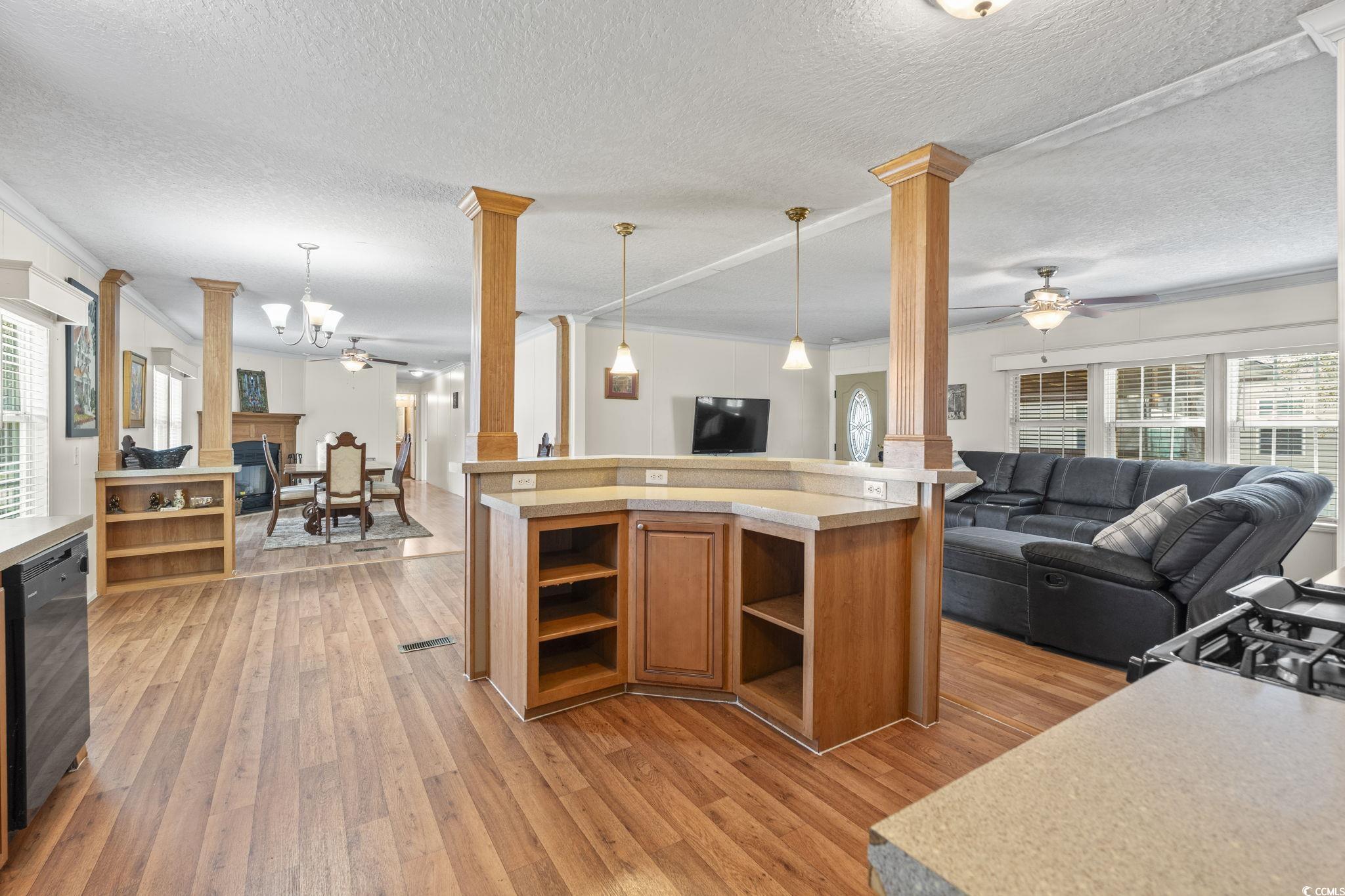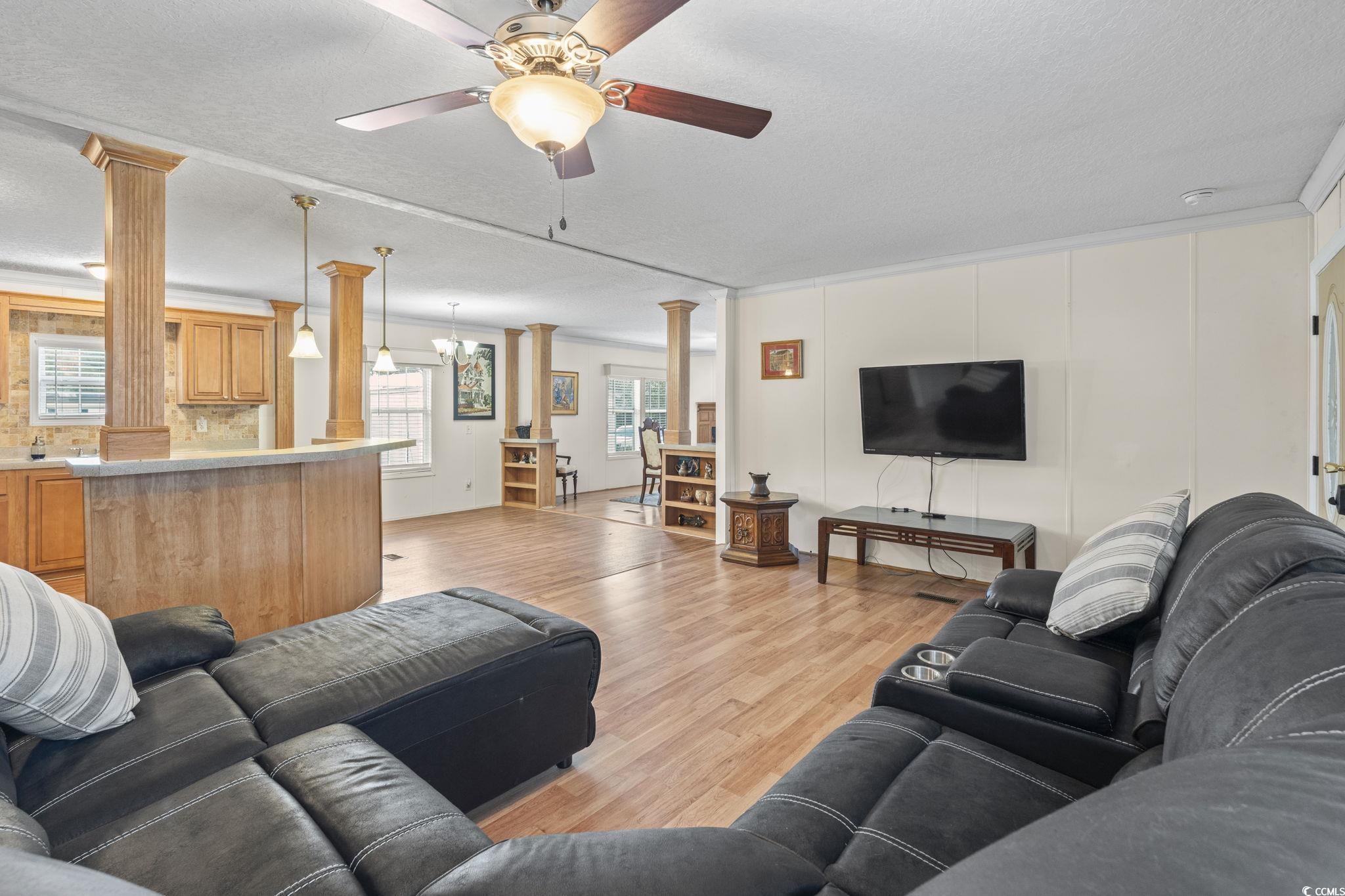 Welcome to 911 Old Magnolia Drive at Carolina Tides (formerly Conway Plantation)! This spacious 4-bedroom, 2-bath home is located in a well-kept manufactured home park with exciting new amenities on the way! From the welcoming screened-in front porch to the open living spaces inside, this home is designed for comfort and entertaining. The formal living area flows into an open kitchen with a center island/bar, and a dining area with an LP gas fireplace. Off the kitchen, a breakfast nook offers the perfect spot for casual meals. The impressive primary bedroom, measuring 18' x 12.8', offers plenty of space for relaxation and privacy. It features an ensuite bath with double sinks, a custom-tiled walk-in shower, and a large walk-in closet. On the opposite side of the home, three additional bedrooms share a spacious second bathroom. The third bedroom, previously a bonus room, has its own side entrance—ideal for guests, a home office, or studio. Carolina Tides offers on-site management, a community pool, and upcoming amenities including a fitness center, expanded pool deck with grilling area, multi-use court, dog park, firepit, game patio, and more! Conveniently located just minutes from CMC Medical Center, Coastal Carolina University, and a short drive to historic downtown Conway—plus, you're only 20 minutes from the beaches and attractions of the Grand Strand! The lot lease includes trash pickup and amenities. Come see all that this community has to offer!