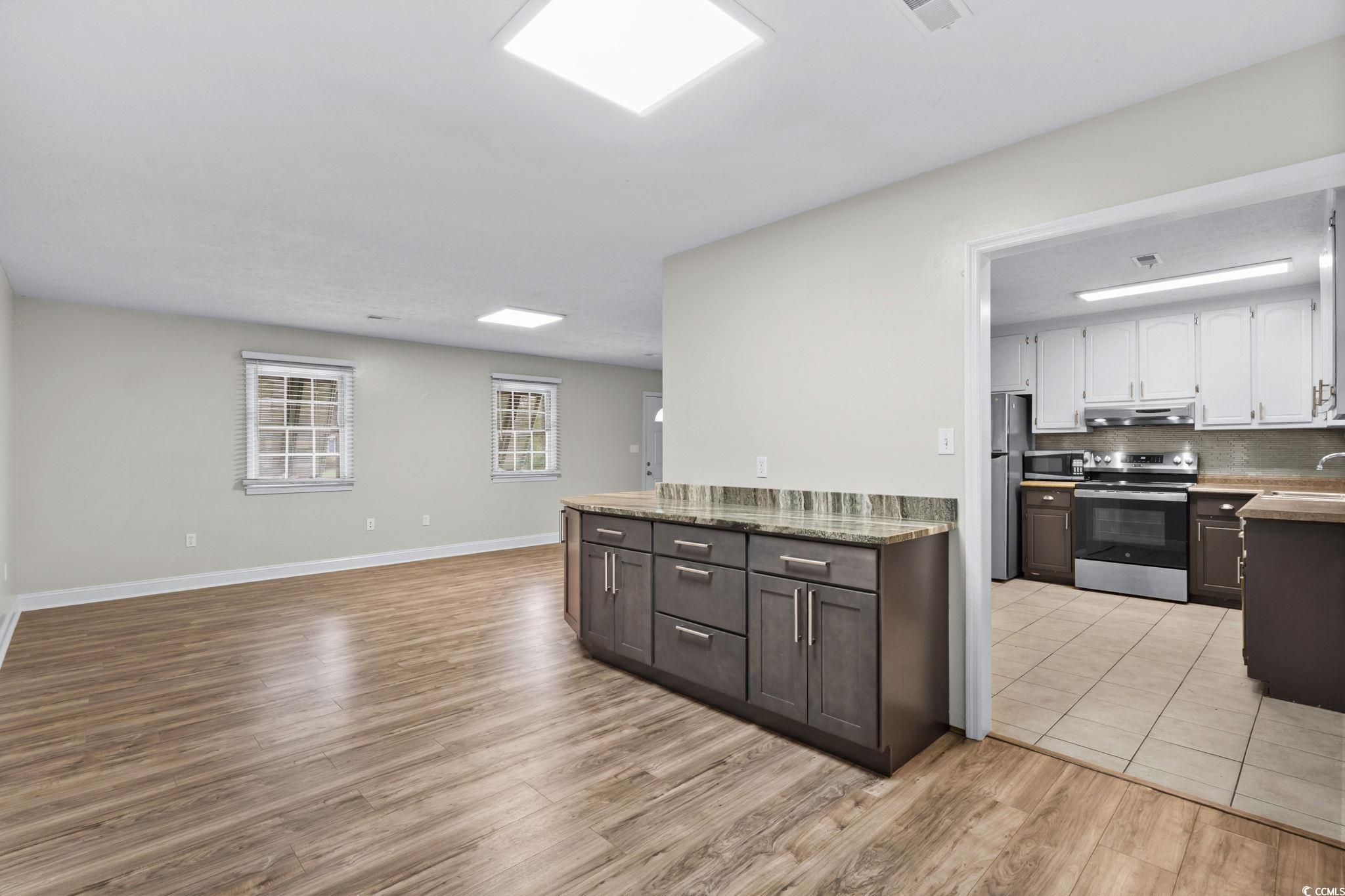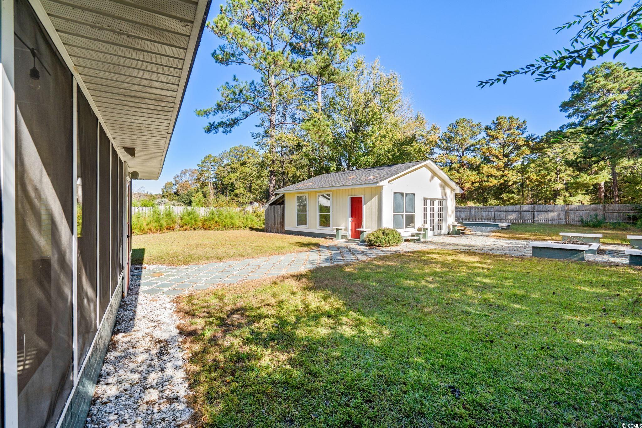 Park your boat & trailer at home! Here’s the unicorn you’ve been searching for—this 3 BR / 2BA Ranch on a .43-arce cul-de-sac lot in Huntersfield of Forestbrook is a rare Myrtle Beach find. Private fully fenced backyard for relaxing or entertaining. Also featuring a Detached Building with electricity, new carpeting, with 2 rooms, a garage area, and enclosed storage is perfect for a workshop, office, or hobby space. Outside is your spacious entertainment compound offering a hot tub, fire pit area with ample seating for family and friends. Your fur babies have space to run ! Inside, the home boasts a new roof ( 11/2025) , stainless steel appliances, fresh paint, custom cabinetry in the dining area, and a 2018 water heater. Huntersfield residents enjoy access to the Forestbrook community pool, and is conveniently close to shopping, dining, and Myrtle Beach’s beautiful beaches. Priced to sell and offered "As-Is" - don’t miss this one-of-a-kind property with lifestyle, versatility, and space your vehicles, RV or boat. Easy to see- make your appt fast.