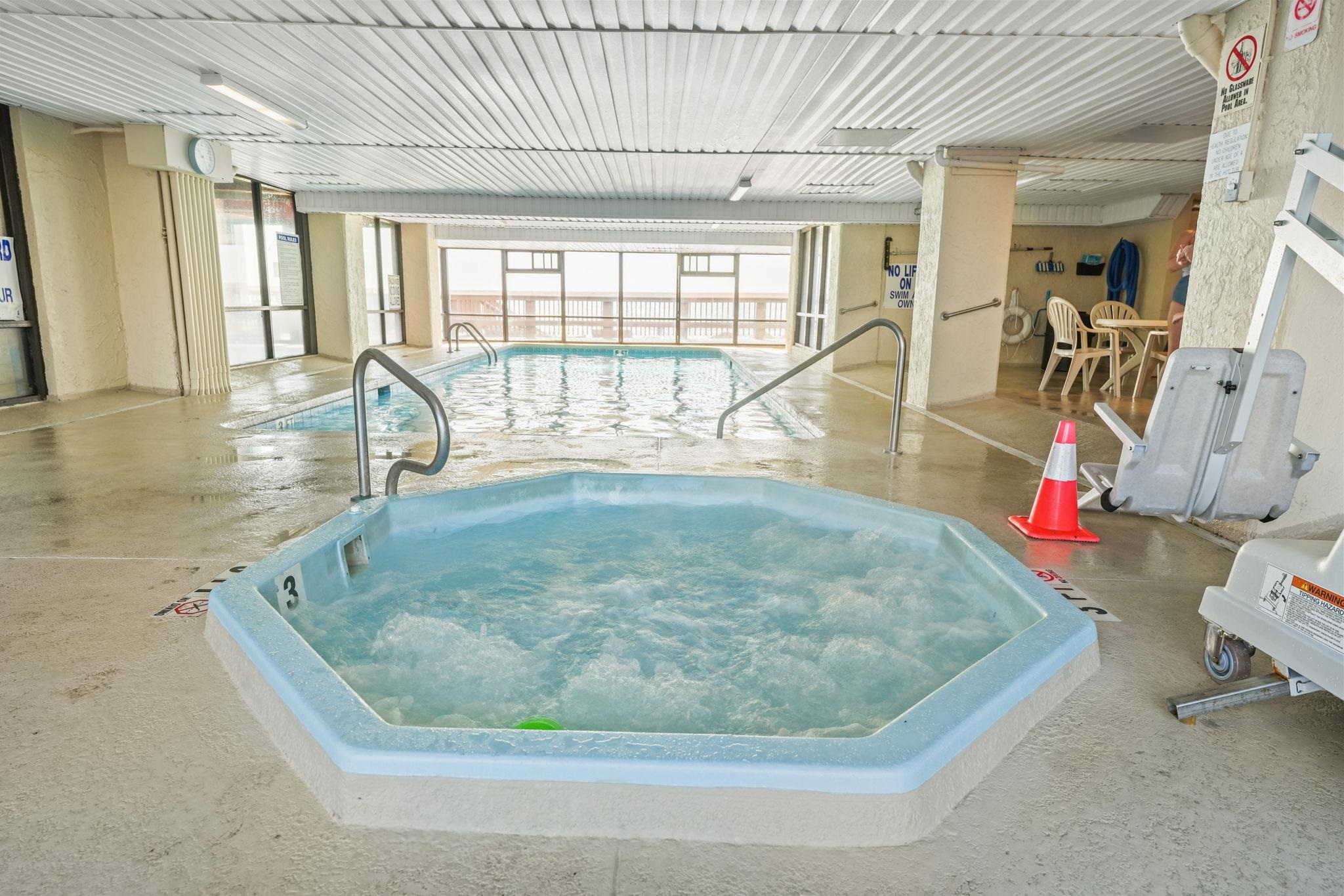 Welcome to Atalaya Towers! Enjoy waking up to Amazing oceanfront breezes every morning in this stunning 3 Bedroom, 2 bath unit updated with soothing coastal colors throughout. This well-maintained 9h floor unit comes furnished. Beautiful gray granite counters adorn the well stocked kitchen. The kitchen sink looks out to the ocean with an added matching gray granite bar off to the side lending itself to additional serving space with storage cabinets below. Parking lot is outside the building, as well as the lot directly across the street. This unit's kitchen features Stainless steel appliances. A stacked washer and dryer in the front foyer. The Primary bedroom is a tranquil retreat with its generous size, and sliding glass doors opening to the balcony and a private en-suite bathroom. The Primary bedroom has 2 separate closets, one of which is an extra-large walk-in closet with a lock and plenty of storage space. The living room boasts wonderful natural light that flows throughout and creates a welcoming ambiance for entertaining. The dining area offers options- a table with seating for 6 or stools under the kitchen counter. 2 Guest rooms down the hall share a hall bathroom. For flooring you'll find LVP and carpet. Atalaya Towers offers an array of amenities including both an indoor pool and hot tub, and outdoor pool, sun decks, and eating areas both inside and out. Just blocks north of the Garden City Pier, Atalaya Towers offers an array of dining options, shopping, and golf courses. It's close to the airport, Hospital, medical center, post office, Brookgreen Gardens, endless entertainment and activities. Perfect for a primary home, vacation home, or luxury short term rental property.