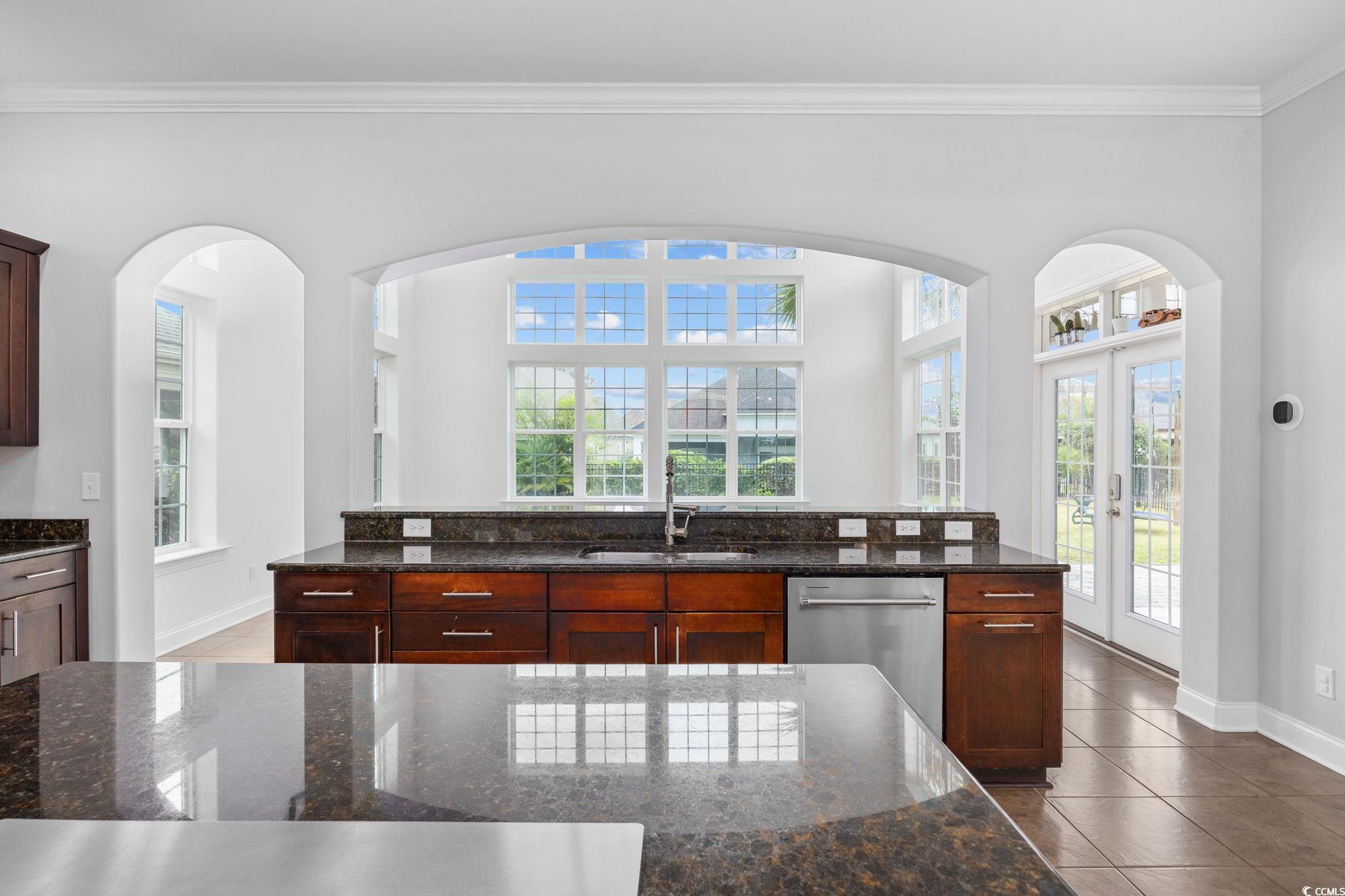 Discover luxury living at 914 Bluffview Dr. in The Bluffs on the Waterway, one of Myrtle Beach’s premier gated communities. This freshly painted 4-bedroom, 3-bath home offers an open and versatile layout designed for comfort, entertaining, and family living. Inside you’ll find soaring ceilings, a wall of windows flooding the living room with natural light, and a formal dining room perfect for gatherings. The gourmet kitchen is a chef’s dream with a massive island featuring a built-in griddle, breakfast bar, custom cabinetry, granite countertops, and high-end appliances. A first-floor bedroom and full bath create a perfect guest suite or in-law option. Upstairs, the owner’s retreat boasts tray ceilings, a private balcony, and a spa-inspired bathroom with dual vanities, soaking tub, and walk-in shower. This home windows are triple-pane, offering superior insulation, energy efficiency, noise reduction, and year-round comfort — a premium upgrade that enhances both value and livability. The heated and cooled garage includes a workshop with cabinets and sink — ideal for projects or extra storage. Outdoor living shines with a private paved courtyard that can be used as an additional outdoor sitting or dining area, or as a perfect separate playground for kids; a covered patio with fireplace; and a spacious backyard with room to add a pool. Enjoy The Bluffs on the Waterway lifestyle, with amenities including two clubhouses, pools, tennis and basketball courts, playground, boat ramp, and secured boat storage. Conveniently located in Carolina Forest near top-rated schools, Hulk Bike Park, and the Publix shopping center with dining, plus just minutes from the beach, this property combines elegance, function, and coastal living. Schedule your private tour of this exceptional Myrtle Beach home today!