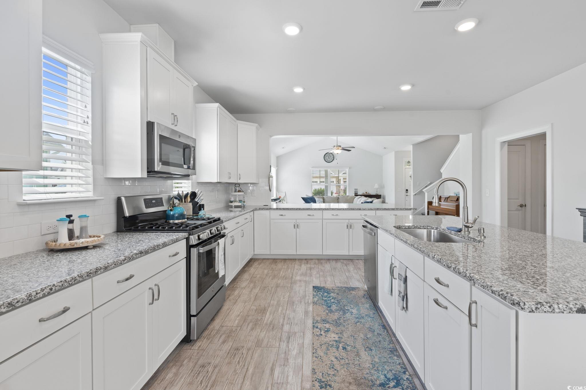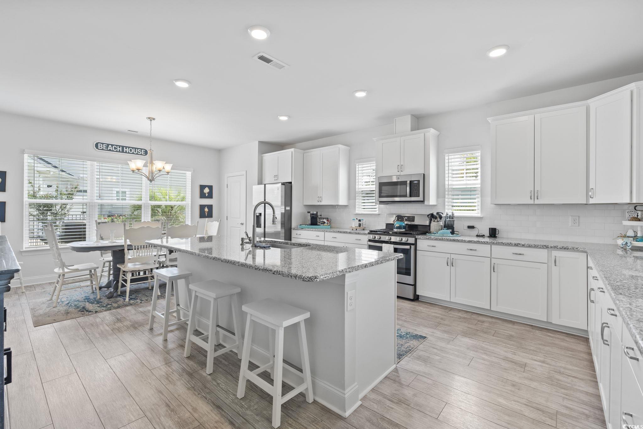 **ask about buyer incentives!** Welcome to this truly stunning beach home that showcases classic low country style paired with a modern, coastal interior design! This beautiful 4-bedroom, 2.5-bathroom home was built in 2020 full of charm and new-age touches. This spacious two-story home is located in a very desirable natural gas community east of 17 business in North Myrtle Beach. Step inside to discover an open and inviting layout, a spacious living room with plenty of natural light coming in, even with the blinds closing. Venture a little further back, you'll come across a true chef's kitchen, equipped with granite countertops, a tile backsplash, stainless steel appliances, a HUGE work island and under-cabinet lighting—perfect for both everyday living and entertaining. The first-floor master suite offers a peaceful retreat with tray ceilings, a large walk-in closet and a luxurious ensuite bathroom featuring a double vanity and a walk-in tile shower. The laundry room is downstairs as well, tucked away but easily accessible. Upstairs, you'll find the 3 guest bedrooms and full guest bathroom. The upstairs has its own air conditioning unit to keep it as cool as your guests would like when they visit. Enjoy outdoor living year-round with a screened-in porch and a fenced-in backyard that includes an exterior shed for added storage. Aside from the house itself, what’s the most important thing about real estate? Location Location Location! Robbers Roost is a thriving community that is a 5 minute golf cart ride to Cherry Grove Beaches, and walkable to many restaurants. Take your golf cart and ride to the new Publix or grab an IPA at Hickory Tavern. You can be there in literally two minutes by golf cart, along with other incredible restaurants and shopping. Your car’s odometer will barely move, because you won’t need it! Grab some food and hang out at the sparkling community pool and meet some of the friendliest neighbors the beach has to offer! Don’t miss the opportunity to own this move-in-ready gem that combines classic style with thoughtful upgrades in a wonderful community setting! All information is deemed approximate, not guaranteed. Buyer to verify any and all pertinent information.