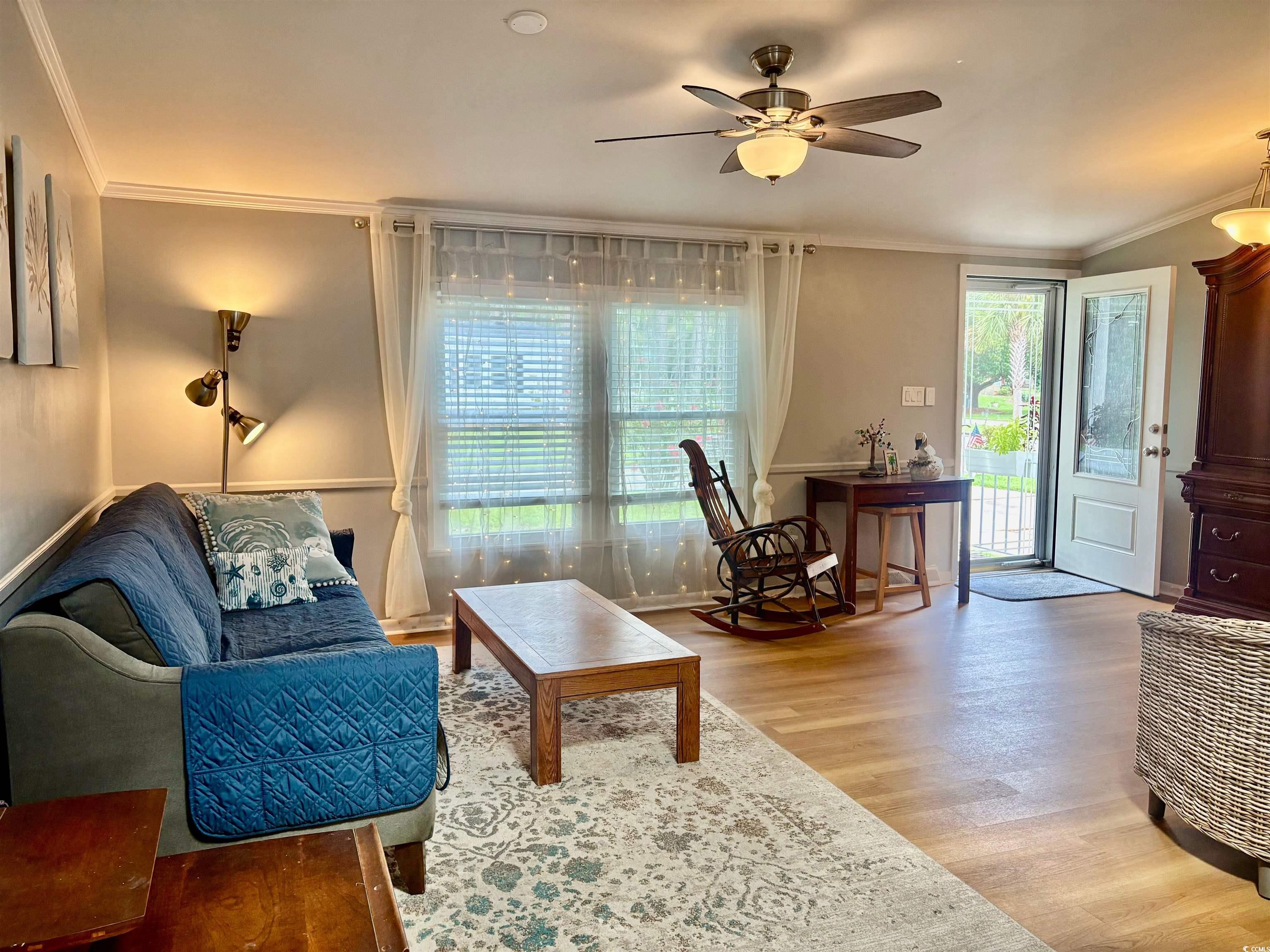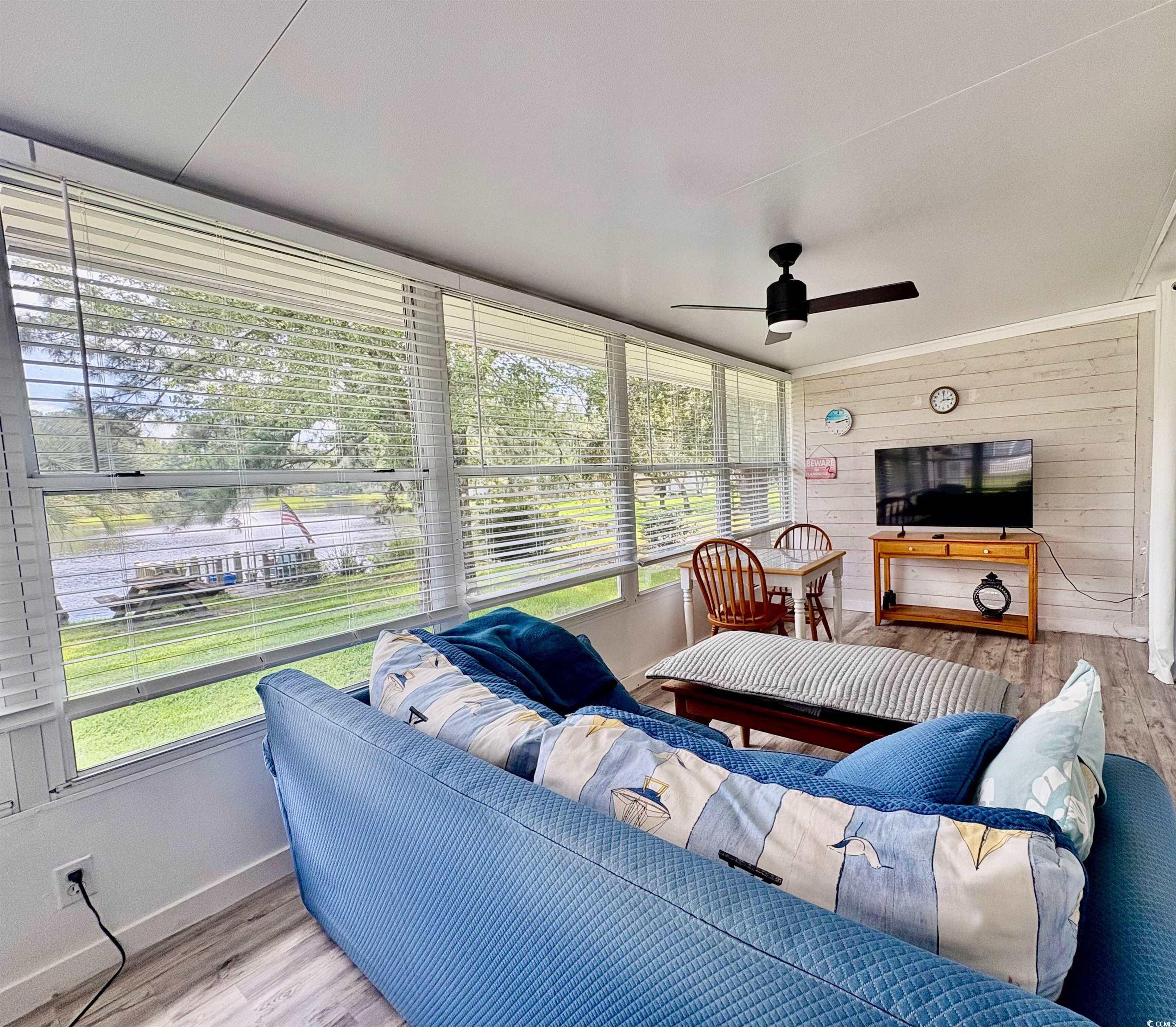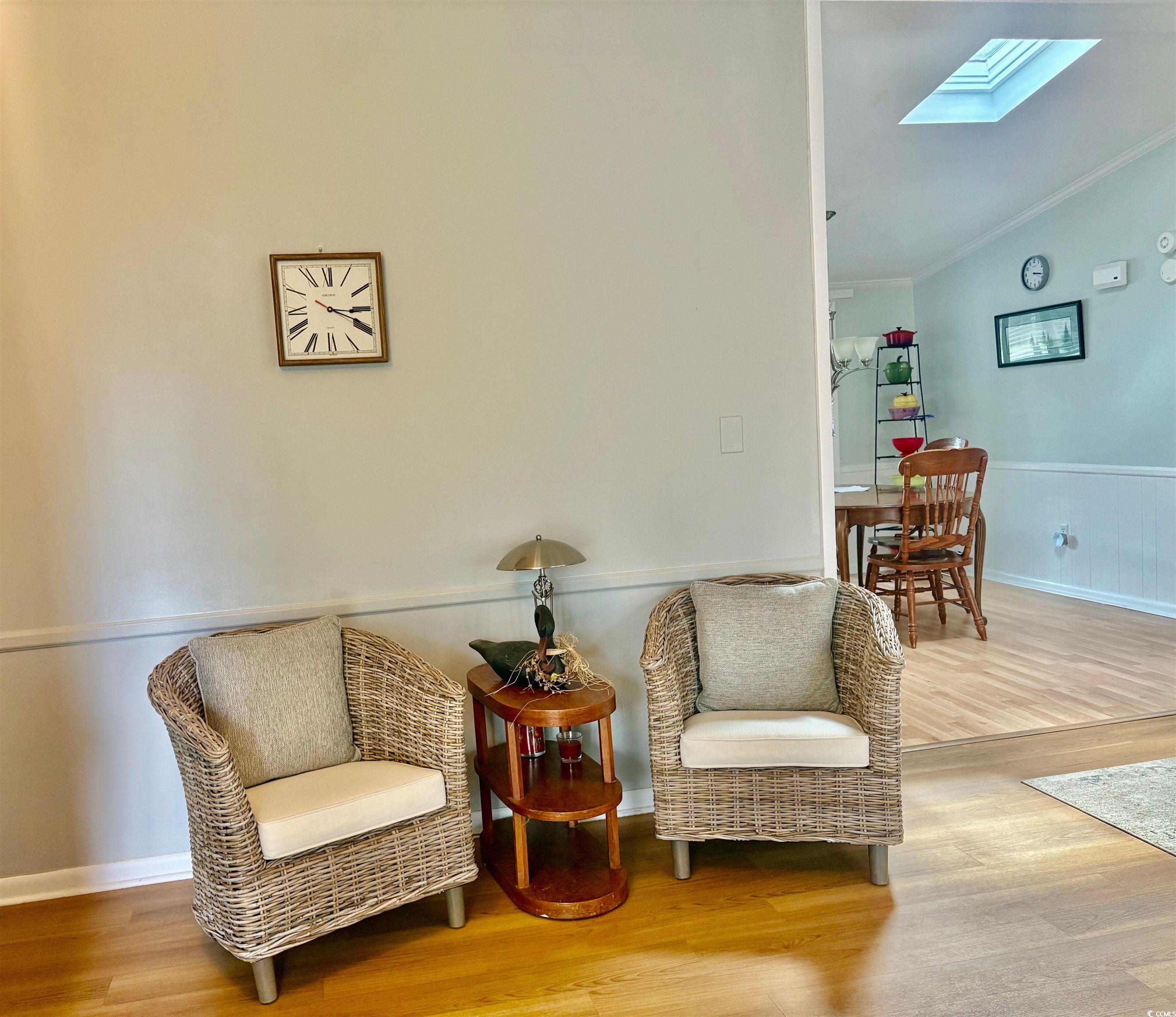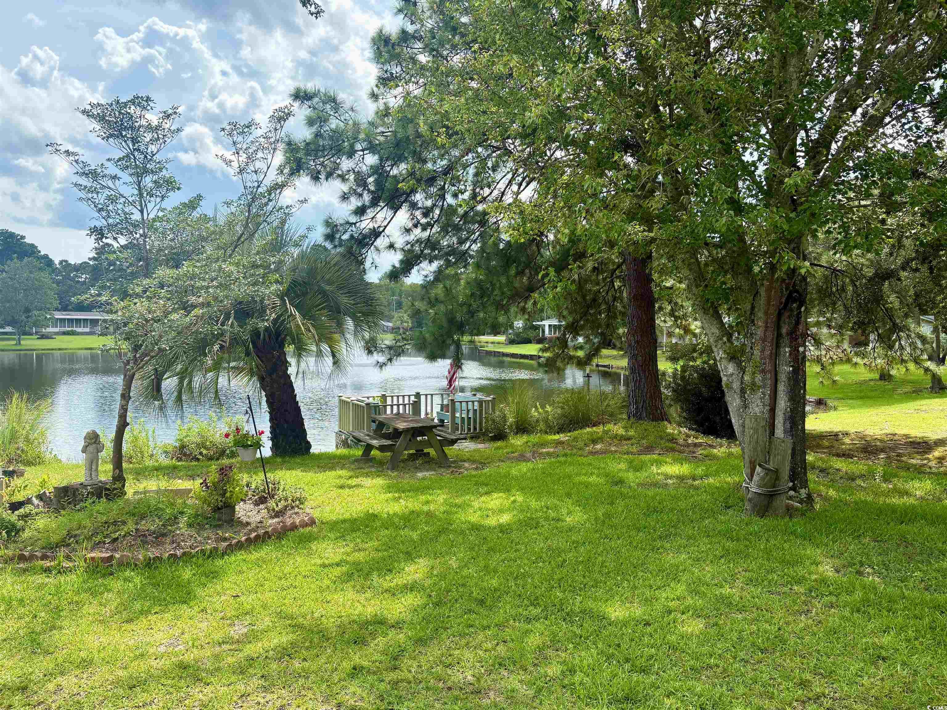 Welcome to Ocean Pines, a sought-after 55+ coastal community in Garden City, SC. Just a short golf cart ride to the Garden City Pier and beach, this hidden gem offers mature landscaping, scenic ponds, tranquil waterways, a fitness center, two outdoor pools, and two clubhouses. This beautiful home features 3 bedrooms and 2 bathrooms, with a desirable split floor plan, fresh LVP flooring (2024), skylights that fill the kitchen, dining room, and primary bath with natural light, and smooth ceilings with drywall throughout. Enjoy charming details like beadboard in both bathrooms and chair rail accents in the living and dining areas. Relax in the spacious Carolina Room or on the covered porch while taking in stunning pond views with a fountain and your own private dock with seating. Additional highlights include a brand-new roof (2025), large driveway with carport, and an outdoor shed perfect for storing bikes, beach gear, and garden tools. Don’t miss this rare chance to embrace the coastal lifestyle—now is the perfect time to make your move to the beach!
