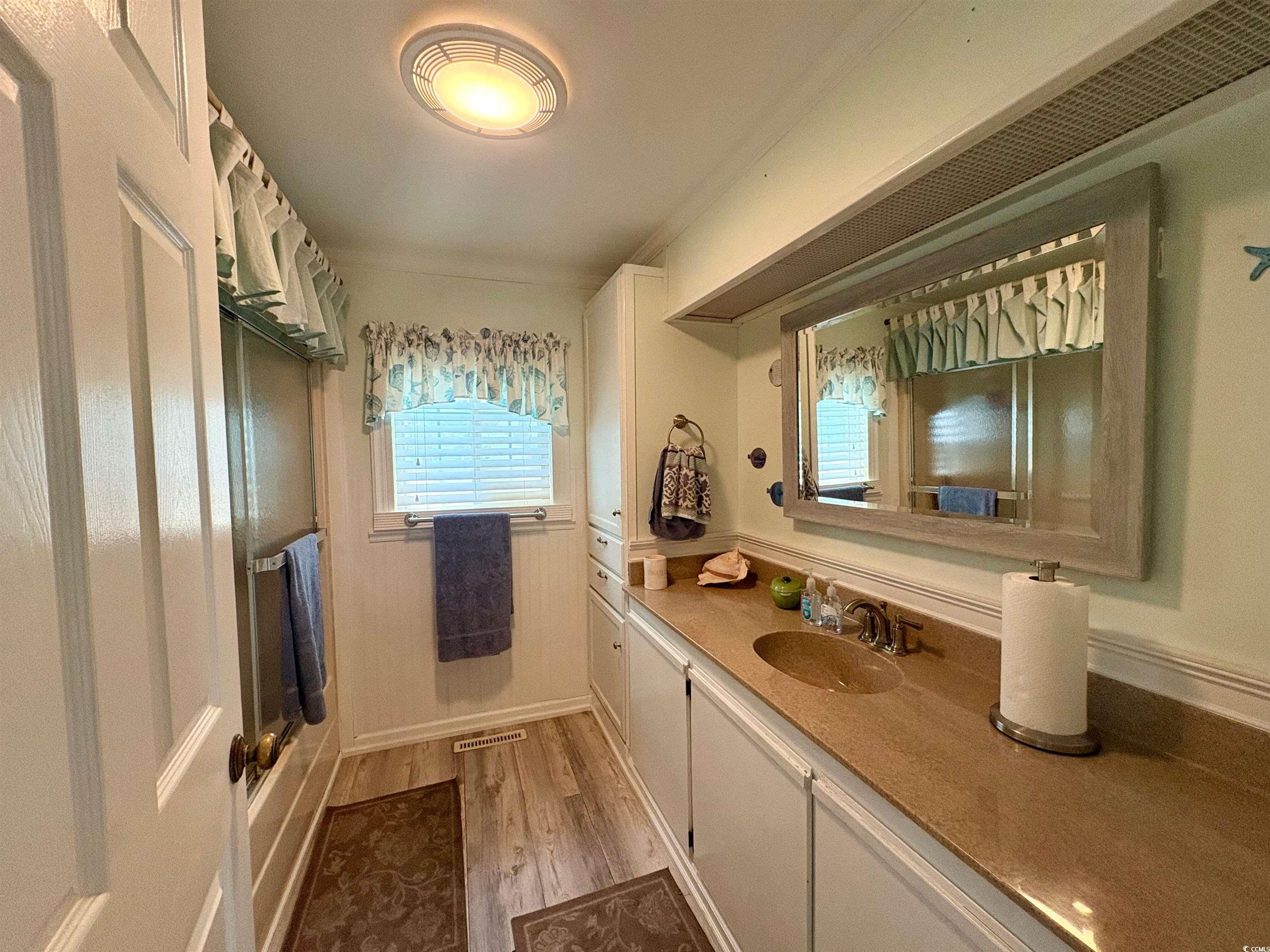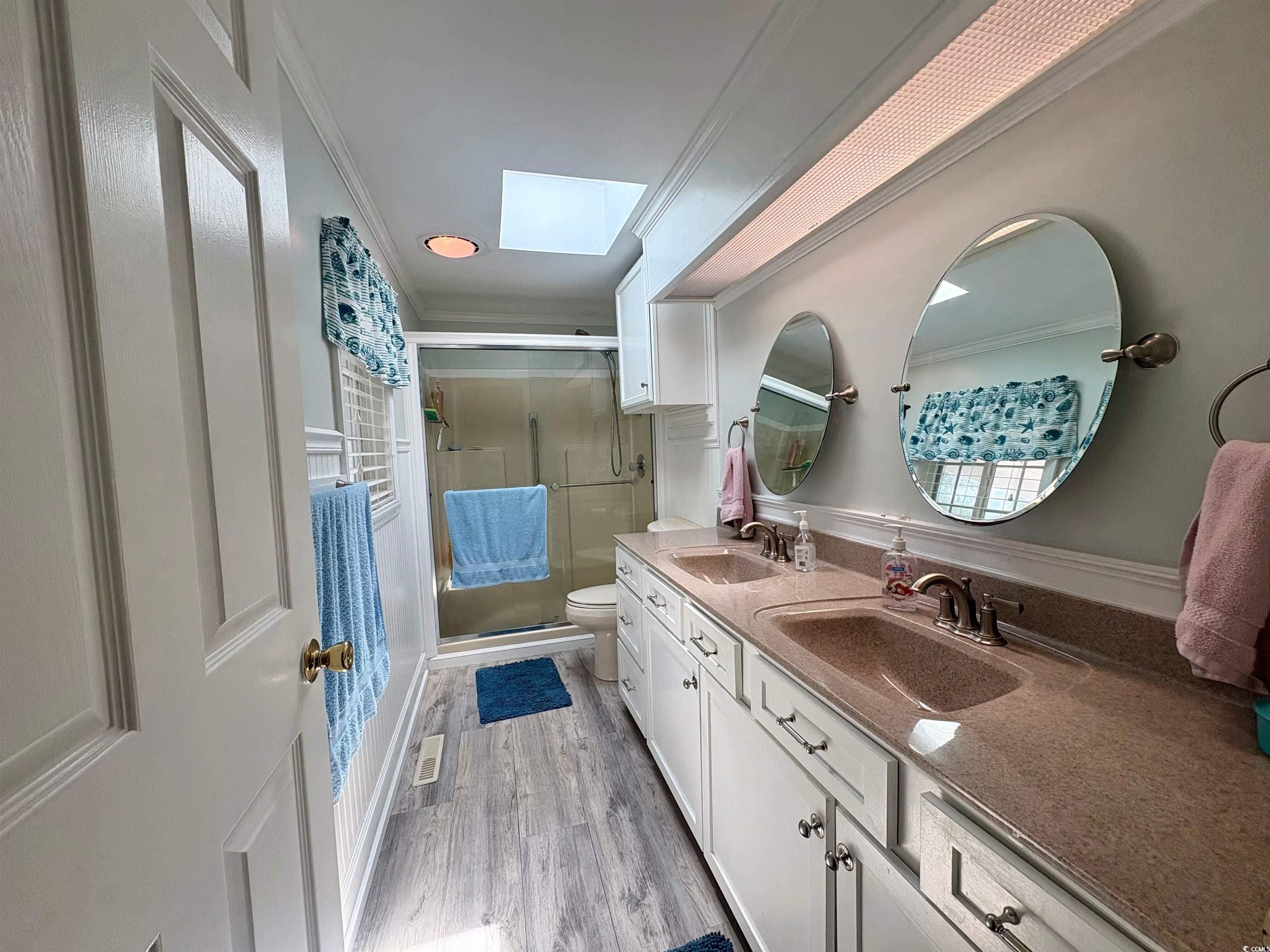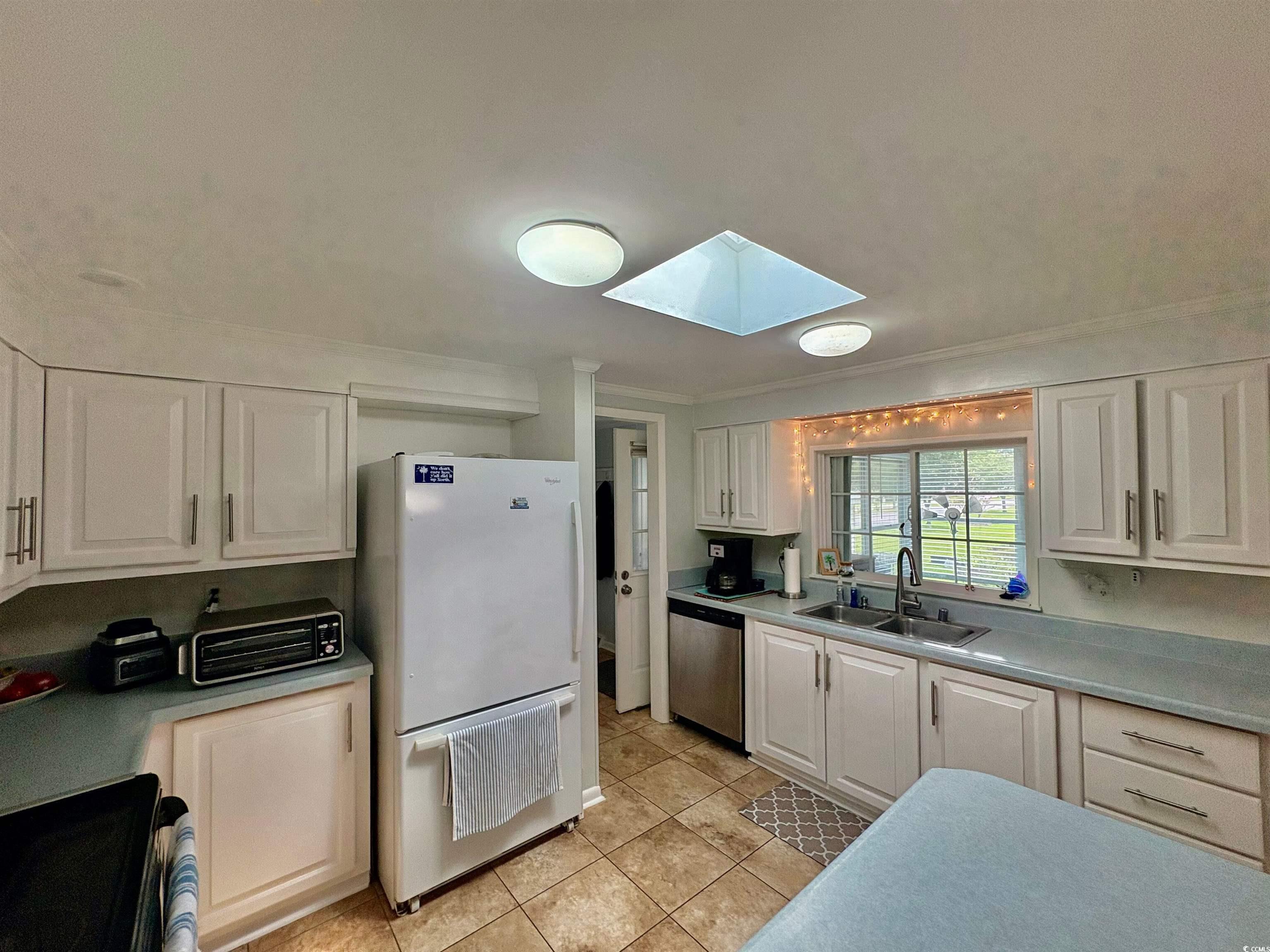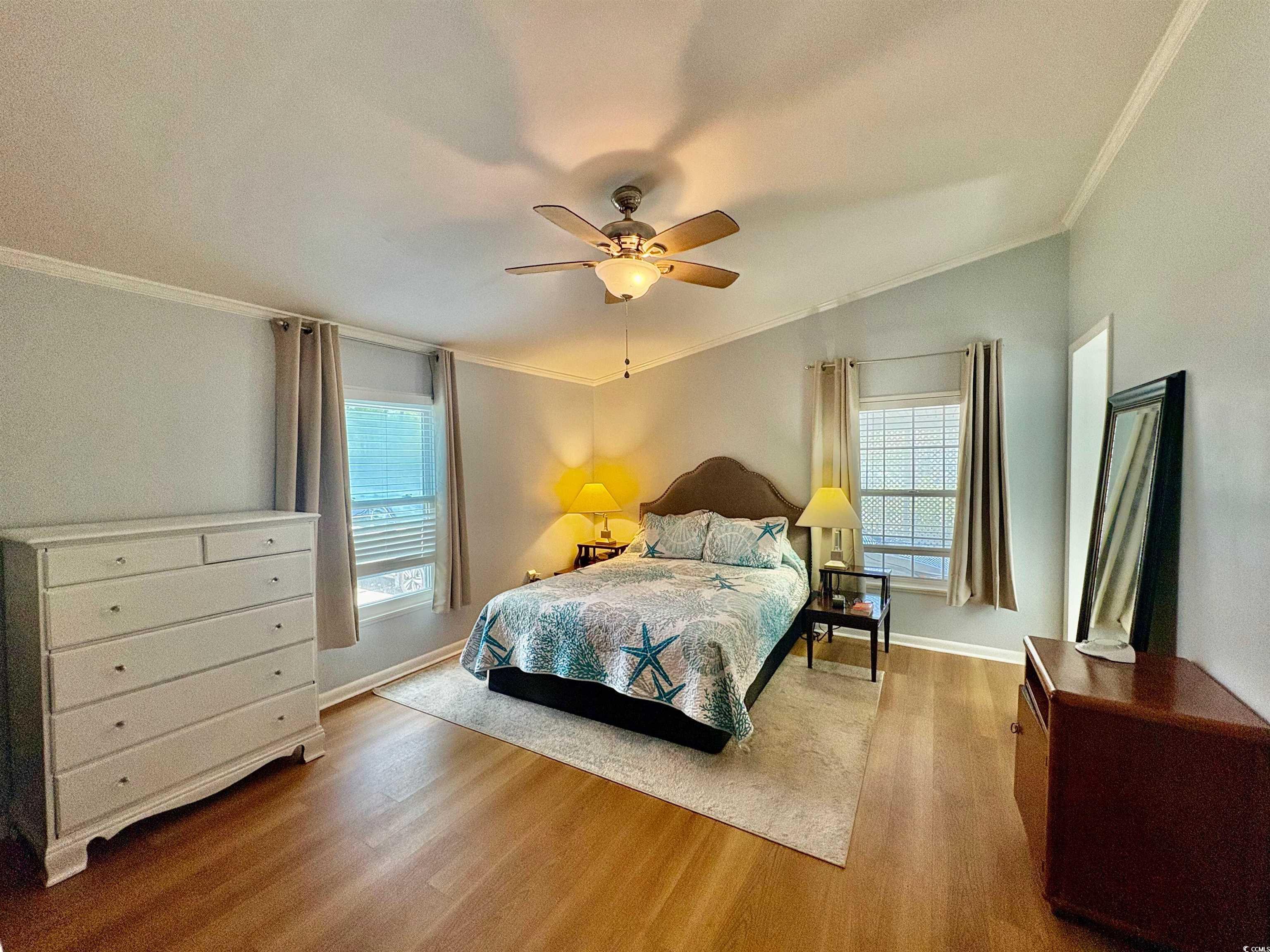 Welcome to Ocean Pines, a sought-after 55+ coastal community in Garden City, SC. Just a short golf cart ride to the Garden City Pier and beach, this hidden gem offers mature landscaping, scenic ponds, tranquil waterways, a fitness center, two outdoor pools, and two clubhouses. This beautiful home features 3 bedrooms and 2 bathrooms, with a desirable split floor plan, fresh LVP flooring (2024), skylights that fill the kitchen, dining room, and primary bath with natural light, and smooth ceilings with drywall throughout. Enjoy charming details like beadboard in both bathrooms and chair rail accents in the living and dining areas. Relax in the spacious Carolina Room or on the covered porch while taking in stunning pond views with a fountain and your own private dock with seating. Additional highlights include a brand-new roof (2025), large driveway with carport, and an outdoor shed perfect for storing bikes, beach gear, and garden tools. Don’t miss this rare chance to embrace the coastal lifestyle—now is the perfect time to make your move to the beach!