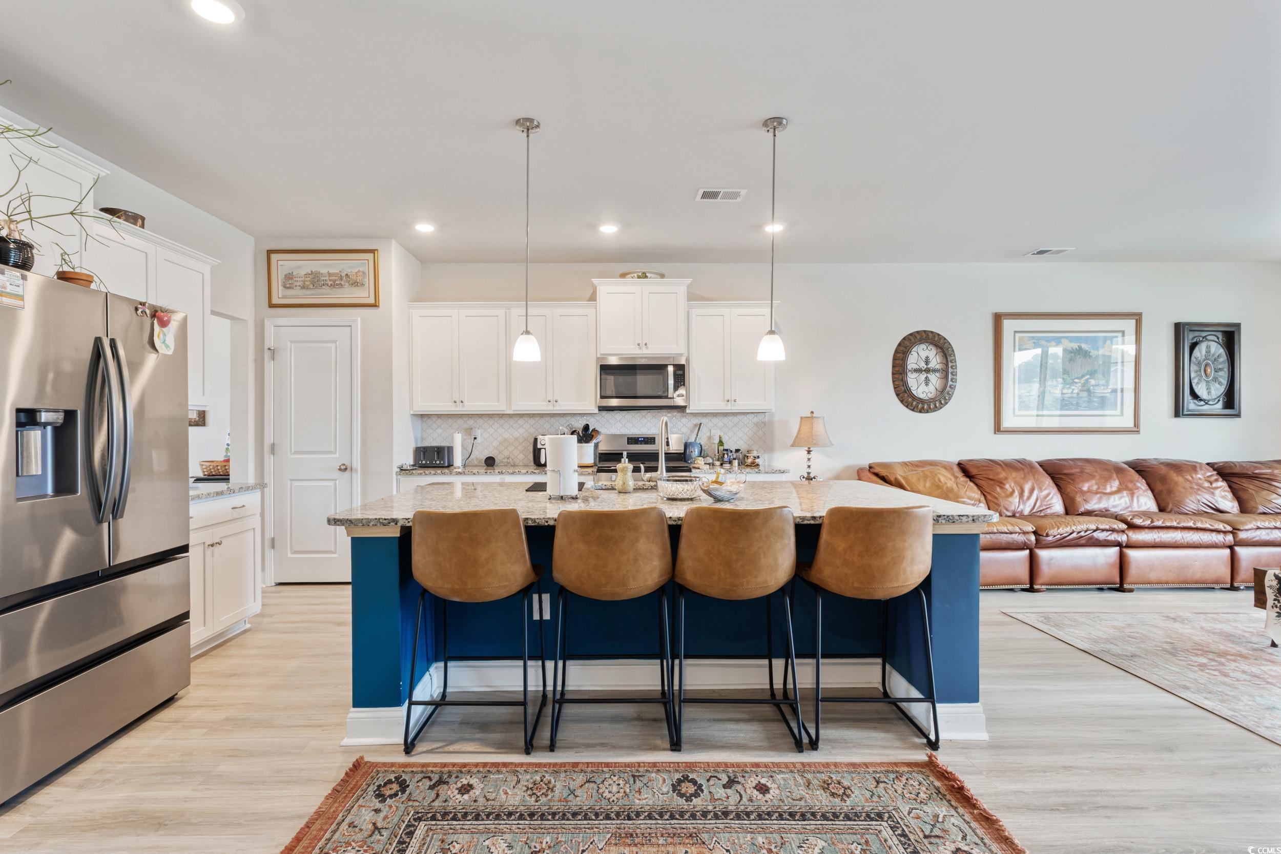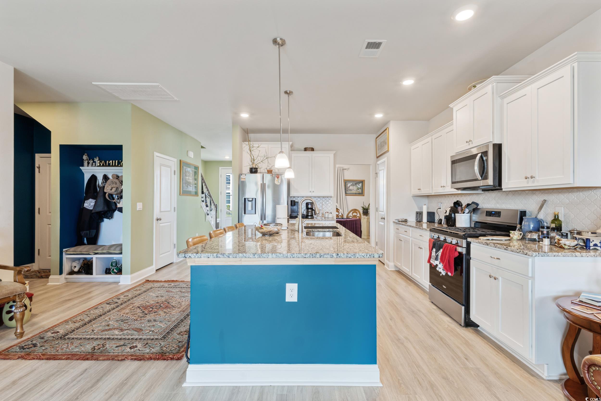 Significant Price Improvement – Incredible Value! If you’ve been searching for space, functionality, and beautiful pond views, this move-in ready Tillman plan delivers it all. Offering the perfect blend of indoor and outdoor living, this home features a welcoming front porch, a second-floor balcony, and a spacious rear screened porch overlooking the pond — ideal for relaxing or entertaining. Inside, the kitchen shines with sleek quartz countertops, 36” cabinetry, a large eat-in island, and stainless steel appliances including a gas range. Wide plank laminate flooring flows seamlessly through the dining area, kitchen, and living room, creating a warm and open feel. The first-floor owner’s suite offers a spacious walk-in closet and a private bath with dual vanities, a 5’ tiled shower, and linen closet. Upstairs, you’ll find a generous loft, four additional bedrooms, and two full baths — including one bedroom with direct balcony access. This is America’s Smart Home, equipped with integrated smart technology to control the thermostat, front door light and lock, and video doorbell from your smartphone or via Alexa. Enjoy community pool access included in the HOA, all just approximately 3 miles to the beach and conveniently located near shopping, dining, medical offices, and hospitals. The current owners are downsizing — creating a fantastic opportunity for the next family. Ideal for growing families or multi-generational living. Schedule your private showing today and take advantage of this new price!