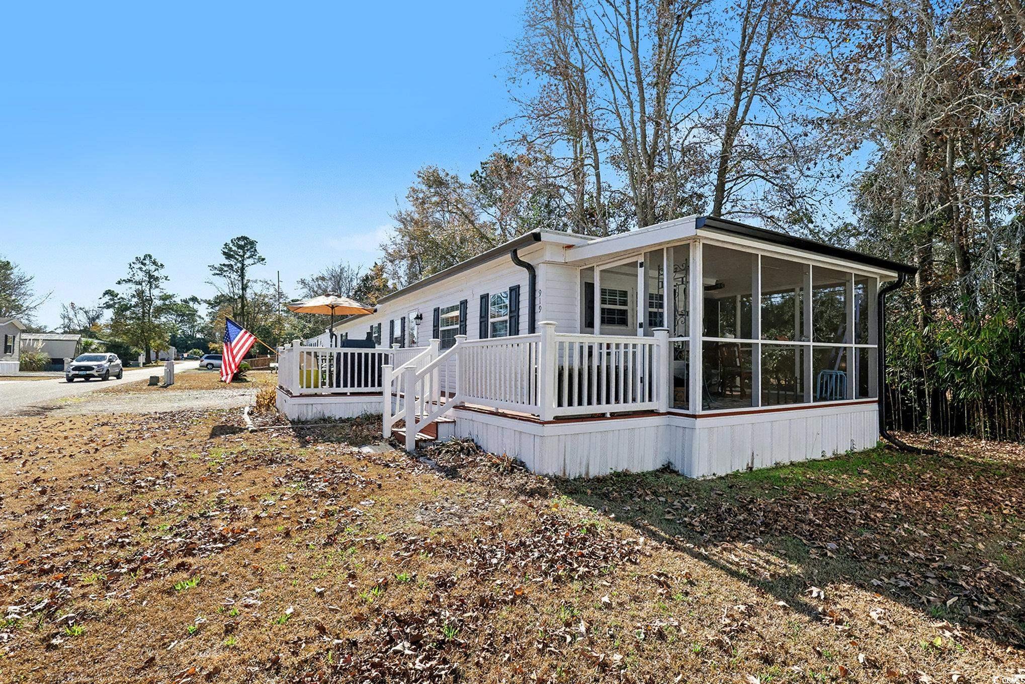 Welcome to your new oasis in the Foxfire community of North Myrtle Beach! This delightful 2-bedroom, 1-bathroom home features a welcoming wrap around deck, perfect for relaxing with a cup of coffee or entertaining guests. The kitchen offers ample countertop and cabinet space, making it an ideal environment for all your culinary adventures. Experience the durability and sleek style of LVP flooring throughout the kitchen, hallways, bathroom, living, and dining areas. The bathroom is equipped with a convenient walk-in shower. Unwind on the screened-in side porch, which overlooks lush trees, providing a serene and tranquil space for relaxation while enjoying nature. This home has seen recent upgrades, including a new roof and gutters installed in 2022, a new water heater in 2023, as well as a new washer/dryer in 2023, ensuring peace of mind for years to come. Living in Foxfire means you're just a golf cart ride away from the beach and the center of North Myrtle Beach! This vibrant community offers a variety of amenities, including a refreshing community pool, clubhouse, and pier, guaranteeing endless opportunities for entertainment and leisure. Conveniently located near North Myrtle Beach's finest dining, shopping, golf, and entertainment options, this home is the ideal setting for enjoying the coastal lifestyle. This home would make a great forever home or vacation spot. Don't miss out on this fantastic opportunity, schedule your showing today!