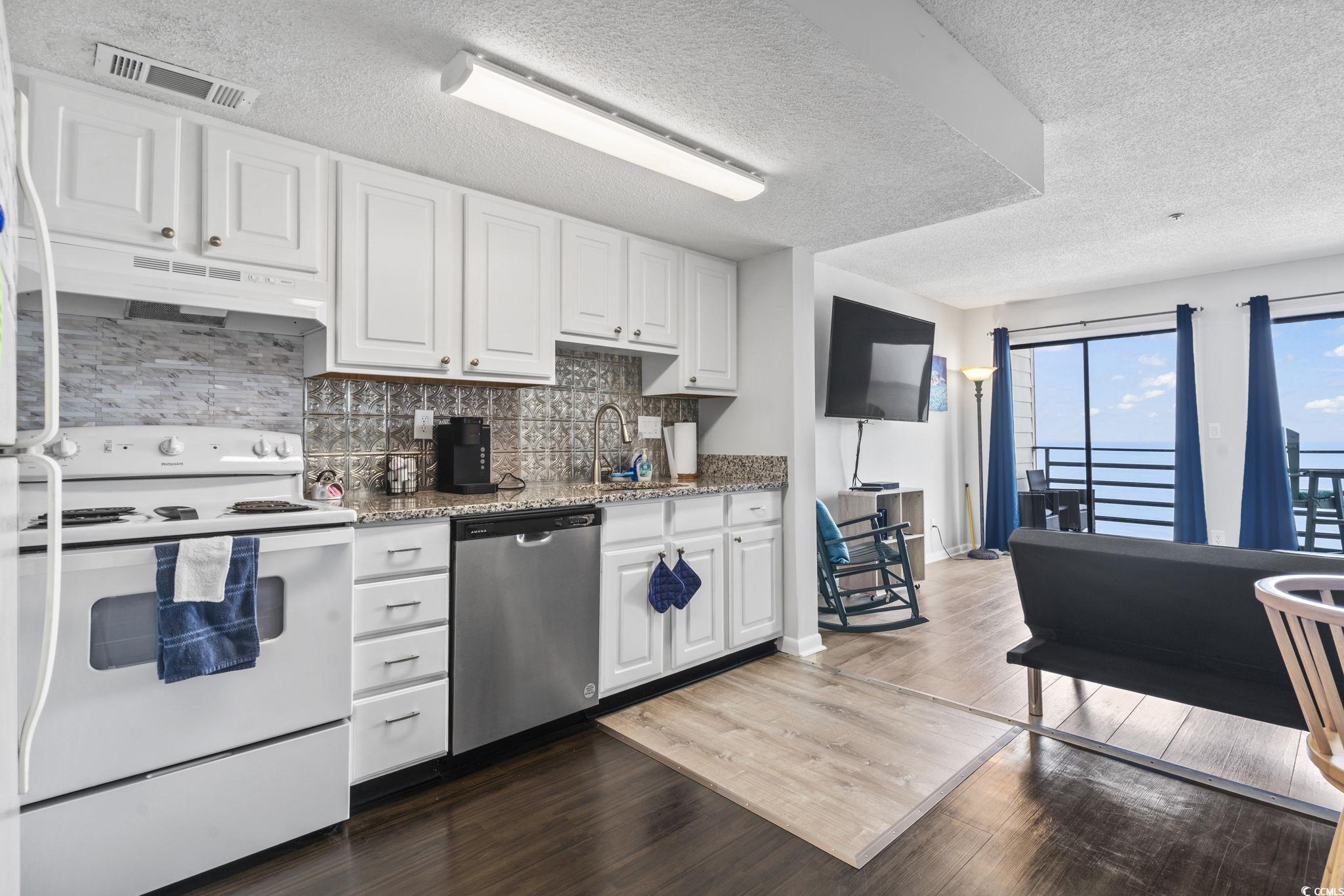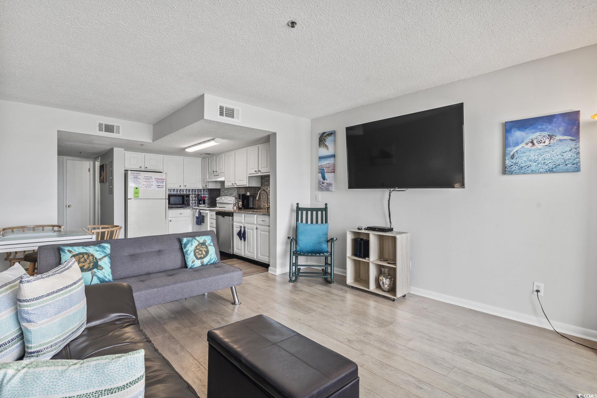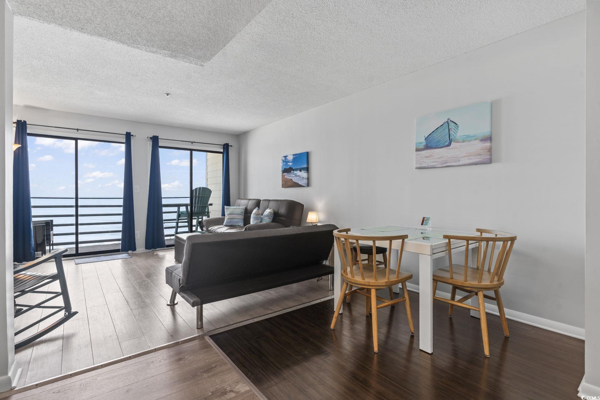 ** Price Improvement ** Furnished and beautifully updated, this 1-bedroom, 1-bathroom third-floor condo in Carolina Shores II offers direct, panoramic oceanfront views and the ultimate coastal escape. Located between the Surfside Beach pier and just north of the Garden City Pier, this 3rd-level unit is in an elevator building and features a thoughtfully opened-up floor plan with the original bar removed to create a more spacious, airy layout. Recent upgrades include new interior paint, updated electrical panel, granite countertops, updated stove/oven, dishwasher, and range hood, refreshed cabinetry, new futon couches that fold into additional sleeping space, new curtains, tables, and artwork, and new carpeting on the rear balcony. The HVAC was replaced in 2024, and the home features luxury vinyl plank flooring, and beachy décor throughout. Step out onto the private balcony to enjoy the sights and sounds of the Atlantic, or take advantage of the oceanfront pool and direct beach access. The building also offers coin/debit-operated laundry on the ground level and is located just blocks from the Garden City Pier, arcades, dining, shopping, and the iconic Sam’s Corner hot dogs. With strong rental potential, this condo is ideal as a second home, vacation rental, or personal beach getaway.