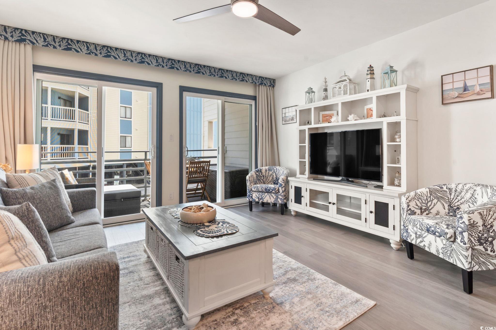 Fully Renovated Coastal Retreat in Carolina Shores – Garden City! This beautifully updated 1 bedroom, 1 bath unit was completely renovated in April 2024 and is located in an impeccably maintained oceanfront building. Freshly painted throughout, the unit features a customized kitchen with soft-close cabinets, quartz countertops, tiled backsplash, a custom island with bar seating and pull-out trash bins, a spacious pantry, built-in beverage station with mini fridge, and LED recessed lighting on dimmers. The inviting living room is thoughtfully designed for both comfort and functionality. Enjoy the natural light and ocean breeze through brand-new sliding glass doors that lead to your private balcony, where a cozy love seat lounger awaits with gorgeous views of the Atlantic Ocean. A custom cornice board adds a polished touch to the space. The living area also features a sleeper sofa with a memory foam mattress and a fold-out support board, perfect for accommodating overnight guests. For added versatility and privacy, a fold-out room divider easily separates the living area from the kitchen, making the space feel like a true guest retreat when needed. The primary bedroom offers a king-size bed with under-bed storage drawers and a custom closet. The bathroom includes a fully tiled walk-in shower and updated vanity. Additional upgrades include new Mohawk RevWood flooring over new subfloors, all-new electrical and panel, WiFi-enabled Nest thermostat, 2024 plumbing, new hot water heater, new ductwork and registers, and a recently serviced HVAC system. Enjoy resort-style amenities including an oceanfront pool, a beautifully landscaped sitting area underneath the building, and a scenic walkway and onsite laundry facility. HOA dues cover everything—including exterior insurance—with only electric as the owner's responsibility. Whether you're looking for a personal getaway or a turnkey rental, this coastal gem checks all the boxes!