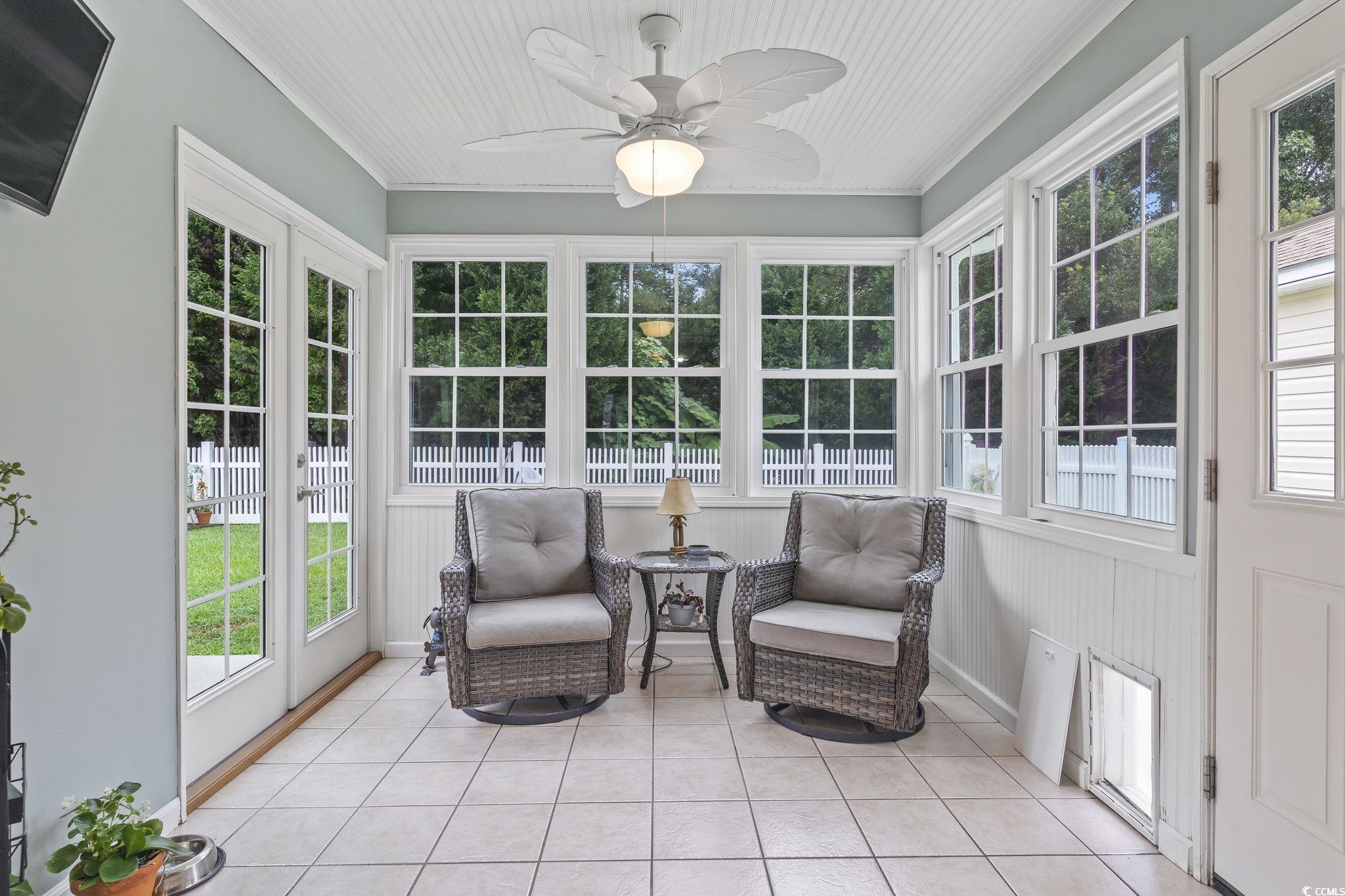 Coastal style Home with NEW Roof, new hot water tank & new HVAC | Craving comfort, privacy, and a move-in-ready lifestyle? Welcome to your charming oasis in the highly sought-after Island Green East community of Myrtle Beach. This well-maintained 3-bedroom, 2-bath home features a single-level layout with full wheelchair accessibility, ideal for easy coastal living. Step inside to find tile flooring throughout the main living spaces and laminate in 2 bedrooms for a seamless, low-maintenance lifestyle. The Carolina room opens with elegant French doors to a peaceful patio and fully fenced backyard—perfect for morning coffee, entertaining, or letting pets roam freely. A new Carolina sunroom was added in 2022 adding to the sq ft Need extra storage? You’ve got it—with an attached backyard storage room for your golf cart, tools, or beach toys. Major systems updated with a new roof and HVAC in 2023 and hot water heater in 2024 for total peace of mind. Listing agent offers a Choice home warranty to buyers at closing. In top-rated St. James school area, this home checks every box. Seller is offering 1000. toward buyer’s closing costs—don’t miss this opportunity to live in one of Myrtle Beach’s best-kept secrets!