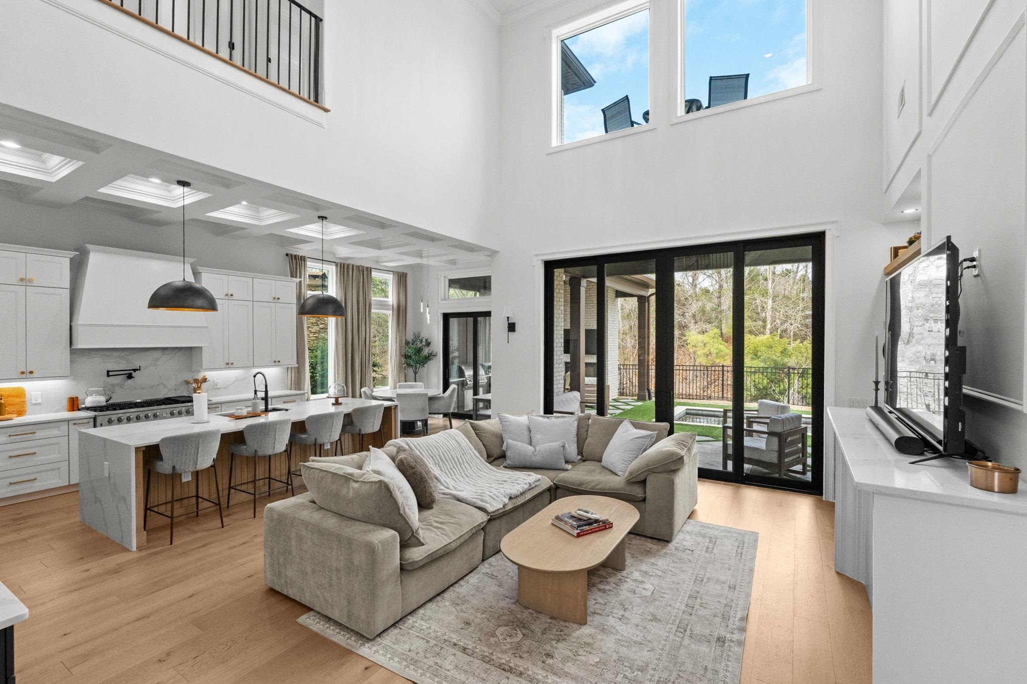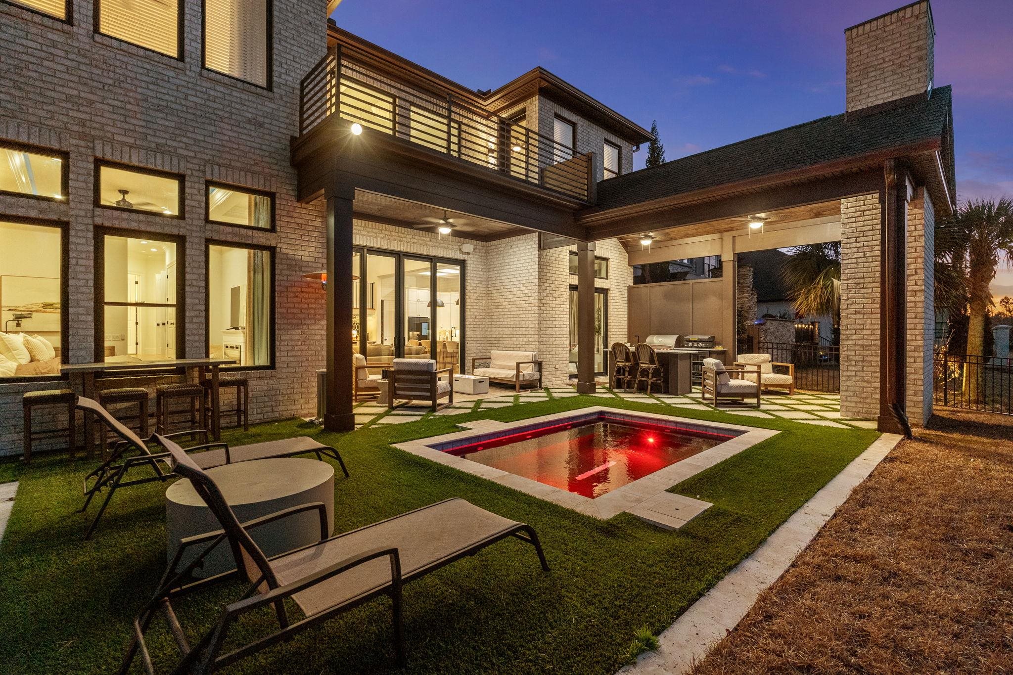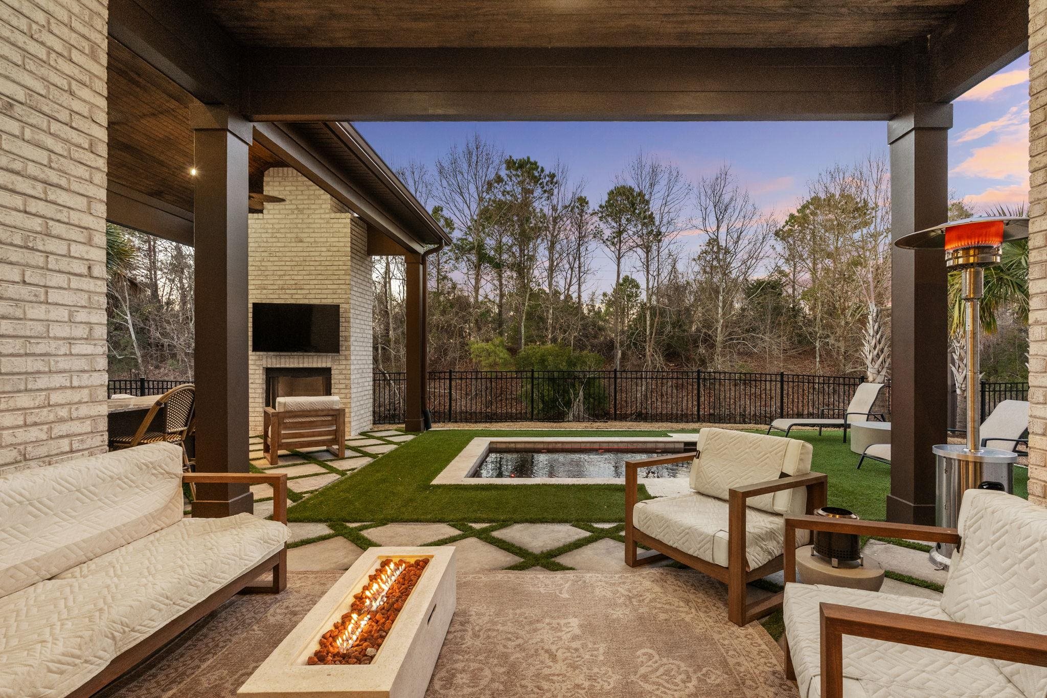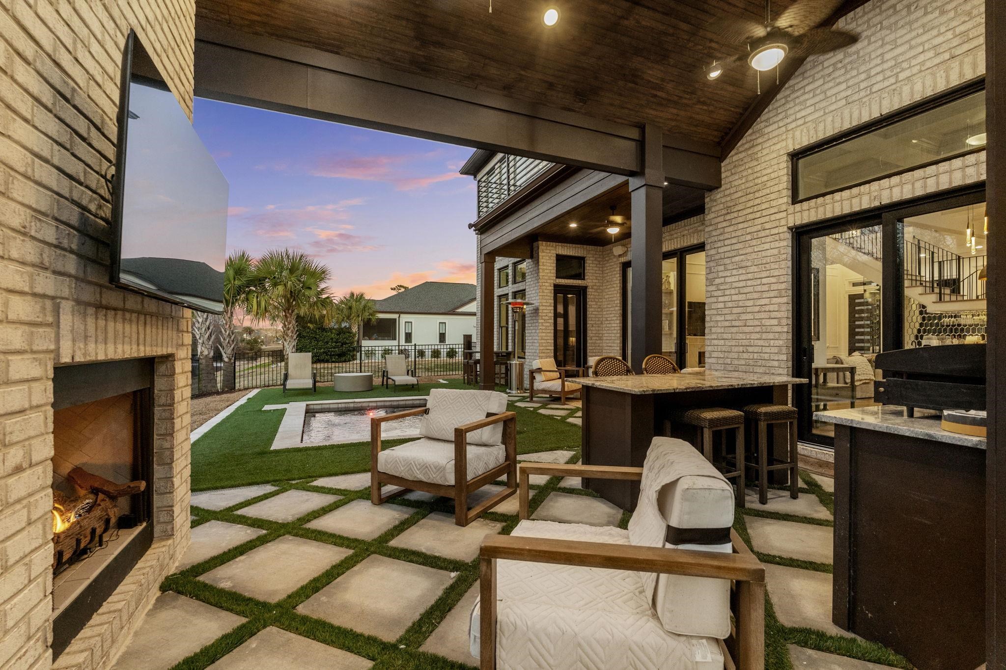 This 3,900+ heated square foot custom-built showpiece is the definition of elevated modern luxury. Featuring 4 bedrooms and 4.5 baths each bedroom designed as a private en suite and thoughtfully split throughout the home for ultimate privacy this residence delivers both sophistication and functionality at every turn. From the moment you enter through the custom front door onto bourbon street herringbone tile, the attention to detail is undeniable. A dramatic 26-foot ceiling anchors the main living space, complemented by extensive custom trim, designer tile selections, layered ceiling lighting, and a striking modern catwalk with metal railing overlooking the custom staircase. The chef’s kitchen is fully equipped with 48-inch appliances, abundant custom cabinetry, built-in pantry, under-cabinet lighting, and custom waterfall countertops. Entertain effortlessly with a dedicated coffee bar, wet bar, and an impressive sunken living room featuring a sophisticated fireplace with built-in shelving and accent lighting. A custom California wine rack adds a refined touch for collectors. The owner’s suite is a retreat of its own, complete with fireplace, detailed trim work, custom built-ins, and a show-stopping bathroom offering extensive cabinetry, makeup space, and an oversized steam shower with nightlight vents and bluetooth speakers. Upstairs includes two additional en suite bedrooms, an exquisite loft ideal for office or flex space, plus a bonus entertainment room featuring an additional wet kitchen area and private sauna. Outdoor living is just as exceptional. A massive vaulted under-roof lanai features a gas fireplace and a fully equipped outdoor BBQ kitchen with sink and island seating and another additional outdoor sitting area. Enjoy the bluetooth omni logic dipping pool/spa surrounded by a turf for a clean, modern aesthetic. Sonos surround sound flows seamlessly inside and out. Additional highlights include: • 3-car garage • Spray foam insulation • Downstairs laundry with abundant cabinetry and counter space • Built-in pantry and custom storage throughout • Shore closet and custom built-in closets • Fenced backyard backing to private pond and wooded preserve Located in an amenity-rich gated community offering sidewalks, boat/RV storage, private boat launch, pickle ball courts, tennis courts, basketball goal, day docks, clubhouse, and pool this home delivers a lifestyle that is unmatched. Fully upgraded and move in ready today. Schedule your showing today! Owner is a licensed South Carolina real estate agent.