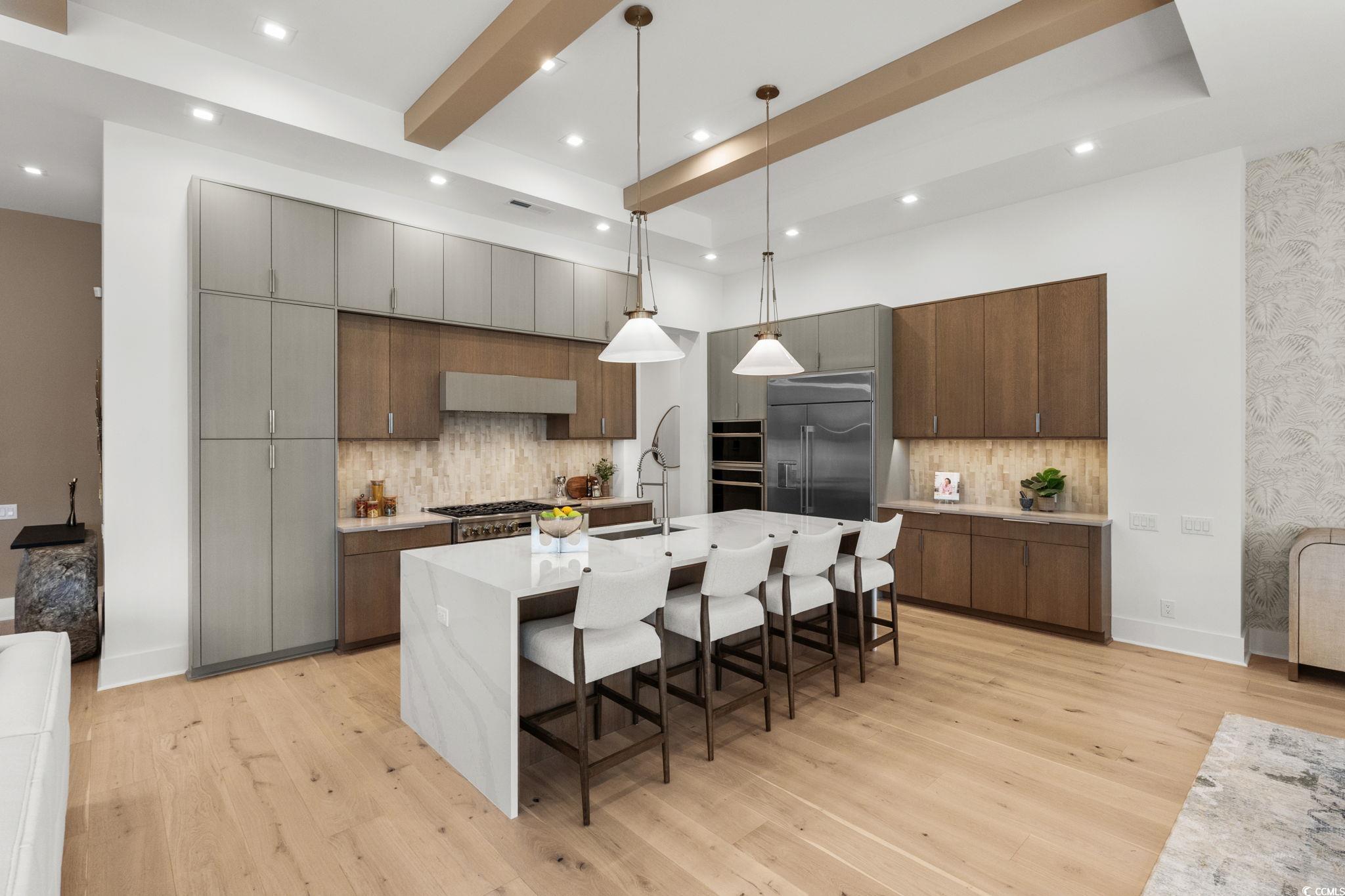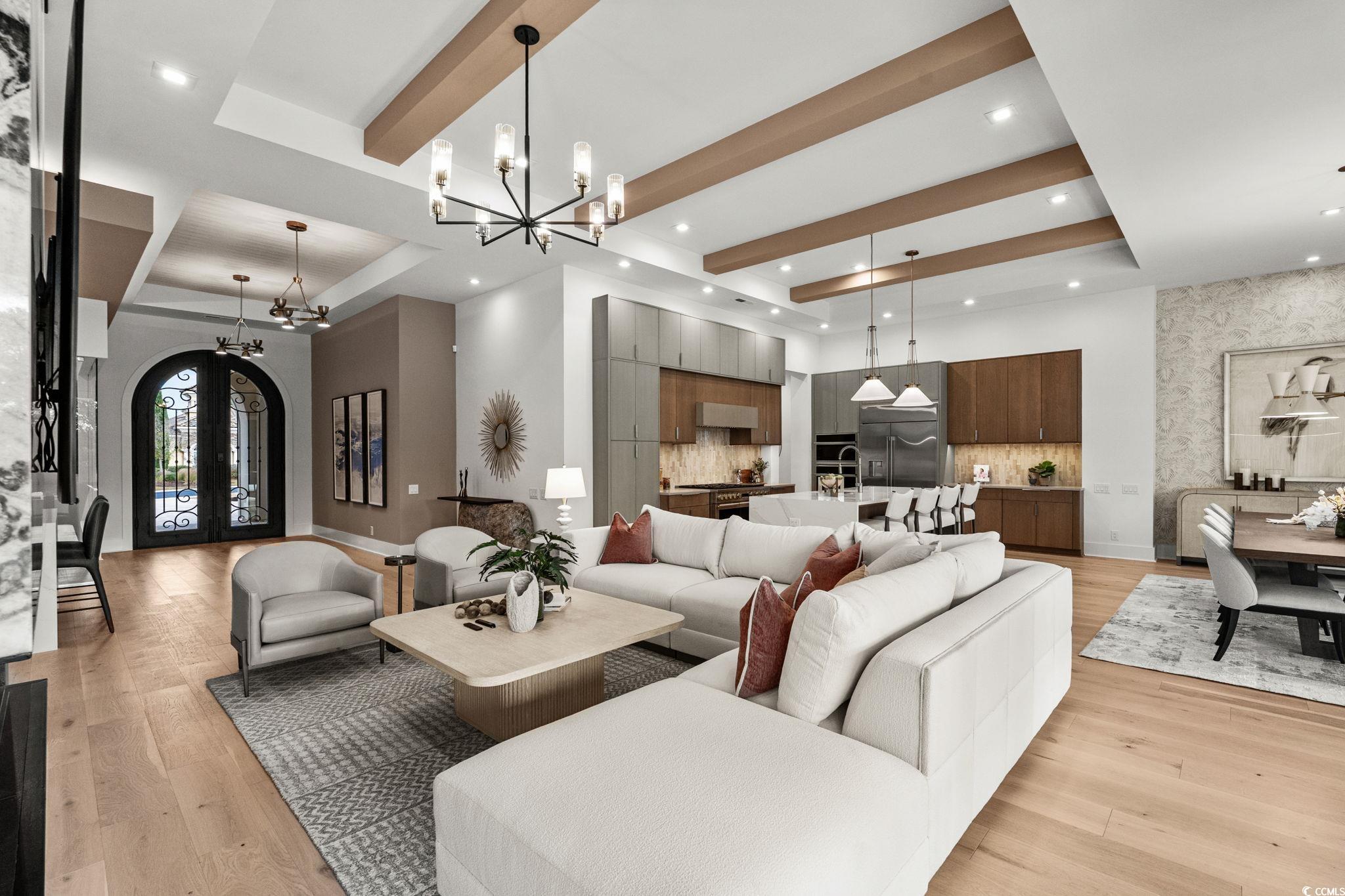 The Opal Model at Grande Dunes offers expansive living and refined coastal luxury, with 5,499 total square feet including 3,870 heated square feet, four bedrooms, four full baths, and two half-baths. At the heart of the home, the great room showcases soaring ceilings and a 74-inch electric fireplace, flowing effortlessly into the chef’s kitchen, prep kitchen, and casual dining area. A spacious bonus room and private den add versatility for entertaining, relaxing, or working from home. The owner’s suite is a serene retreat with a spa-inspired bath featuring a freestanding tub and an oversized walk-in closet. Outdoor living is elevated by a 650-square-foot lanai and cabana, with available options for a pool, spa, and outdoor kitchen—ideal for gatherings or peaceful evenings at home. With more than 700 square feet of garage space and thoughtful finishes throughout, The Opal perfectly blends modern luxury, comfort, and functionality. Located in Myrtle Beach’s premier coastal community, Grande Dunes, this 2,600-acre master-planned development stretches from the Atlantic Ocean to the Carolina Bays Preserve and is unmatched in amenities and lifestyle. Homeowners enjoy exclusive access to the 25,000-square-foot Ocean Club, offering fine dining, oceanfront pools with food and beverage service, meeting spaces, and year-round activities. Additional community features include two championship 18-hole golf courses, multiple on-site restaurants, a deep-water marina, Har-Tru tennis courts, and miles of biking and walking trails. Call today to schedule your private tour of this exceptional home.