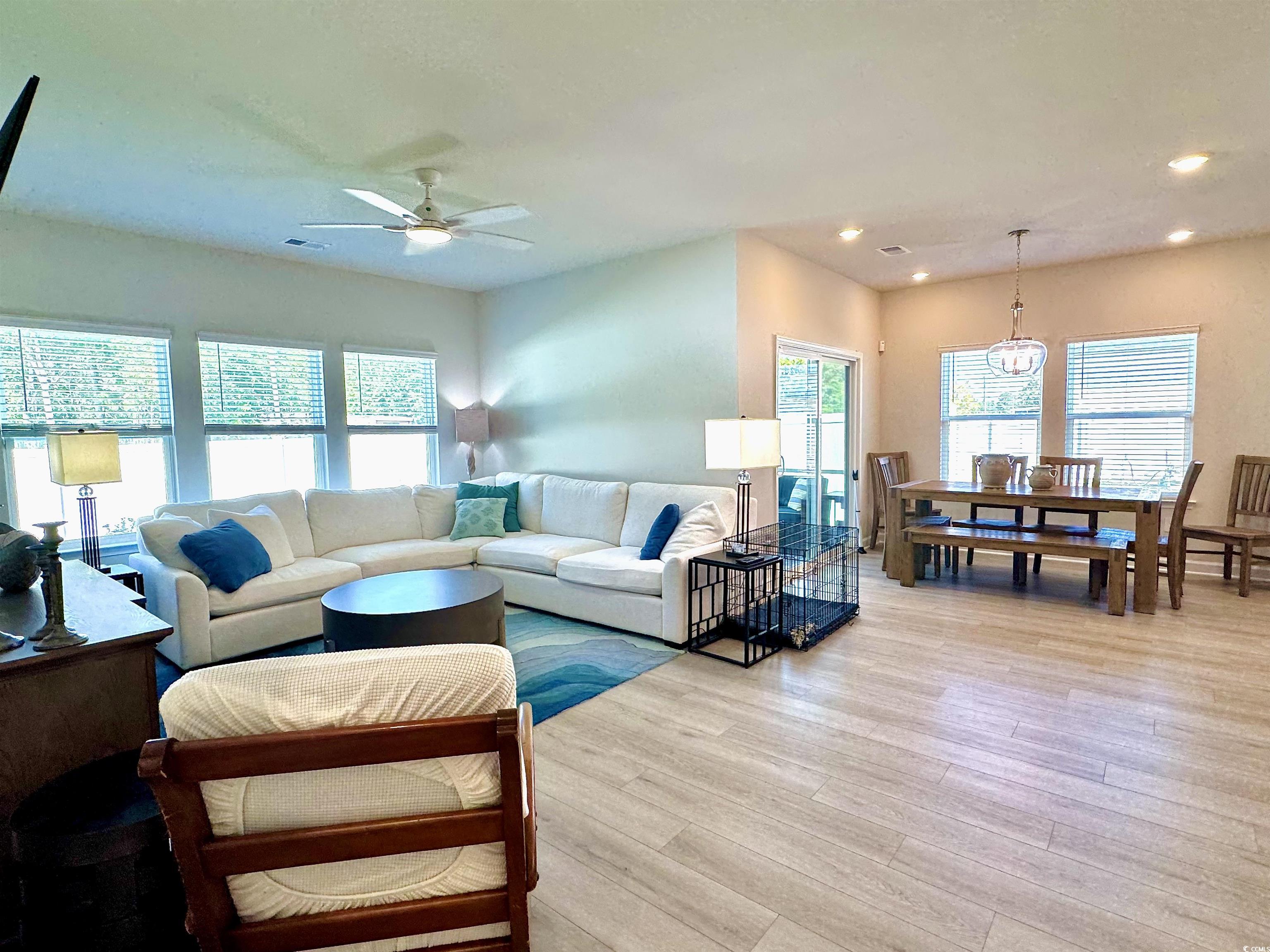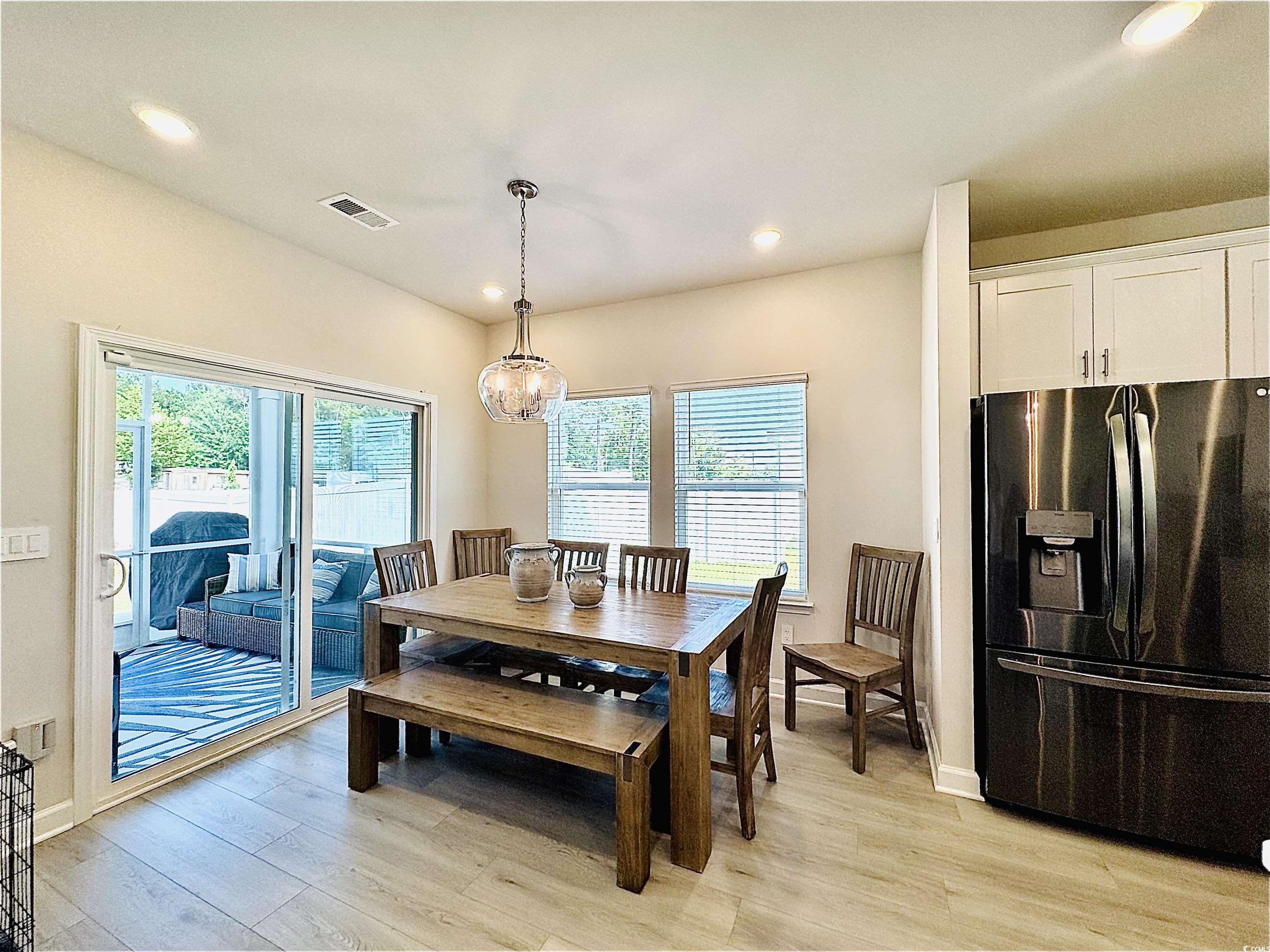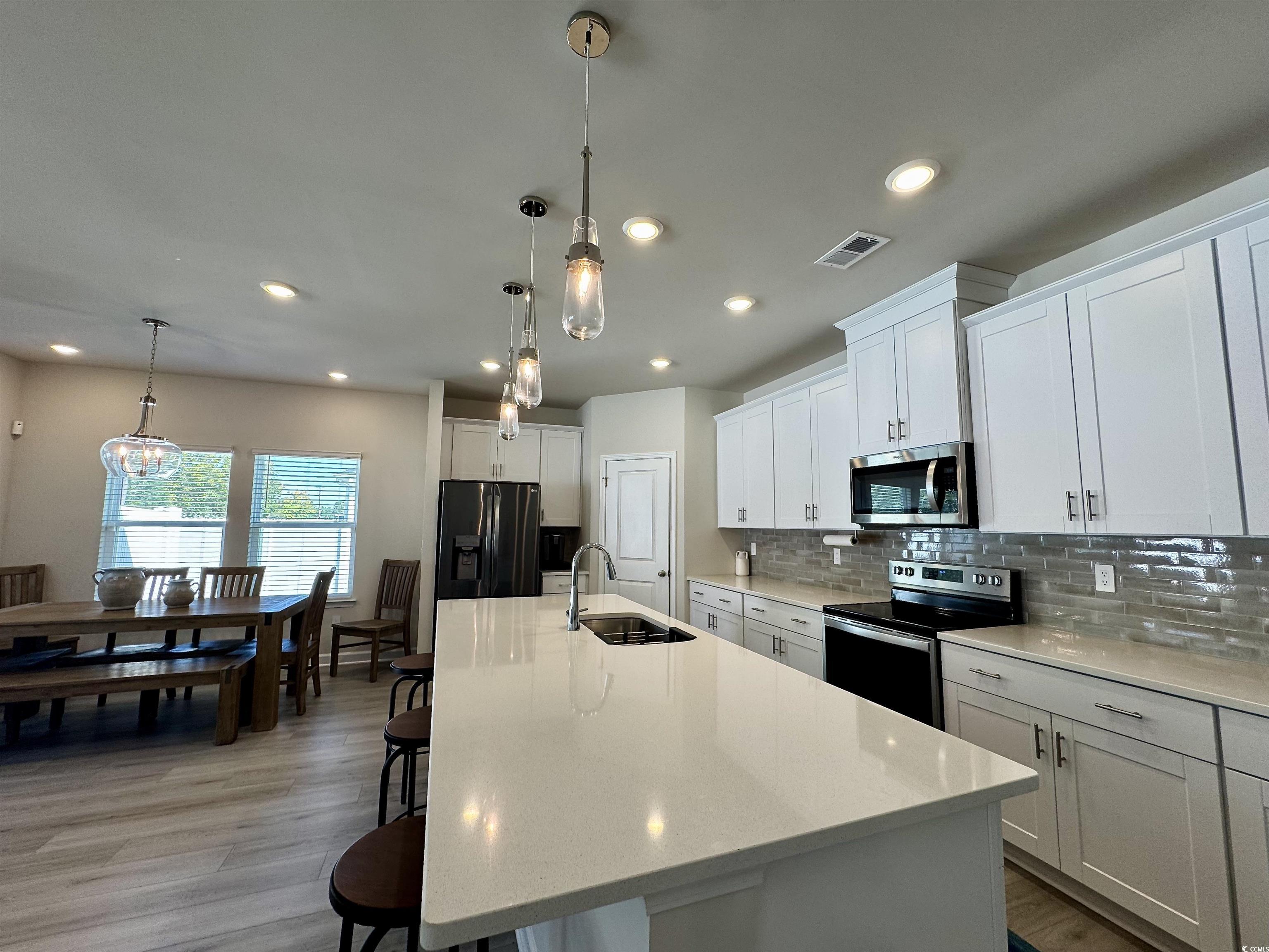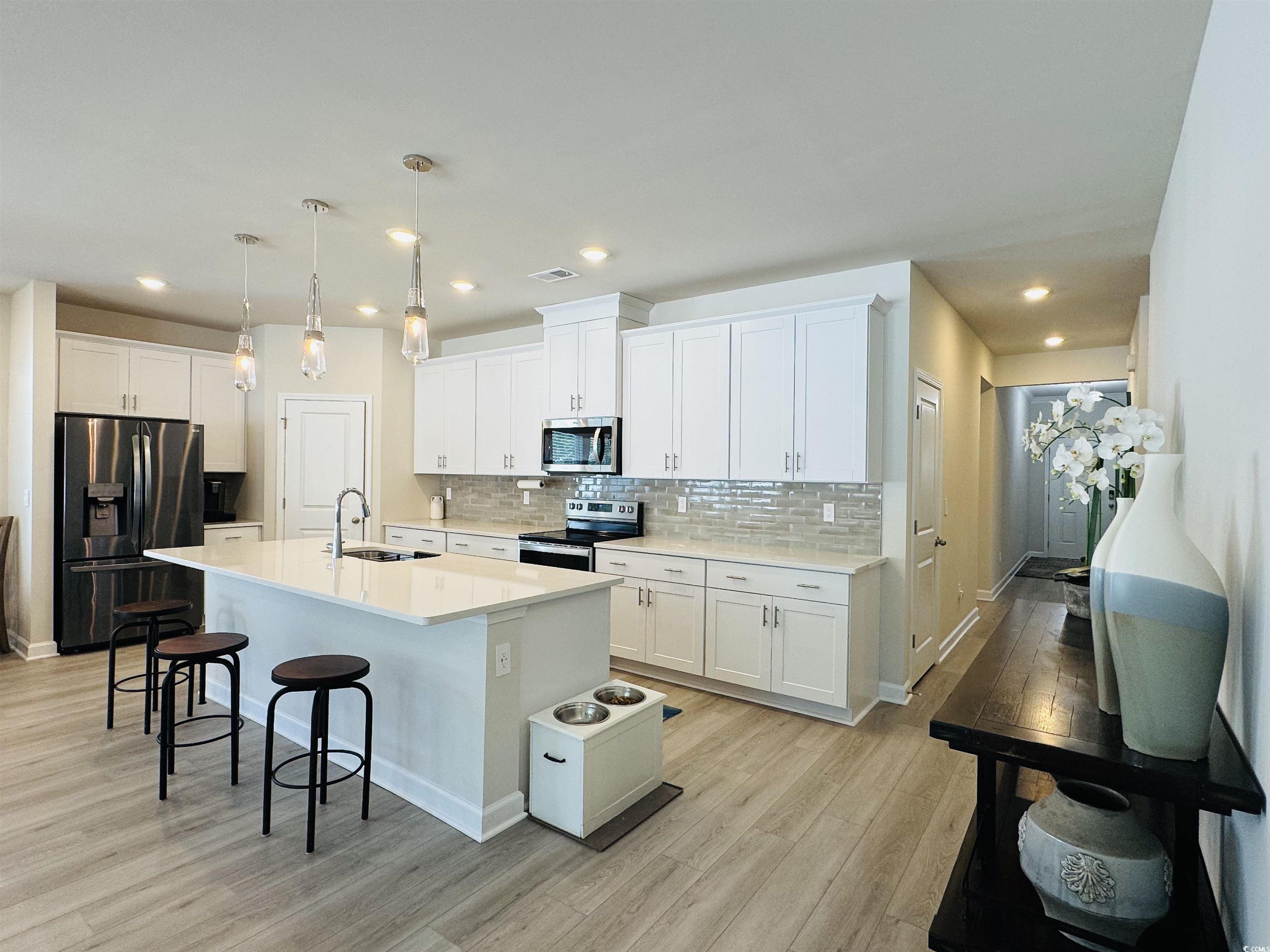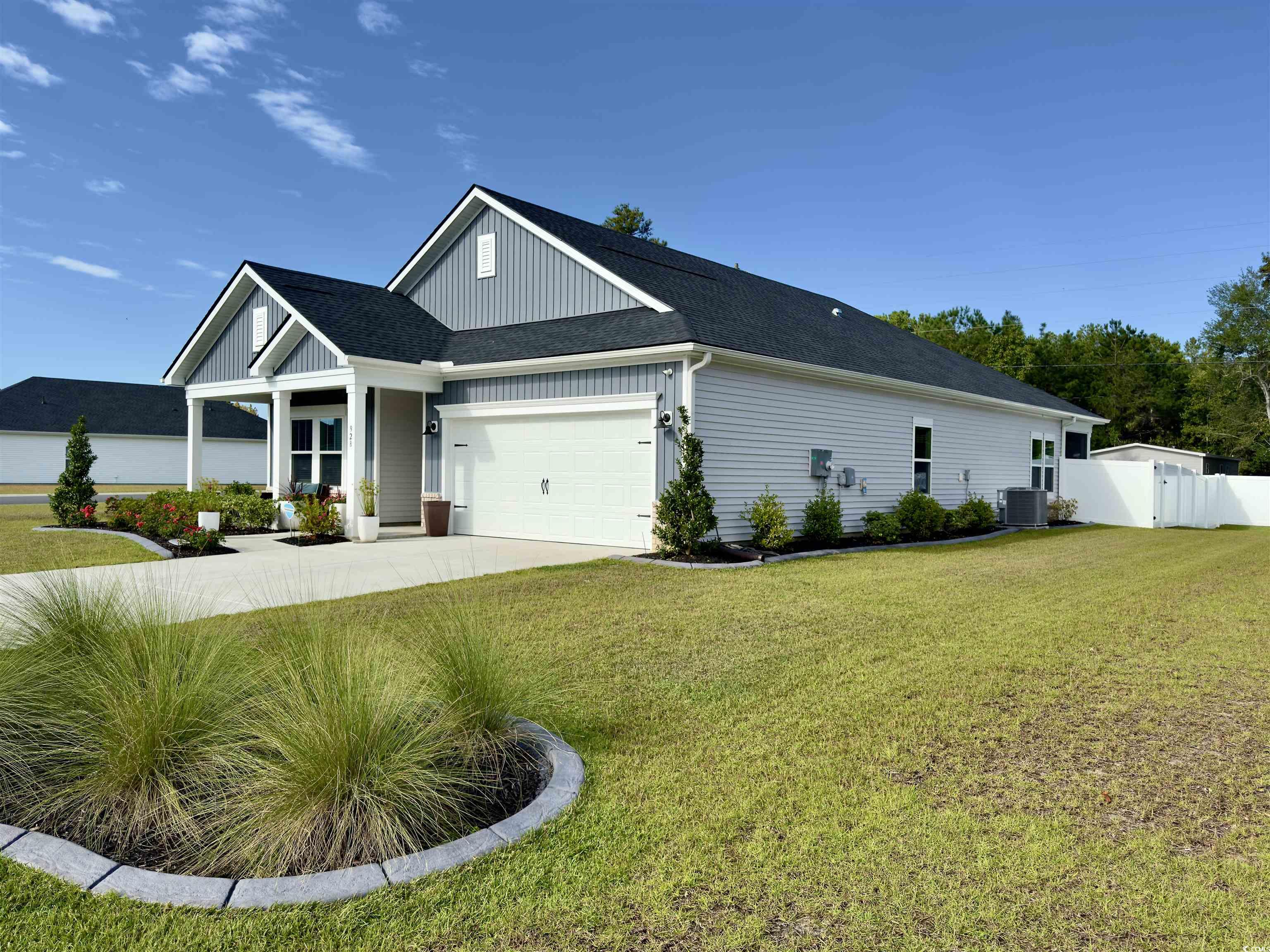 Recently constructed in 2024, this beautifully designed home in Creekside Point, Little River, South Carolina combines modern comfort with relaxed coastal living just minutes from North Myrtle Beach. Thoughtfully crafted for gatherings, the open-concept floor plan flows seamlessly from the spacious living area to a screened porch and extended patio, creating the perfect setting for entertaining or quiet evenings outdoors. Inside, attention to detail shows throughout. Enjoy energy-efficient construction, upgraded lighting fixtures, custom pull-out kitchen drawers, a built-in mudroom with cubbies, and custom-designed closets that maximize organization and style. A walk-through, walk-in closet conveniently connects the owner’s suite to the laundry room—making daily living simple and efficient. The private primary suite offers abundant natural light, a large walk-in closet, and a spa-style shower for a truly restful retreat. A Jack-and-Jill bath with dual sinks serves the secondary bedrooms, adding comfort and functionality for family or guests. Outdoors, this home impresses with enhanced landscaping, decorative curbscapes, and a privacy fence, offering both curb appeal and seclusion. Located in Creekside Point, one of Little River’s most desirable new communities, residents enjoy oversized homesites, a community pool, and a cabana. Just minutes from the Little River waterfront, North Myrtle Beach, championship golf courses, and waterfront dining, this home delivers a perfect blend of modern design, energy efficiency, and coastal convenience—all within reach of everything the Grand Strand has to offer.