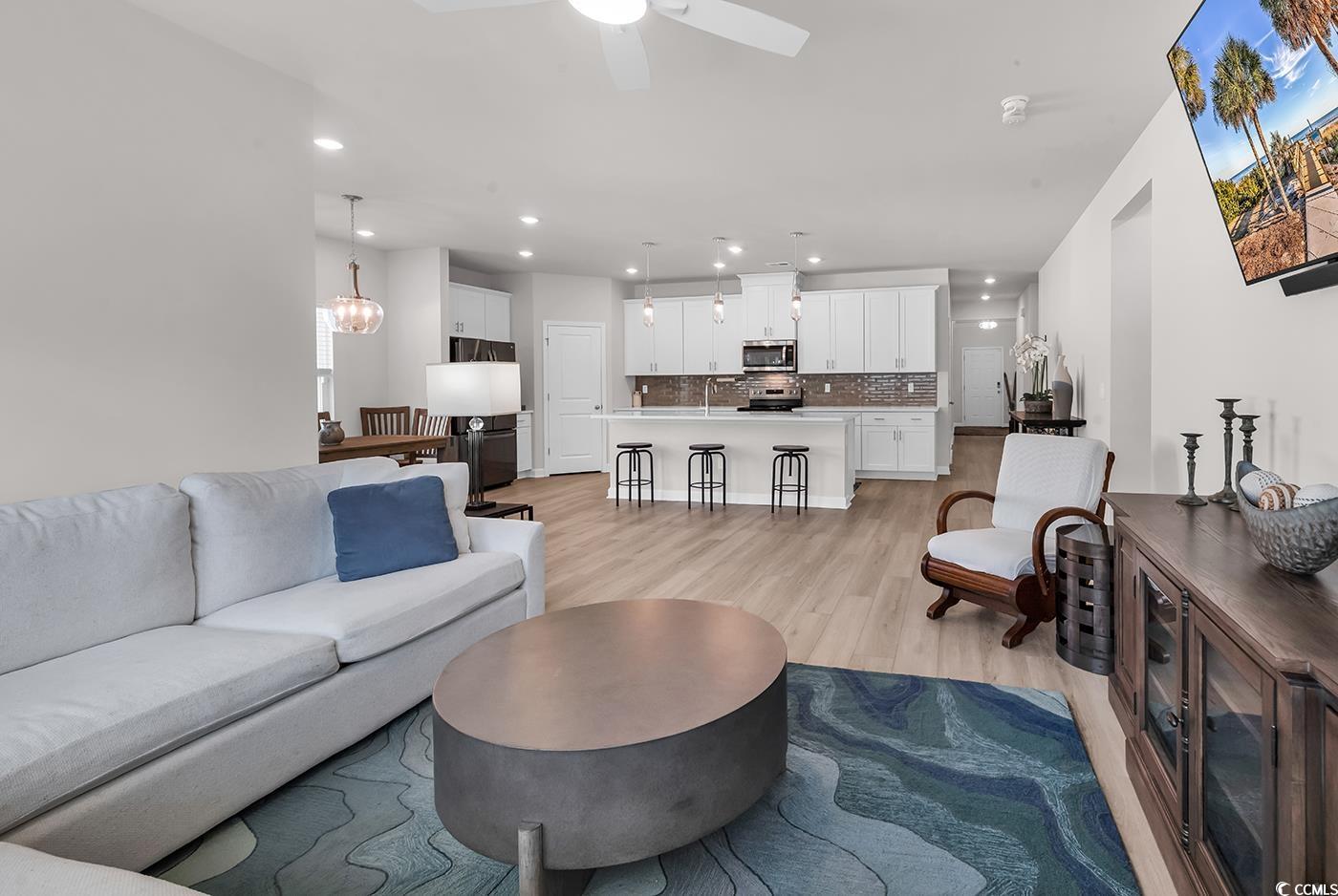 Creekside Point residents enjoy a community pool and cabana, oversized homesites, and walkable streets. The HOA includes high-speed internet service and trash pickup, adding everyday convenience and value. Located close to the Little River waterfront, marinas, golf courses, restaurants, shopping, and the beaches of North Myrtle Beach, this home delivers the modern coastal lifestyle buyers seek throughout the Grand Strand. Recently built in 2024, this modern coastal home in Creekside Point, Little River, South Carolina offers exceptional privacy, convenience, and energy-efficient living just minutes from North Myrtle Beach. Located in one of Little River’s most desirable new communities, the open-concept floor plan flows effortlessly from the spacious living area to a screened porch and extended patio—ideal for entertaining or relaxing after a day on the coast. Inside, thoughtful upgrades include energy-efficient construction, upgraded lighting fixtures, custom pull-out kitchen drawers, a built-in mudroom with cubbies, and custom-designed closets for optimal organization. The private owner’s suite features a large walk-in closet, a spa-style shower, and a convenient walk-through connection to the laundry room. Secondary bedrooms are connected by a well-appointed Jack-and-Jill bathroom with dual sinks. Outdoors, the fully privacy-fenced backyard sits on an oversized corner lot and has recently undergone a professional landscape makeover, including re-grading and leveling to create a more usable, functional outdoor space—perfect for pets, play, gatherings, gardening, or quiet evenings outdoors. Enhanced landscaping and decorative curbscapes further elevate curb appeal. Additional highlights include a two-car garage for secure parking and storage, plus a whole-house security system already installed with sensors on all windows and doors for peace of mind from day one.