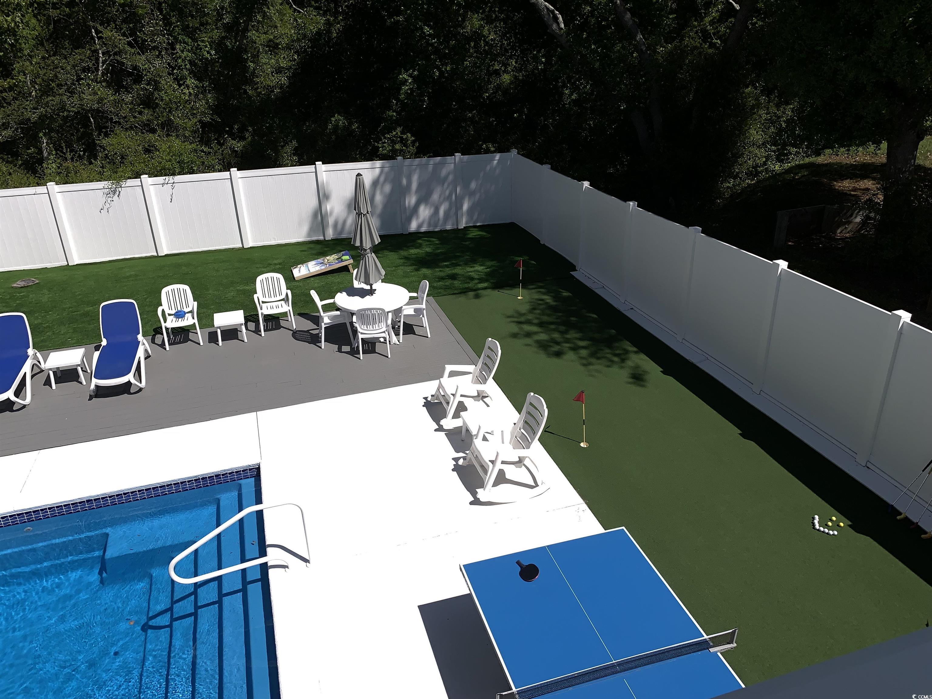 This is one unique property--See the Ocean from your Front Porch and Look over the 7 acre Ingram Dunes City Wildlife Reserve Park from your back porch. Private heated saltwater pool--Esinkin 3 speaker Bluetooth outdoor stereo system--4 hole putting green--artificial turf--1/2 bath and outdoor shower by pool--private area with 20 x 20 sail shade--4 person jacuzzi tub--fire pit--outdoor shower--RV parking and hookups--whole house generator on Natural Gas--Hurricane glass windows and doors--two garage doors for easy car and golf cart access--two full kitchens and living areas one up and one down--9 blocks to Main Street with grocery stores, restaurants and entertainment--only a few miles to Barefoot Landing with ICW restaurants and shopping--Location Location
