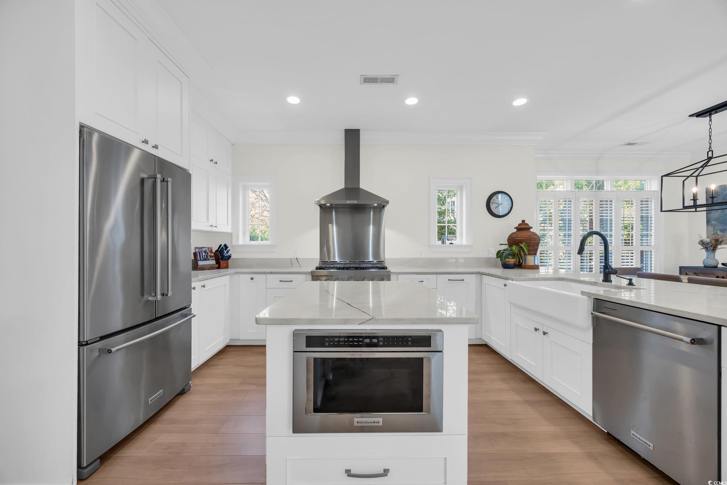Coastal Elegance meets modern luxury in this FULLY UPDATED 4 Bedroom 3.5 Bath with BONUS ROOM CUSTOM BUILT dream home located in the GATED Intracoastal Waterway Community of Collins Creek Landing! Welcome to 93 Knotty Pine Way - your turnkey residence in one of the area's most exclusive communities. From the moment you arrive you will appreciate the mature foliage that surrounds this coastal charmer - pulling into a DEEP DRIVEWAY, side loading 2 car garage, ROOF REPLACED in 2025 - makes coming home easy. A sprawling southern VERANDA draws you closer and invites you to porch sit day or night - relax and take in the DIRECT WATER VIEWS of one of many community ponds. Step inside to discover light & bright ALL NEW LUXURY VIYNL PLANK fLOORING throughout the 1st floor, ALL NEW ETHAN ALLEN LIGHTING, FRESHLY PAINTED INTERIOR, FORMAL DINING ROOM, COFFERED CEILINGS, TWO FIREPLACES, FIRST FLOOR MASTER & En-suite, ALL NEW CARPETING UPSTAIRS and so much more. The seller has seamlessly blended timeless design with modern functionality. At the heart of the home lies a FULLY RENOVATED CHEF'S KITCHEN - curated for both form & function, adorned with gorgeous QUARTZITE COUNTERTOPS, quality DESIGN CRAFT soft close CABINETRY, expansive breakfast bar and a wine bar with 2 New Fridges, TWO PANTRIES - one WALK-IN, professional-grade NEW GAS RANGE and Stainless Steel appliances with a DEN nestled off to the side, making it ideal for entertaining or everyday living. All meticulously maintained, reflecting the home's overall attention to detail and care. Step outside to your outdoor oasis featuring; a welcoming deck and FENCED IN BACKYARD with space for a pool or anything you enjoy doing outside. Once you've taken in all this home has to offer head over to one of the many community amenities; GATED BOAT STORAGE, community BOAT RAMP & FLOATING DOCK with DEEP WATER ACCESS to the Intracoastal Waterway, Clubhouse with Banquet Room & Kitchen for hosting all of your special events, JUNIOR OLYMPIC sized POOL, Playground, Stocked Fishing Ponds, Batting Cage, Junior Soccer Field & Half-court Basketball Court. This eclectic community offers something for everyone - Community members enjoy annual events; Chili Cook-offs, 4th of July firework show , golf cart parade and community block party you have to see to believe, or join us at the Clubhouse for holiday fun with Mr. & Mrs. Clause and friends. The only thing missing - is YOU and the memories you will create living life on the coast in a community that feels like home. Schedule your showing today.