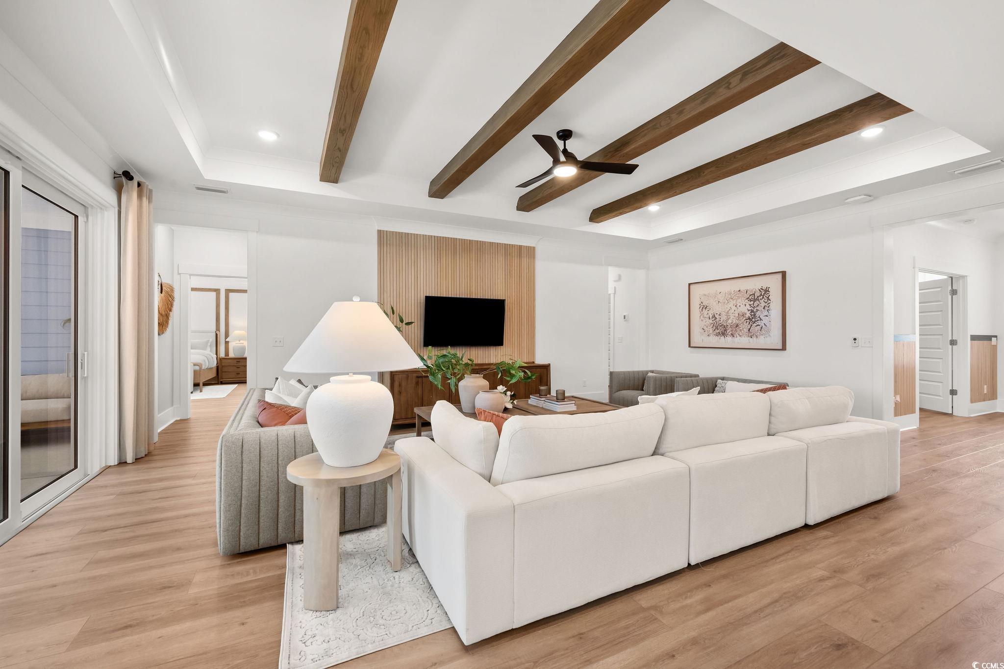 Beautiful Stellar Floor Plan! 3 bedrooms plus office, 3 bathrooms with large gathering room and covered porch, Gourmet kitchen with White Cabinetry Quartz countertops, stainless steel appliances, LED lighting throughout, and just a quick walk to the amenities! Just 6 miles from the Ocean and minutes from Barefoot Landing! High-Speed Internet and Cable included in Monthly HOA. < 231 Homes upon completion, build to suit, choice of 15 Customizable Floorplans. Detached Low-Country, Single-Level Floorplans, 2 - 4 Bedroom homes with 2-3 car garage options. Photos are of Model Home, will be changed once home is complete Nov/Dec of 2025.