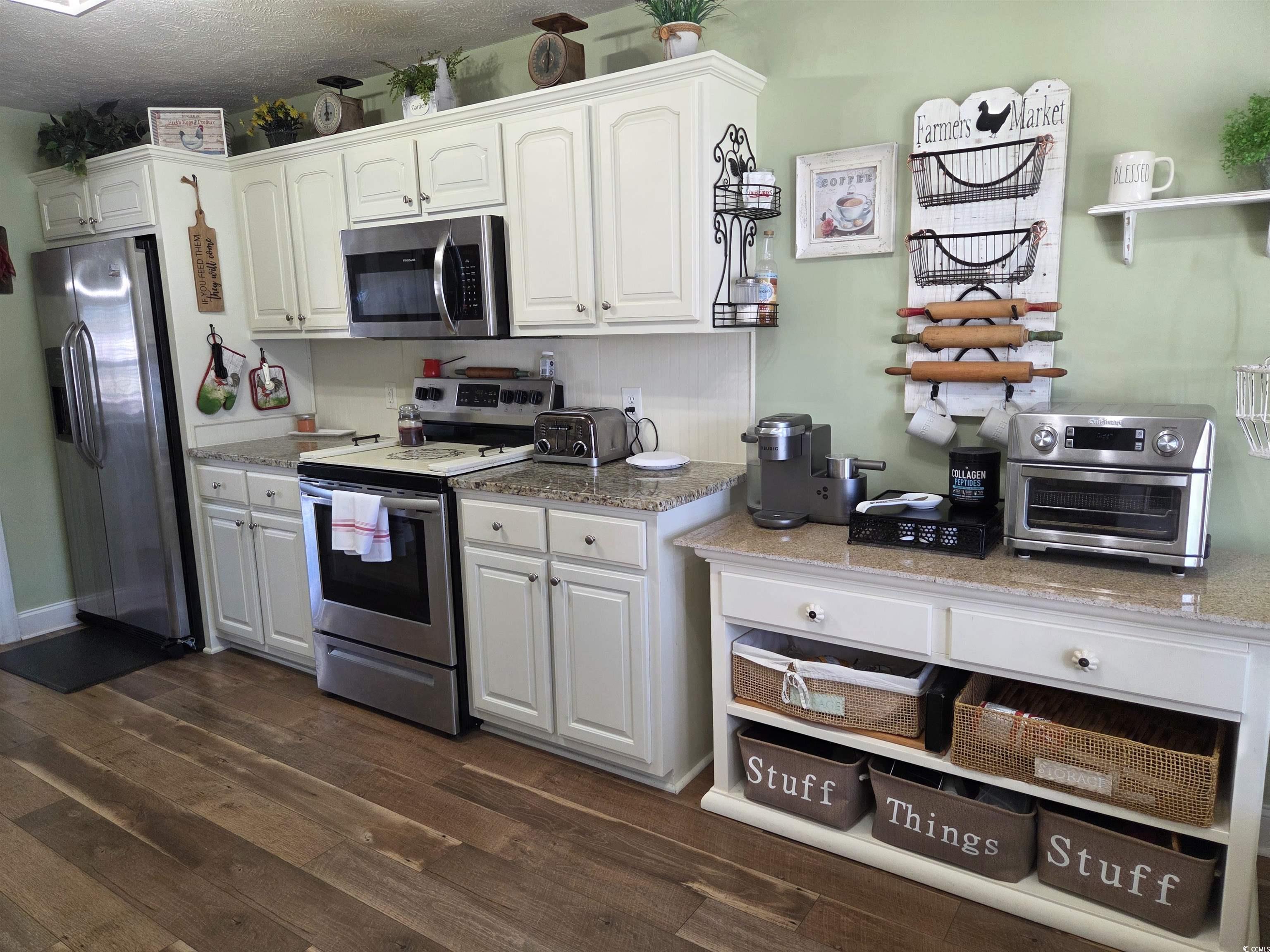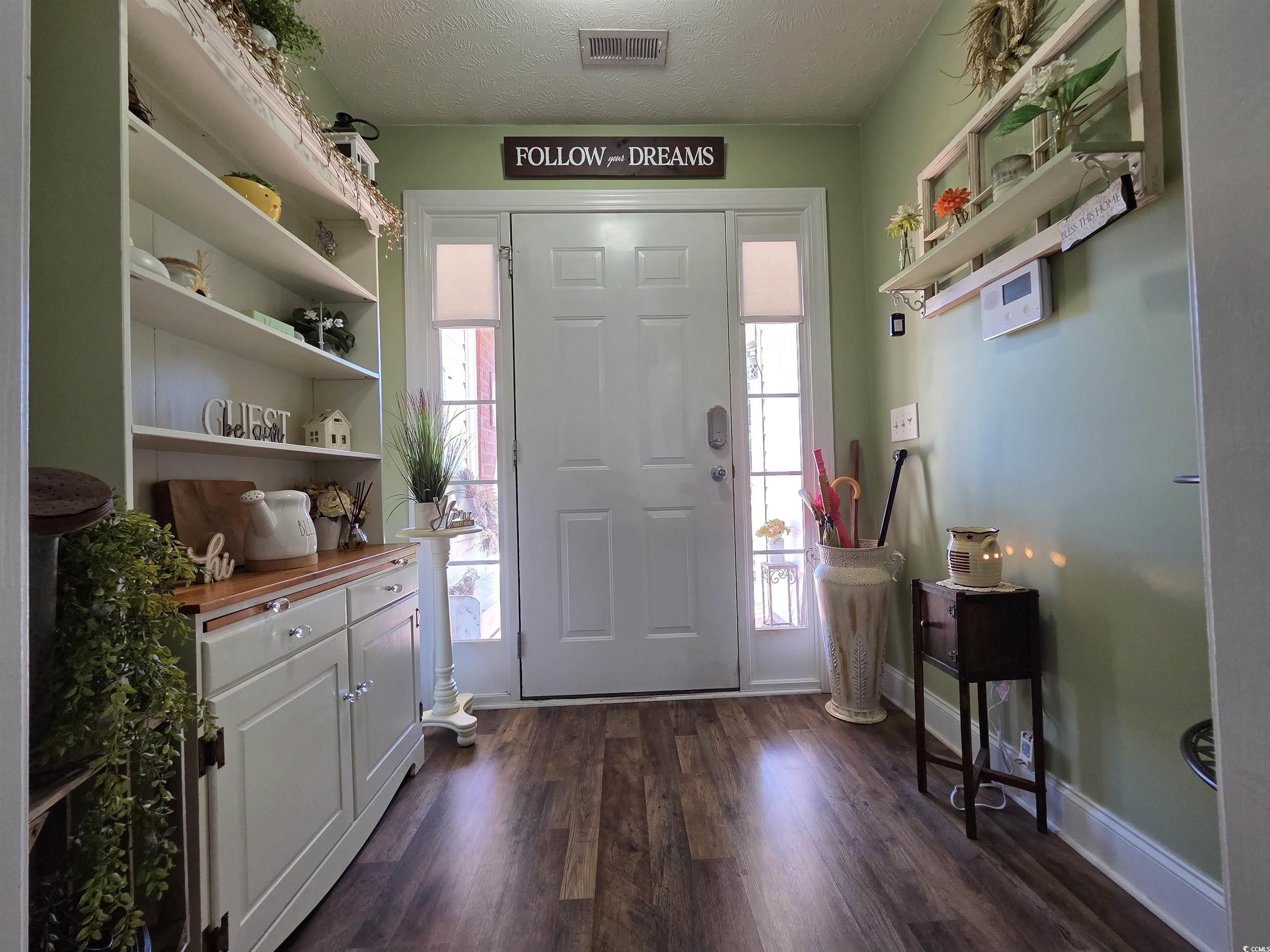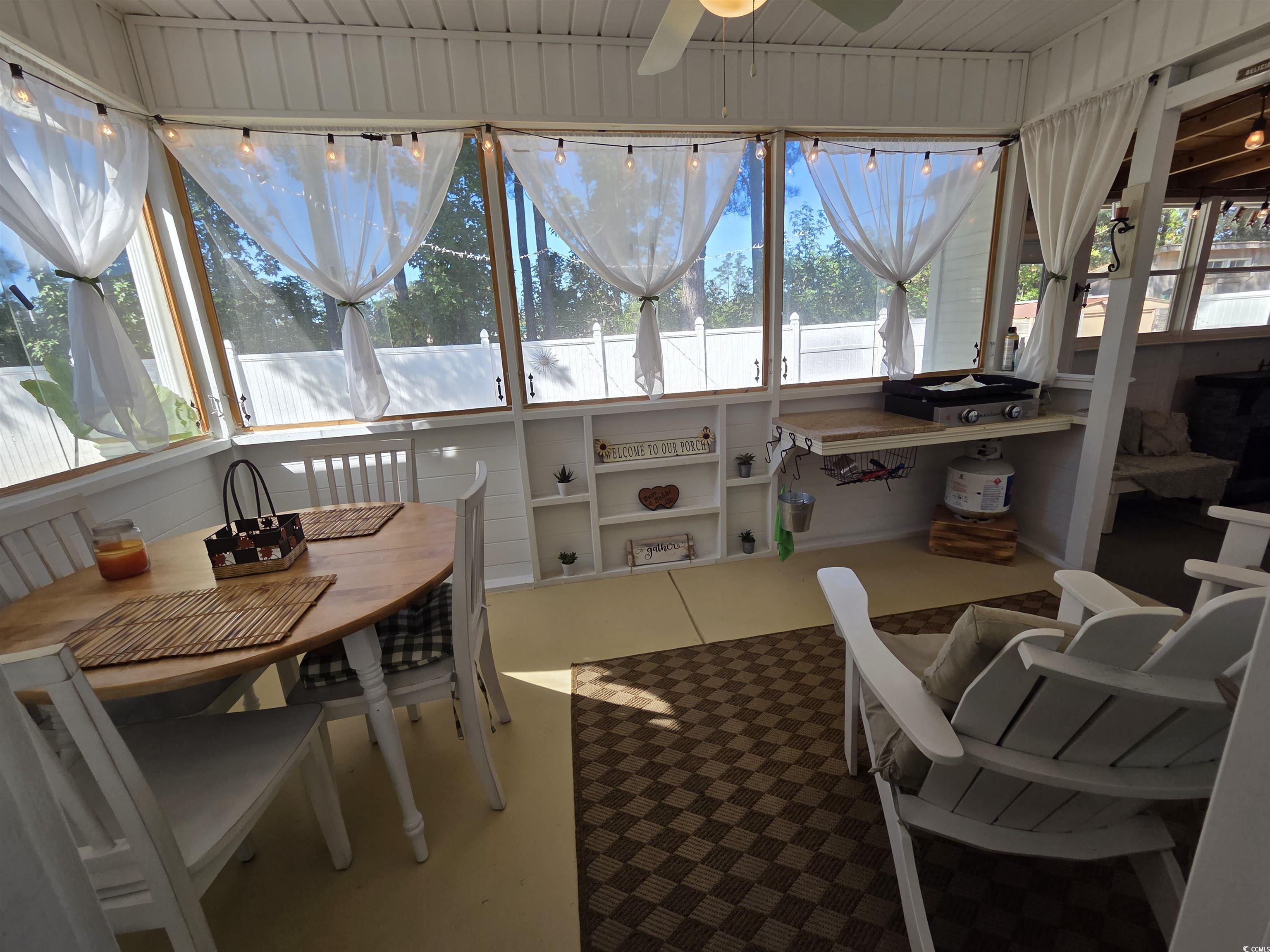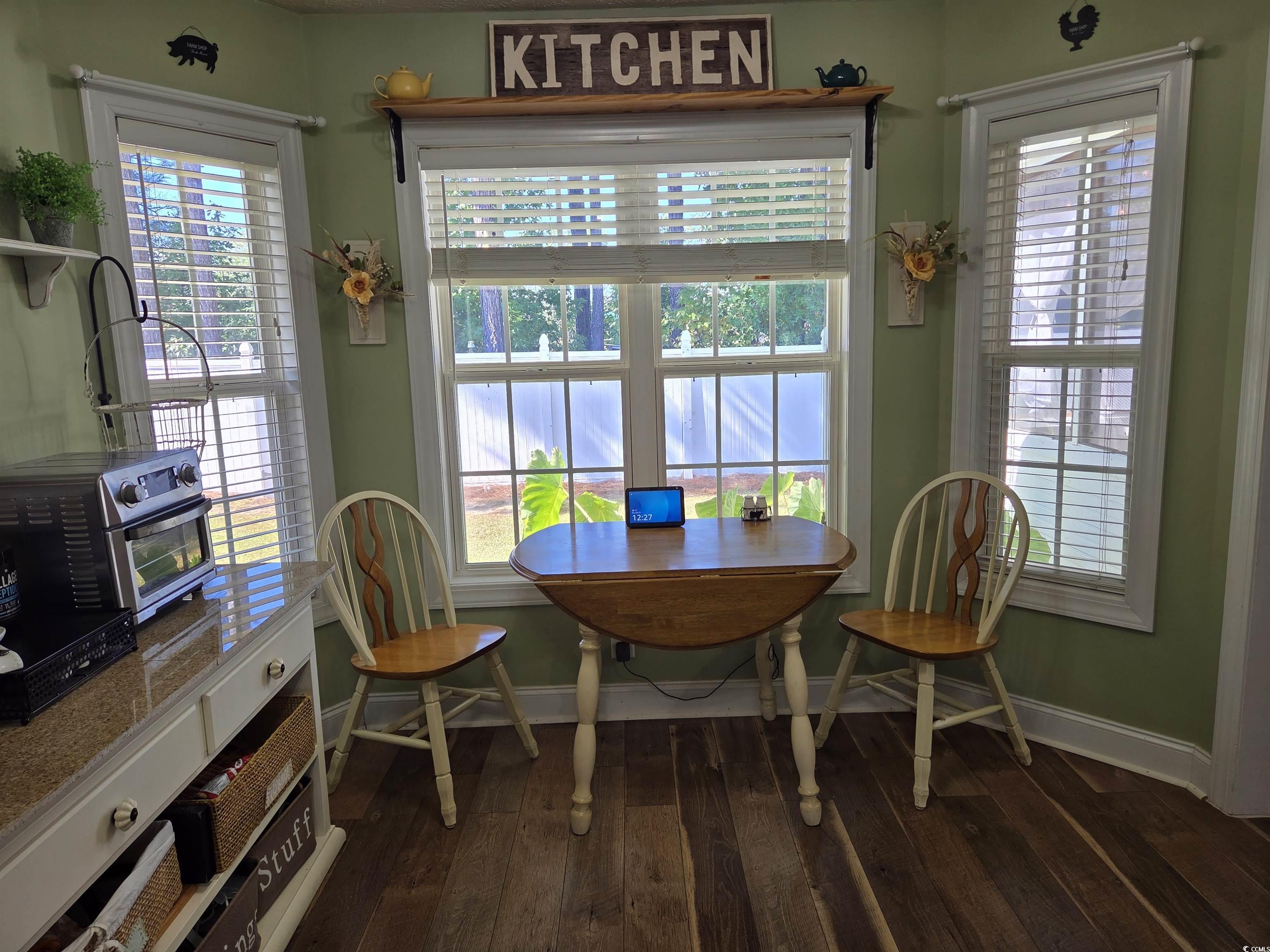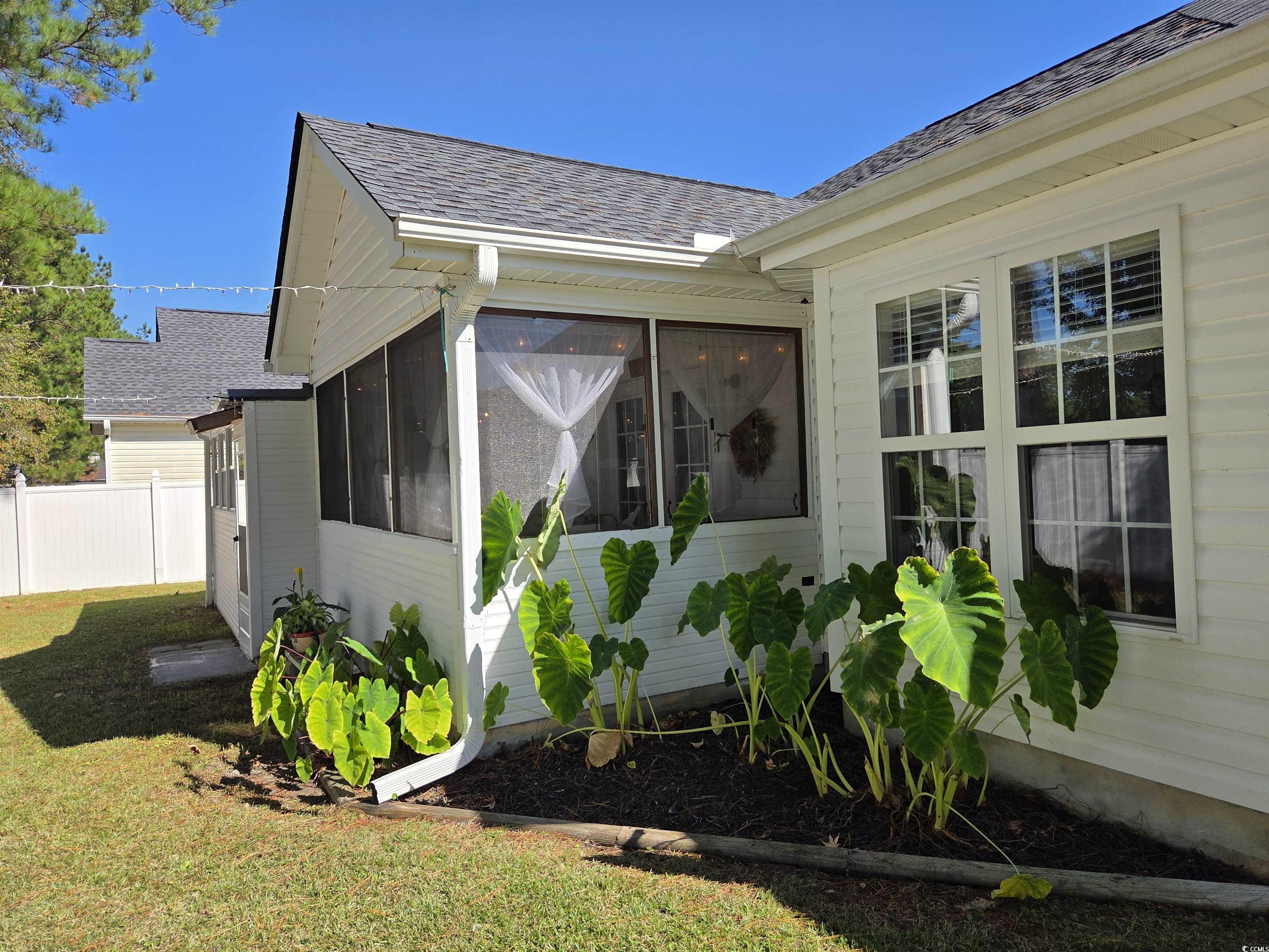 ***REDUCED PRICE!*** Cute as a dollhouse, meticulously maintained, ranch-style 3 bed/2 bath home, new roof in 2023 with transferrable warranty, so many custom design features throughout, vaulted ceilings, split bedroom floor plan, inviting front patio, and plenty of storage inside and out! Easy to maintain LVP flooring, no carpet! Wonderful entertaining home with formal dining room open to the Great Room and adjacent to the wide galley kitchen, complete with bay window breakfast area, granite counters, stainless steel appliances, and pantry. Enjoy the sunshine in the four seasons screen room with custom windows and extended den area for cozy evenings or peaceful mornings. Everywhere you turn there are unique farmhouse features like the brick wall in the living room, the custom wooden pantry door, the hallway shiplap wall, soothing paint colors, and beautiful light fixtures. The primary en suite features a jetted soaking tub, separate shower, two walk-in closets, double sinks, and linen closet. The guest side of the home has two large bedrooms that share a bathroom and two separate linen closets. The exterior of the home has an extra driveway pad for an RV, custom gated area for a small boat, 6 foot privacy fence, space behind the fence along the treeline perfect for a chicken coup and stacked firewood, and a detached storage shed for all your lawncare equipment. The garage has tons of storage cabinets for an organized workshop, utility sink, side service door, and pull down attic stairs with floored storage. The location is perfect being about 4 miles to the Historic Downtown Conway, less than 2 miles to grocery stores, about 7 miles to Coastal Carolina University/Horry Georgetown Technical College, and just 20 miles to the beautiful beaches of Myrtle Beach! Enjoy all the wonderful local restaurants, theater, shops, beautiful Riverwalk park, and marina nearby! The house is in a quiet neighborhood called Aquila Estates that is tucked back from the hustle and bustle with NO HOA! No monthly dues! Bring your RV, boat, or any hobbies without worrying about running out of space with about 2500 sq feet under roof and enough yard to enjoy South Carolina year-round nice weather! Ask about Special Financing options!