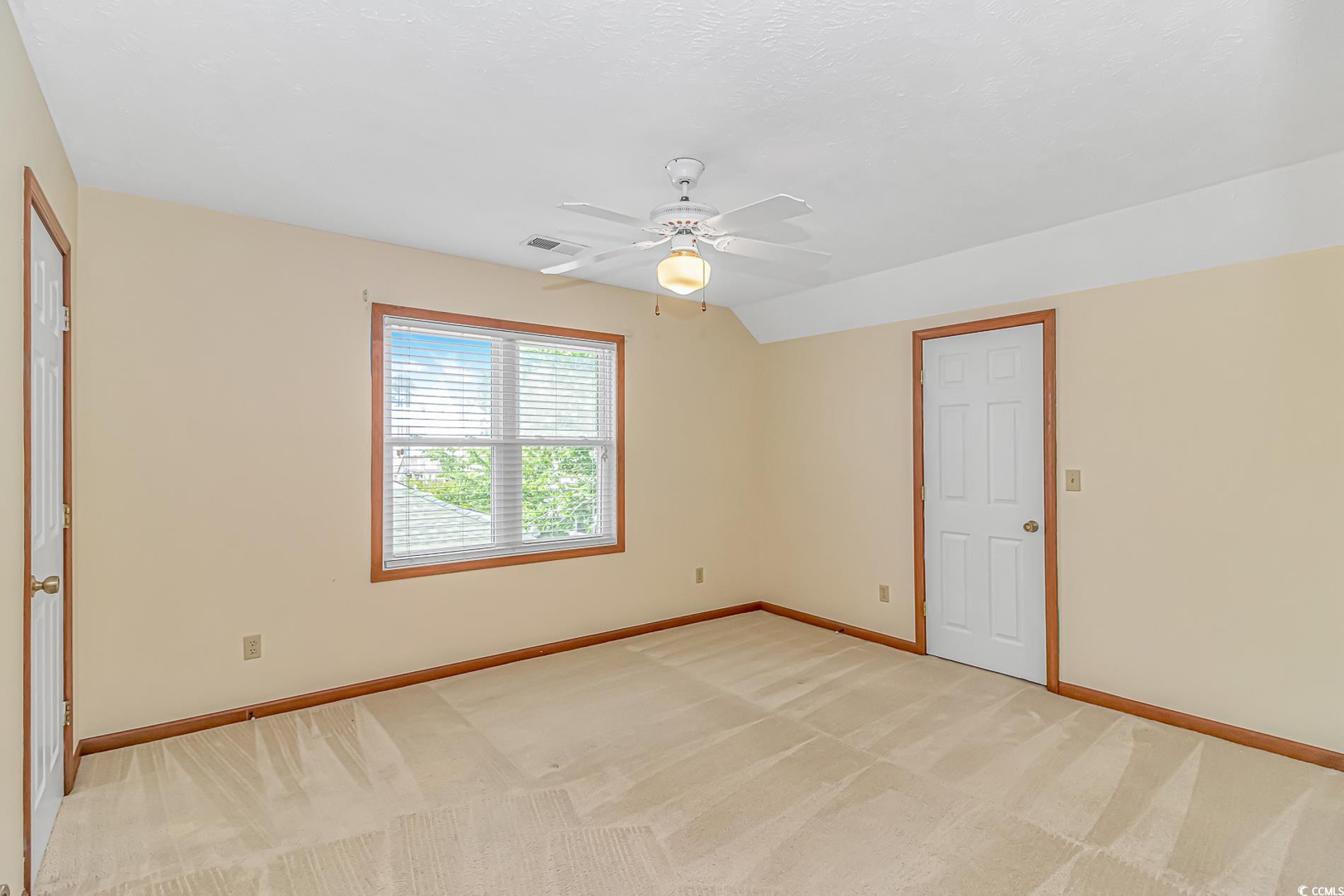 Location location location! In the Ocean Drive section of North Myrtle Beach, this home is near the ocean and all Main St has to offer. Excellent layout with the primary bedroom on the first floor. There's a mud room off the kitchen entrance that can be an extra storage area or an extension of the kitchen. The living room features a gas fireplace and flows into a dedicated dining space, and from there french doors lead you out to the inviting, bright sun room. Upstairs you'll find 2 additional bedrooms; both have generously sized walk in closets. There's another living space separating these bedrooms along with a full bath that completes the upstairs space. The private backyard features a 6 foot white privacy fence, an outdoor storage shed, and there's a parking space outside the mudroom for your golf cart. Be on Main St in just a minute! All this and the washer and dryer are included too! You can spend the day on the beach or at the community pool. Schedule your private showing today!
