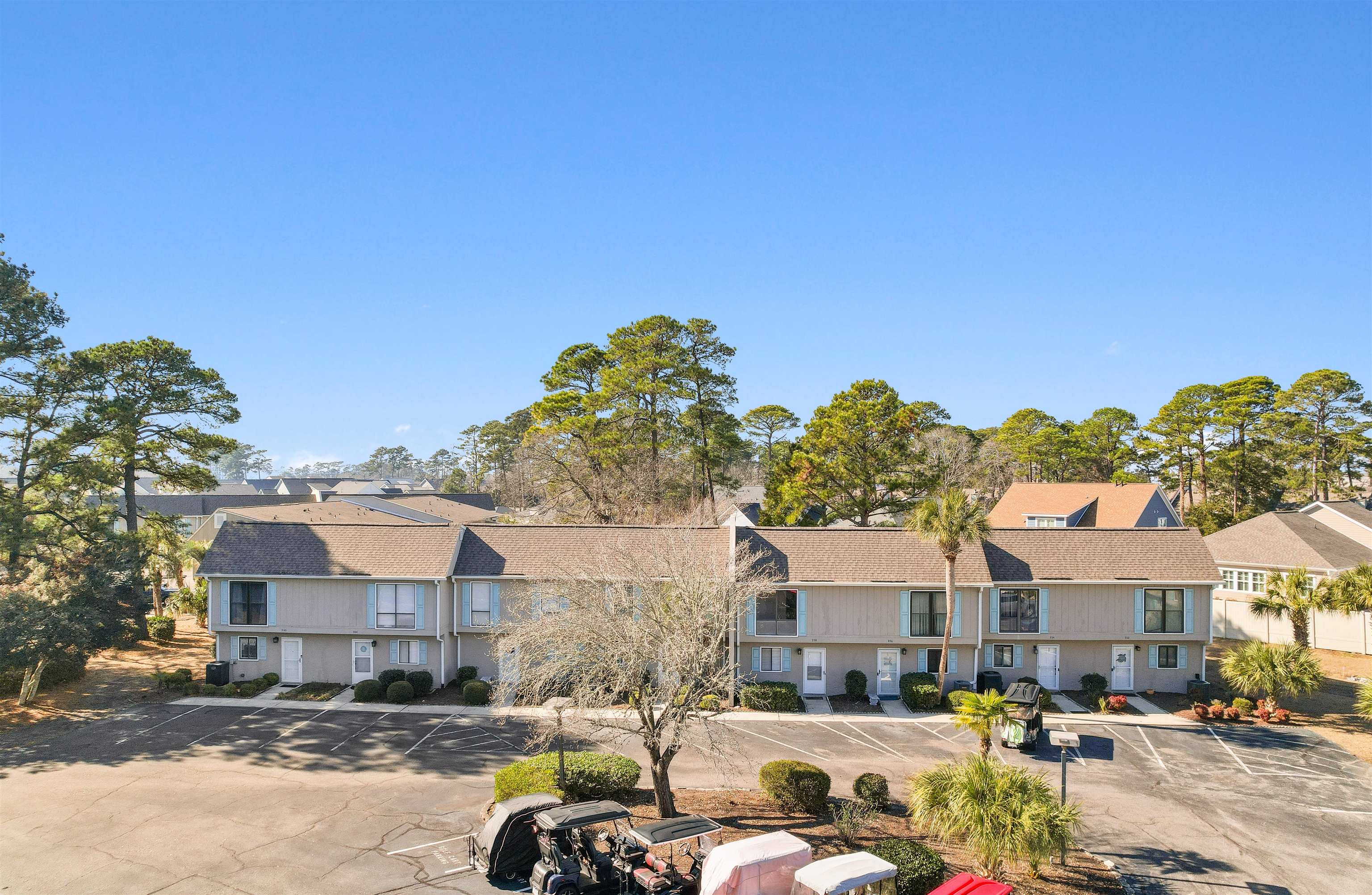 LOCATION, LOCATION, LOCATION. Move-in ready 2-level condo 1 mile from the beach. Both bedrooms (upstairs) have en suite bathrooms and ceiling fans. Half bath on 1st floor. New engineered flooring in foyer & kitchen. New HVAC system and water heater '21. Roof replaced 2016. Stainless steel appliances. Balcony has Trex flooring. Nice view from rear porch & balcony. View out front includes small grove of trees. Short golf-cart ride to Food Lion, CVS, Carrabba’s, Publix, Dick’s, Hobby Lobby, Home Goods, PetSmart and 12 eateries. Short car ride to Home Depot, Lowe’s, Walmart, Office Depot, FedEx Office, Kohl’s, Ledo Pizza and 5 mini-golf courses. Just 1 mi. to Kroger & the eateries & night spots on Main Street. Public boat ramp nearby. Many medical facilities within 1.5 mi.; 3 mi. to Seacoast Hospital.