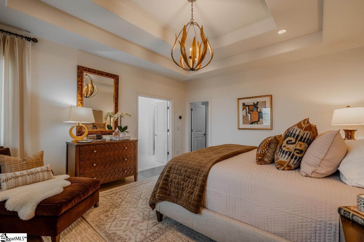 Discover the pinnacle of luxury mountain living at 94 Eagle Rock, a stunning home perched atop Glassy Mountain in the prestigious Cliffs at Glassy community. This custom-built residence offers 4,600 square feet of meticulously designed living space, featuring 4 bedroom Ritz Carlton level suites, 4.5 bathrooms, and breathtaking 75-mile panoramic views of the Blue Ridge Mountains visible from nearly every room. The heart of the home is the expansive great room, showcasing soaring vaulted wooden ceilings, a magnificent stacked stone gas fireplace with chic floating shelves and LED lighting, and stunning oak hardwood floors. The gourmet kitchen is a chef's dream, featuring custom alder wood cabinetry, quartzite countertops, a large island, high-end stainless-steel appliances including an industrial four-burner gas stove with griddle, a walk-in pantry, and a vented hood. The adjacent keeping room provides a cozy retreat with a fireplace and access to the grilling deck. The main-level master suite is a sanctuary of luxury, offering a spacious walk-in closet, trey ceilings, and an opulent totally renovated ensuite bathroom with dual vanities, quartzite countertops, porcelain sinks, a soaking tub, and a separate tiled walk-in shower. All bathrooms have been updated with designer finishes by the current owner. The lower level provides exceptional accommodations for family and guests, with three generously sized ensuite bedrooms. One is a second primary suite, while another features a luxurious steam shower. A newly added third guest suite includes a private bath, substantial closet, beverage center, and direct access to a private deck. This level also features a recreation room with a wet bar, perfect for entertaining. Outdoor living is equally impressive, with an expansive, partially covered deck stretching the length of the house. An outdoor kitchen with a built-in grill and Big Green Egg smoker makes al fresco dining a delight. The lower-level deck leads to a private hot tub, a serene meditation garden, and a grassy, fenced-in backyard. The property is beautifully landscaped with meticulously maintained gardens throughout. A bonus room above the garage provides an ideal space for a home office or hobby room. Additional features include custom metal and copper railings on the stairway, a tankless water heater with a recirculating pump, and ample walk-in closets and storage throughout. Living at the cliffs at glassy offers access to world-class amenities, including seven award-winning golf courses, seven clubhouses, state-of-the-art wellness centers, restaurants, lakes, trails, tennis, pickleball, swimming, and an equestrian center. The community is conveniently located just 30 minutes from Greenville, SC, and 1 hour from Asheville, NC. This is a rare opportunity to own a truly exceptional mountain home in one of the Southeast's most desirable communities.