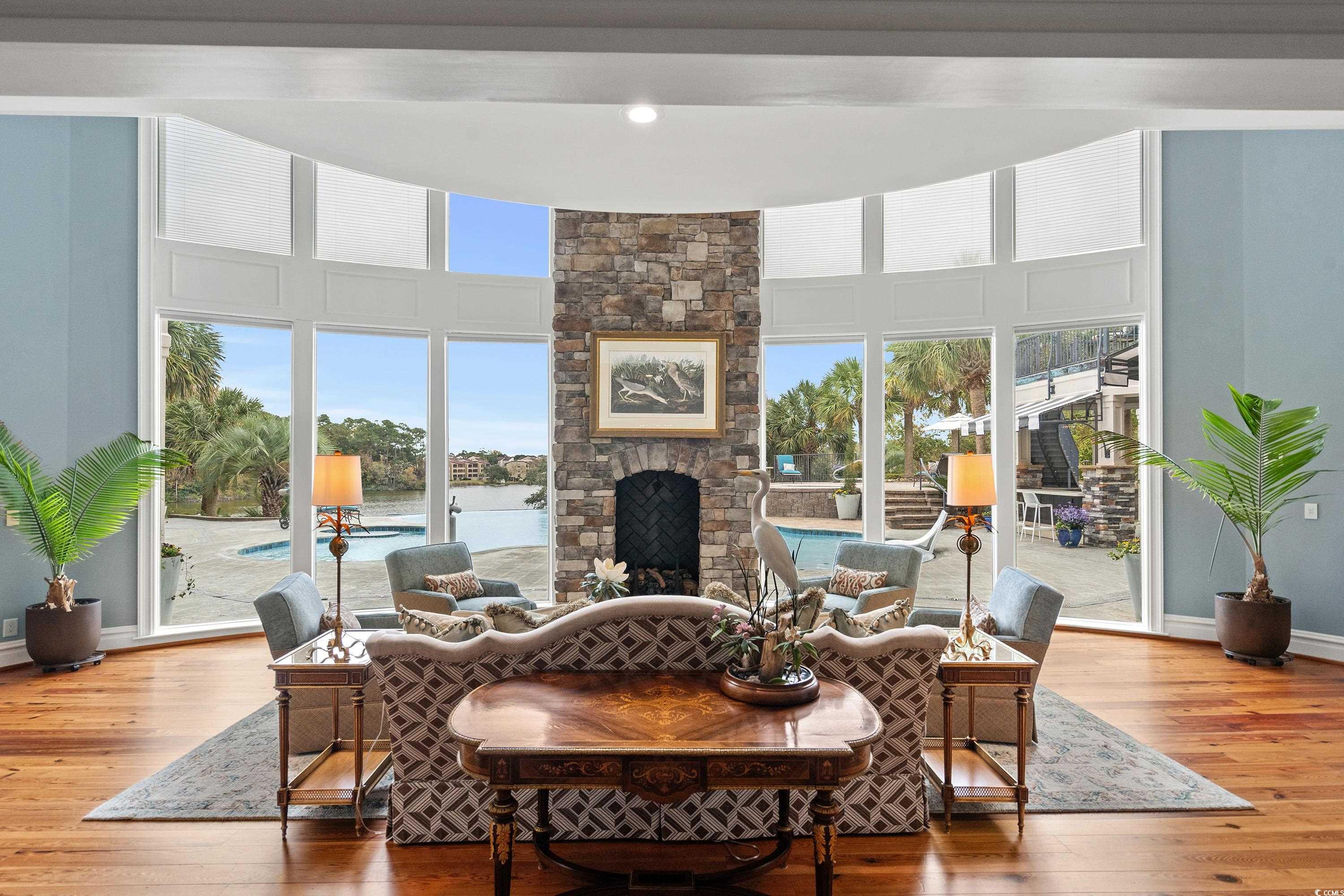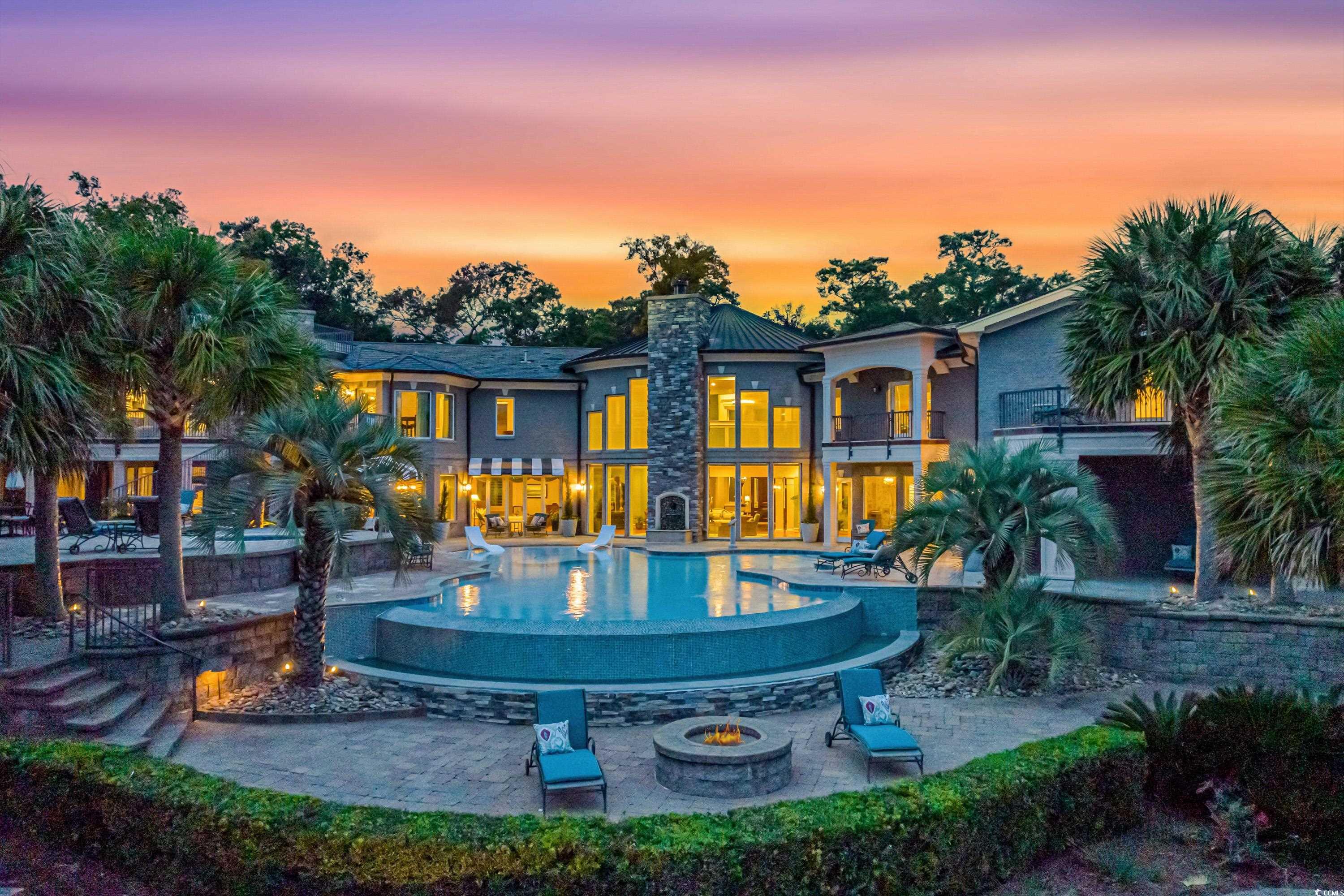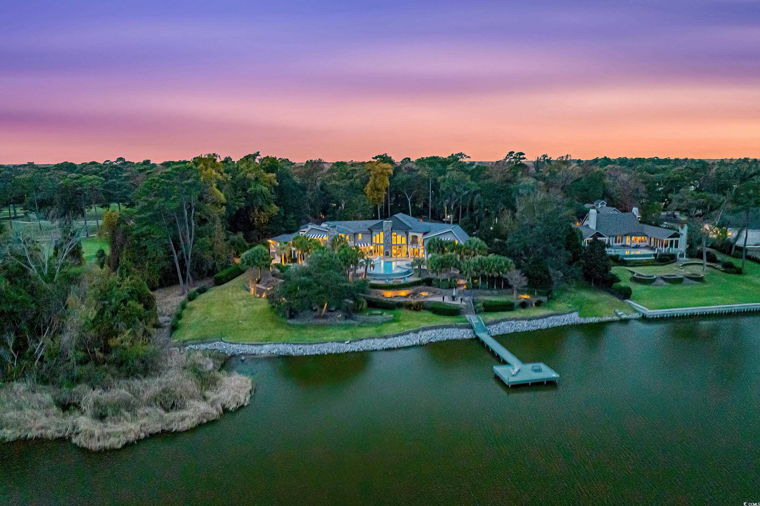 Welcome to 9400 Lake Dr—One of the most coveted residences in all of Myrtle Beach, located within the renowned Dunes area. Perfectly positioned between Dunes Lake and the historic 13th green of the prestigious Dunes Golf and Beach Club. This 3 acre, gated retreat offers unmatched privacy, luxury and elegance. You’re not just buying this home for yourself. This FAMILY residence will be a multigenerational home that will become part of the family legacy you’ve dreamt about. As you enter through the stately gates, you’re greeted by a park-like setting of lush gardens, towering old-growth trees, and a winding drive that leads to the grand porte-cochère entrance. At the heart of the estate lies the main residence, complemented by two fully equipped guest homes—totaling over 9,900 square feet of living space, all designed with timeless sophistication and custom finishes throughout. The main home welcomes you with a dramatic foyer that opens into expansive living areas, flooded with natural light and panoramic views of the lake. The spacious layout is perfect for entertaining, with soaring ceilings, a formal living room, a fireside family room, and a chef’s kitchen that’s the heart of the home. Just off the kitchen, enjoy year-round outdoor living in the four-season porch, complete with an outdoor kitchen and fireplace. Additional features on the main level include a custom mahogany-paneled study, movie theater, game room, and two guest suites with private baths. Multiple access points connect the home to the resort-style pool, expansive patios, and terraced gardens that overlook the lake. Upstairs, you’ll find two luxurious primary bedroom suites—each with spa-like ensuite baths, generous walk-in closets, and private balconies with sweeping lake views. One balcony features a spiral staircase leading to a rooftop observation deck with rare, unobstructed views of the lake, and golf course — an ideal spot for stargazing or morning coffee. The upper level also offers a billiards room and a home gym, which can easily convert to an additional bedroom if needed. Two detached guest cottages provide private accommodations for extended family or guests, ensuring everyone enjoys the comfort and privacy they deserve. Outdoors, the lifestyle is pure resort living: a sparkling pool and spa, a synthetic putting and chipping green, and 300 feet of lakefront complete with a stone seawall and fishing dock for enjoying the serene 50-acre Dunes Lake. This rare offering is a true legacy property—where classic architecture, natural beauty, and thoughtful design converge. Homes of this caliber in The Dunes rarely come to market. Shown by private appointment only.?(Seller is a licensed Broker in the state of South Carolina.)