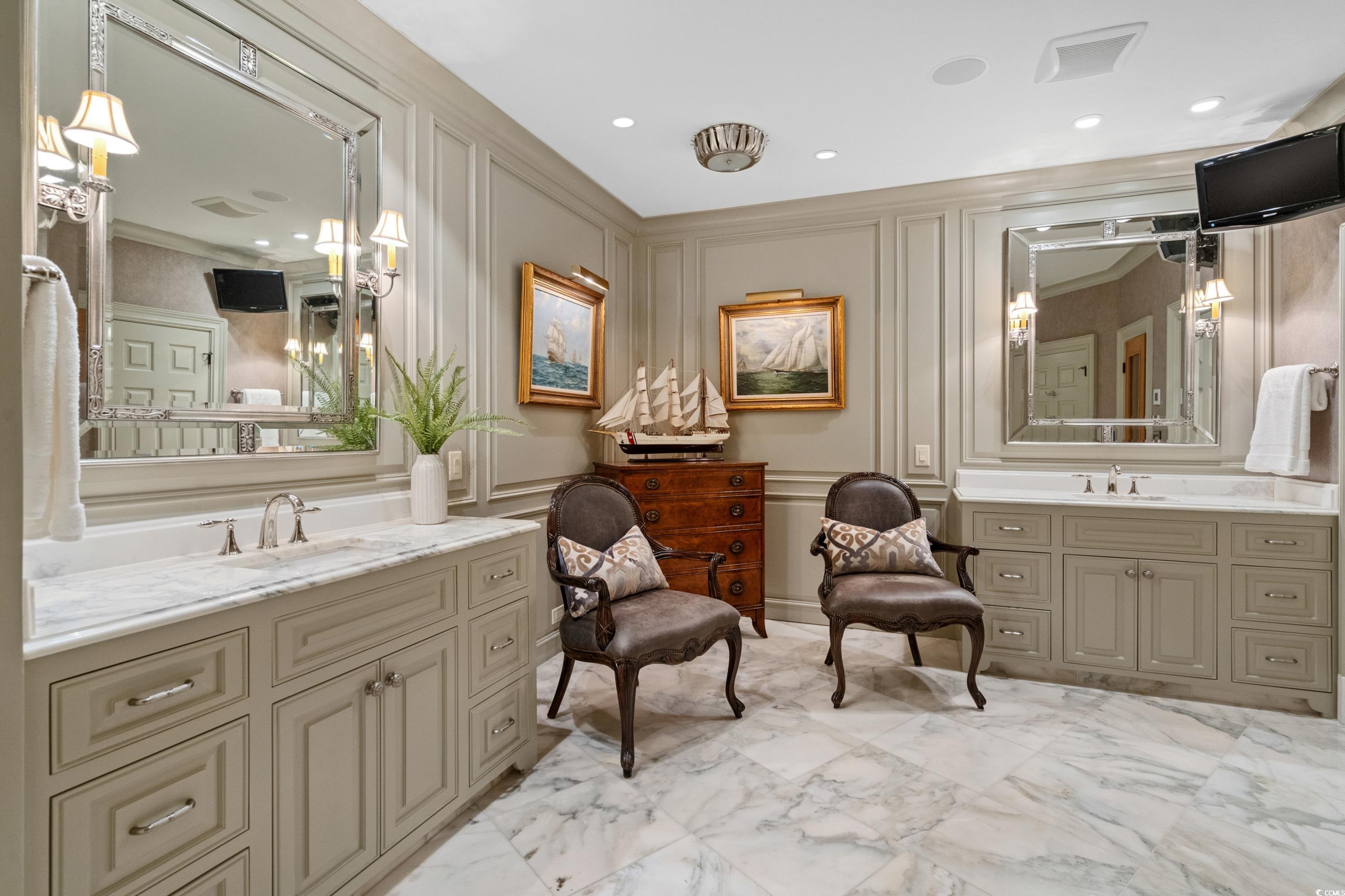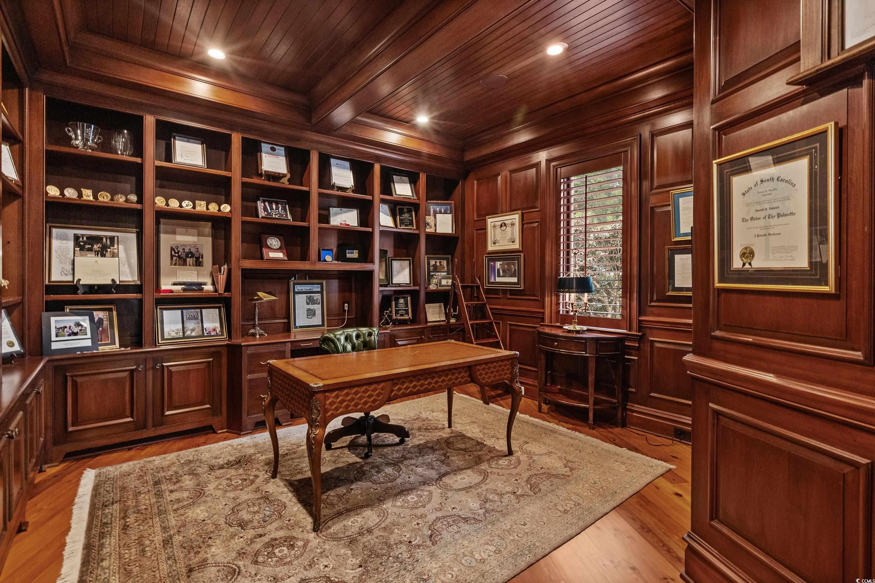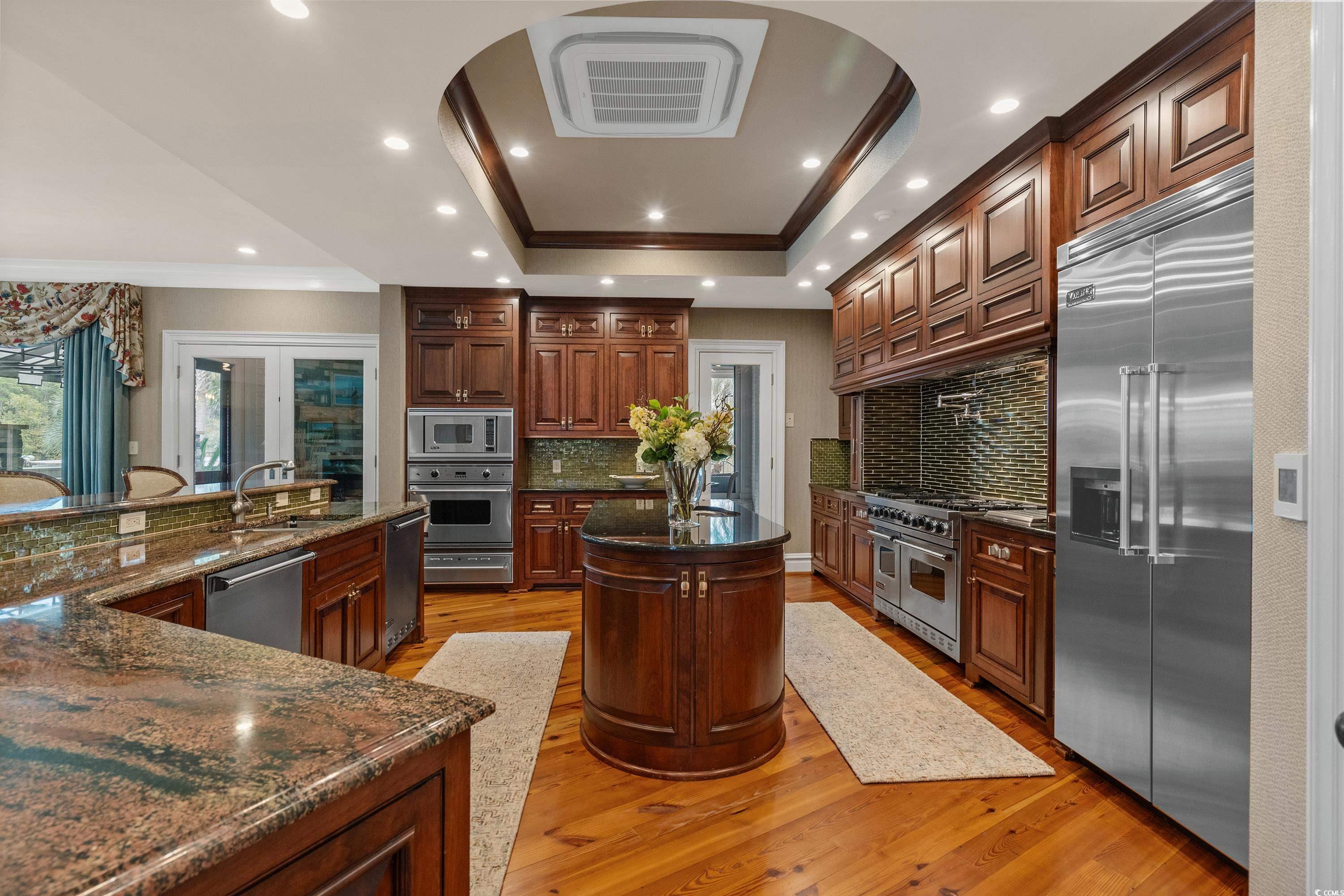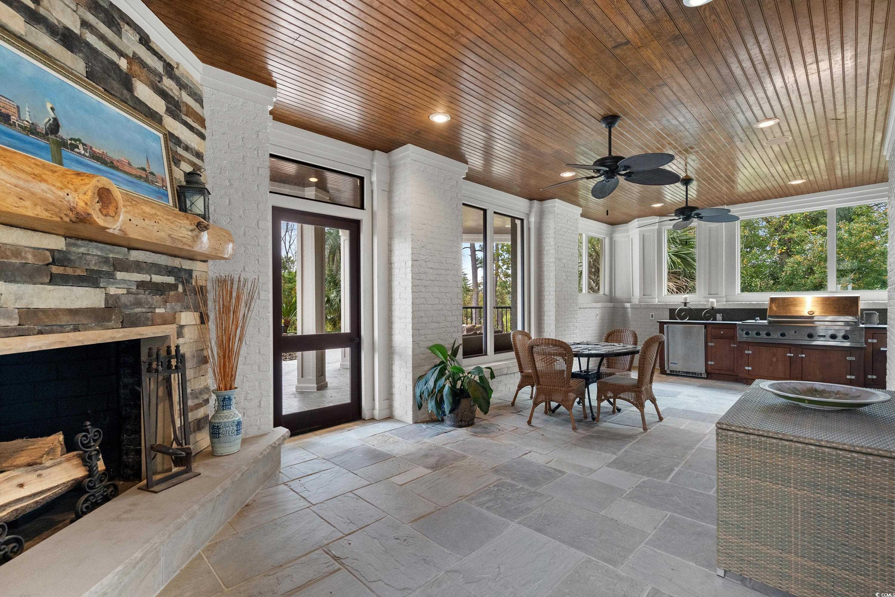 Welcome to 9400 Lake Dr—One of the most coveted residences in all of Myrtle Beach, located within the renowned Dunes area. Perfectly positioned between Dunes Lake and the historic 13th green of the prestigious Dunes Golf and Beach Club. This 3 acre, gated retreat offers unmatched privacy, luxury and elegance. You’re not just buying this home for yourself. This FAMILY residence will be a multigenerational home that will become part of the family legacy you’ve dreamt about. As you enter through the stately gates, you’re greeted by a park-like setting of lush gardens, towering old-growth trees, and a winding drive that leads to the grand porte-cochère entrance. At the heart of the estate lies the main residence, complemented by two fully equipped guest homes—totaling over 9,900 square feet of living space, all designed with timeless sophistication and custom finishes throughout. The main home welcomes you with a dramatic foyer that opens into expansive living areas, flooded with natural light and panoramic views of the lake. The spacious layout is perfect for entertaining, with soaring ceilings, a formal living room, a fireside family room, and a chef’s kitchen that’s the heart of the home. Just off the kitchen, enjoy year-round outdoor living in the four-season porch, complete with an outdoor kitchen and fireplace. Additional features on the main level include a custom mahogany-paneled study, movie theater, game room, and two guest suites with private baths. Multiple access points connect the home to the resort-style pool, expansive patios, and terraced gardens that overlook the lake. Upstairs, you’ll find two luxurious primary bedroom suites—each with spa-like ensuite baths, generous walk-in closets, and private balconies with sweeping lake views. One balcony features a spiral staircase leading to a rooftop observation deck with rare, unobstructed views of the lake, and golf course — an ideal spot for stargazing or morning coffee. The upper level also offers a billiards room and a home gym, which can easily convert to an additional bedroom if needed. Two detached guest cottages provide private accommodations for extended family or guests, ensuring everyone enjoys the comfort and privacy they deserve. Outdoors, the lifestyle is pure resort living: a sparkling pool and spa, a synthetic putting and chipping green, and 300 feet of lakefront complete with a stone seawall and fishing dock for enjoying the serene 50-acre Dunes Lake. This rare offering is a true legacy property—where classic architecture, natural beauty, and thoughtful design converge. Homes of this caliber in The Dunes rarely come to market. Shown by private appointment only.?(Seller is a licensed Broker in the state of South Carolina.)