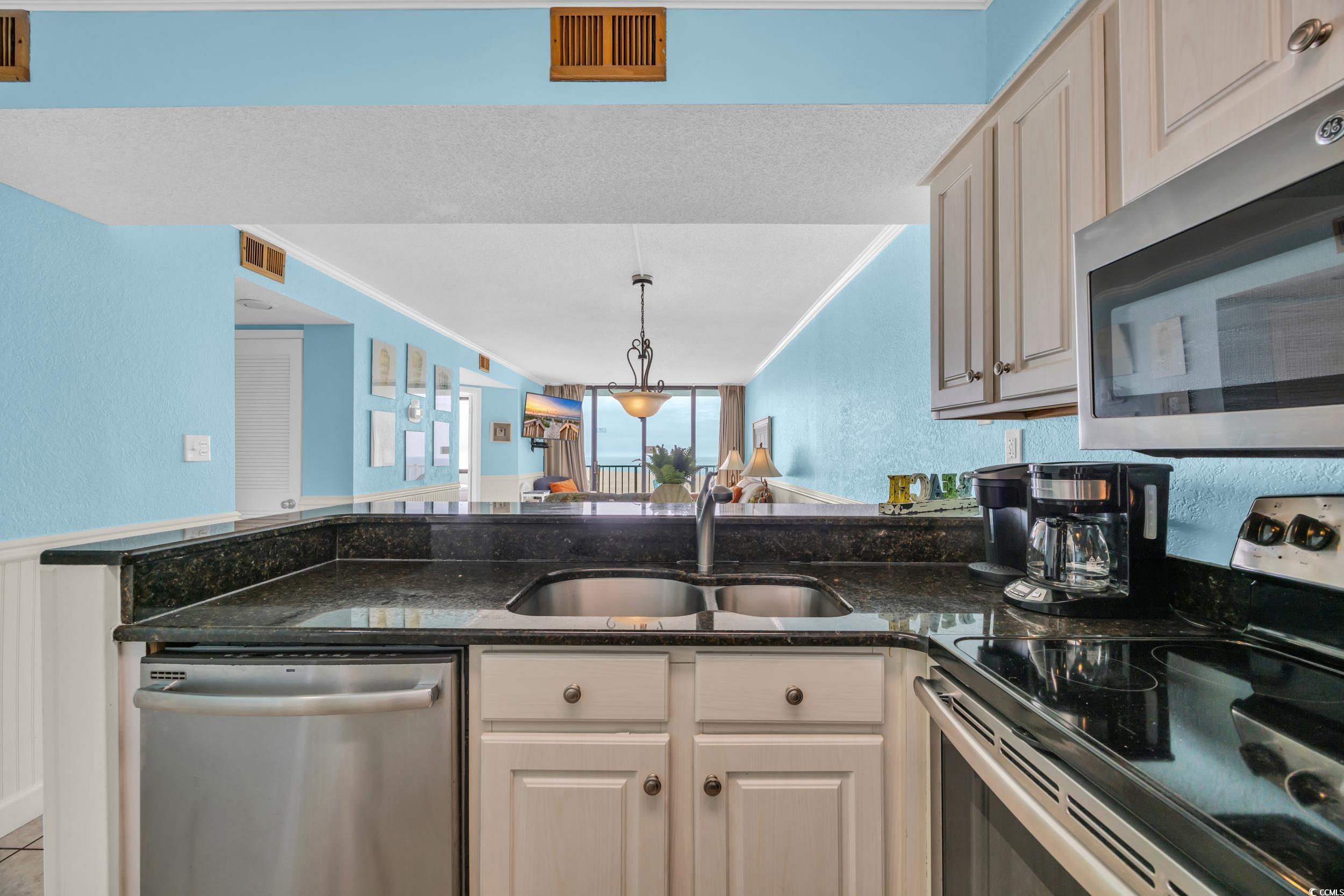 PRICED TO SELL. Motivated seller! Welcome to your dream coastal getaway! This oceanfront 2-bedroom, 2-bathroom condo offers the perfect blend of comfort, style, and unbeatable views. Wake up each morning to the sight and sound of the waves from the primary bedroom, where both windows frame the endless blue of the Atlantic. Step onto your private balcony and soak in the breathtaking sunrise or unwind with the salty breeze in the afternoon sun. Inside, the condo is tastefully decorated and comes fully furnished, making it completely turnkey—ideal for personal use or as a high-demand rental. The kitchen shines with sleek black granite countertops and stainless steel appliances, perfect for preparing meals before a day on the beach. The spacious layout includes a sleeper sofa and multiple bed sizes (twin, full, and king), easily accommodating family, friends, or vacationers. A rare find in this building, this unit also features an in-unit washer and dryer—an added convenience that most other units don’t have. No need to haul laundry elsewhere—just another way this condo makes beachside living easy. As part of the highly desirable Sands Beach Club, you’ll enjoy resort-style amenities, including: Direct beach access, tennis & basketball courts, fitness center, on-site restaurant & lounge, indoor & outdoor pools. Located in the popular Shore Drive area, this condo puts you just minutes from Tanger Outlets, Barefoot Landing, Broadway at the Beach, Market Common, and Myrtle Beach Grand Mall. Love live music and oceanfront fun? The legendary Ocean Annie’s Beach Bar is right next door! For top-notch entertainment, The Alabama Theatre and The Carolina Opry are just a short drive away. And when it comes to dining, you’ll have an endless selection of restaurants to explore. Whether you're searching for a low-maintenance vacation home, an income-generating rental, or a personal retreat by the ocean, this move-in-ready condo delivers it all. Don't miss your chance to own a piece of paradise!