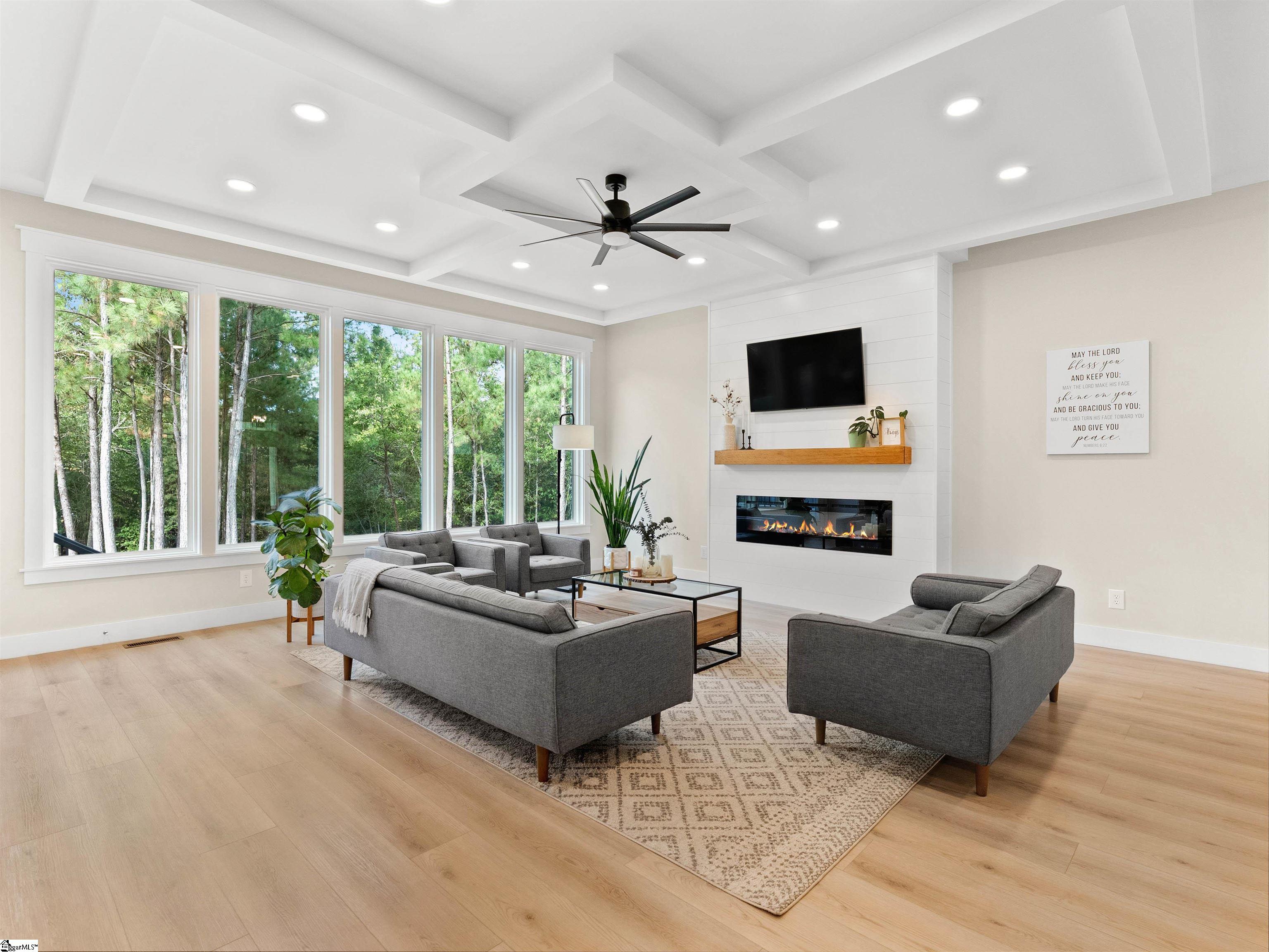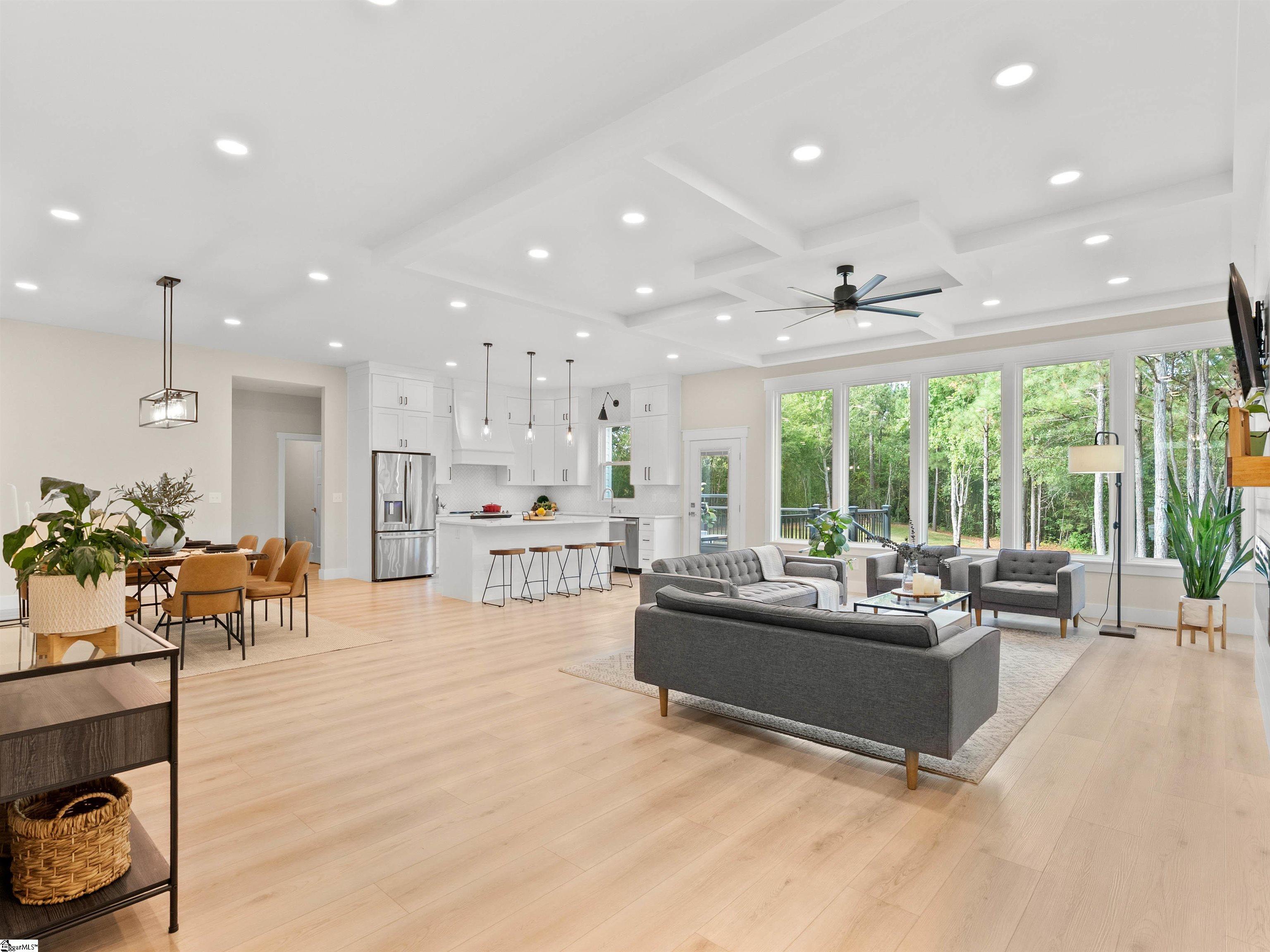 Welcome to your private country retreat just minutes from Lake Blalock. Nestled among orchards on 2.02 acres, this stunning 4-bedroom, 3-bath custom Craftsman home perfectly balances modern elegance with serene country charm. Step inside to find an open and inviting floor plan filled with natural light from large picture windows overlooking the wooded backdrop. The kitchen is the heart of the home, featuring upgraded quartz countertops, an oversized island with seating for four, a beautiful tile backsplash, and stainless steel appliances—all open to the dining and living areas for effortless entertaining. The living room’s coffered ceiling and rich details add a touch of sophistication, while luxury vinyl plank flooring carries throughout the main living spaces. A dedicated office and large walk-in storage closet offer versatility for work or hobbies. The spacious laundry room mirrors the kitchen’s upscale finishes with quartz counters, cabinetry, and a deep sink for added convenience. Outside, relax on the covered front porch or unwind on the back deck while soaking in the peace of your park-like surroundings. The home sits well back from the road, surrounded by mature trees and thoughtful landscaping that ensure both beauty and privacy. Whether you’re seeking a modern family home with land or a quiet countryside escape, 950 Robbins Rd offers the best of both worlds.