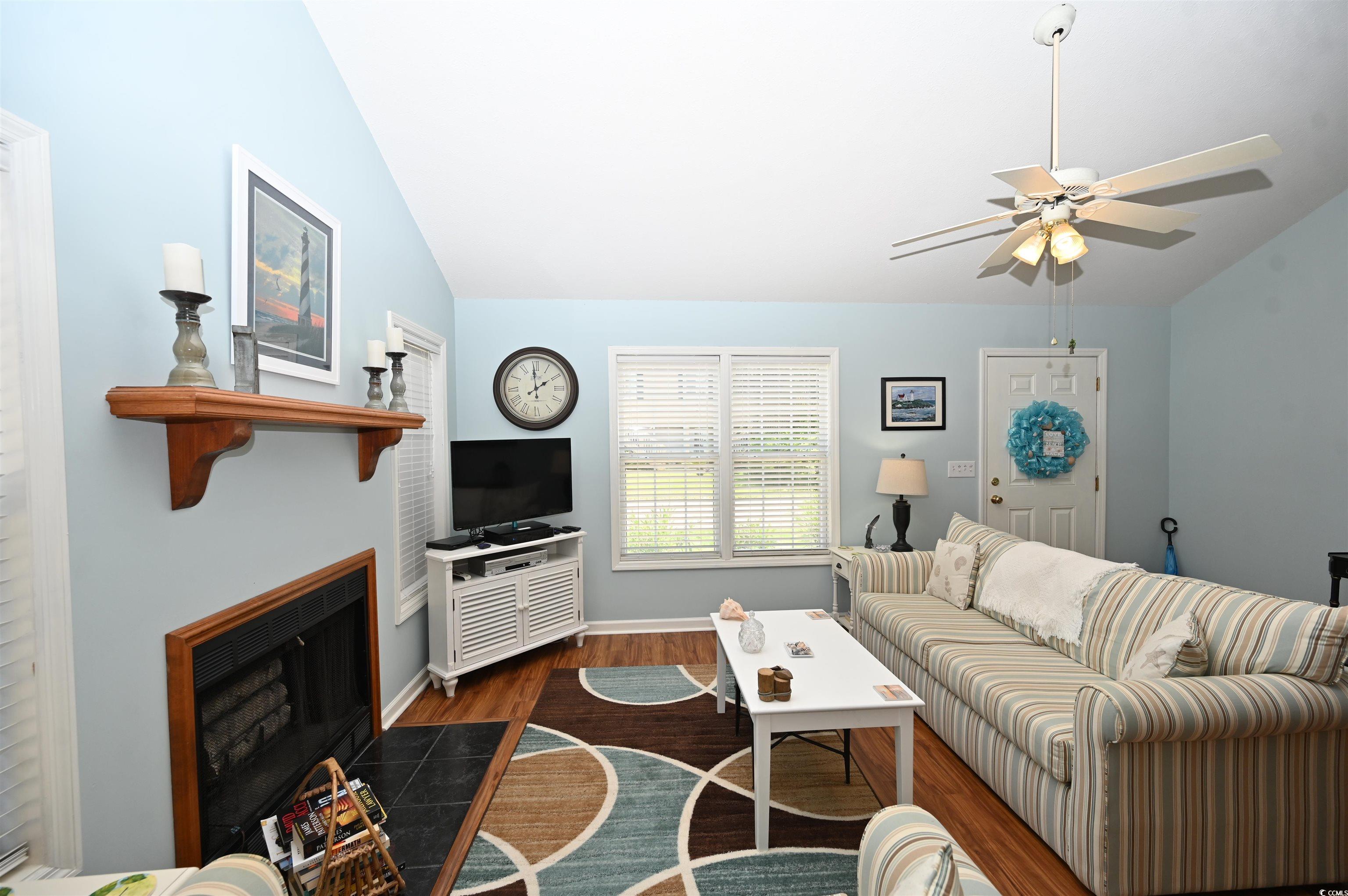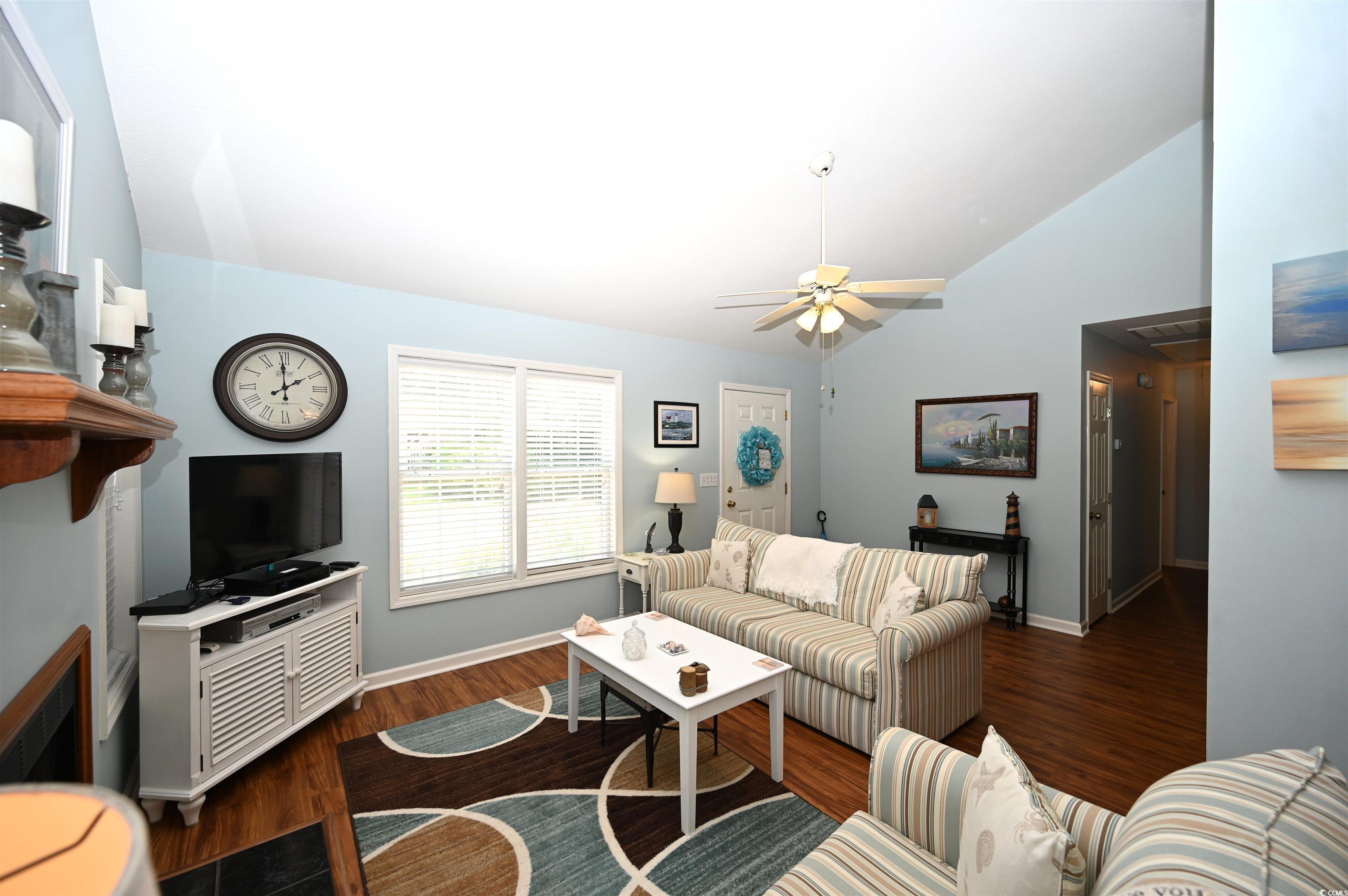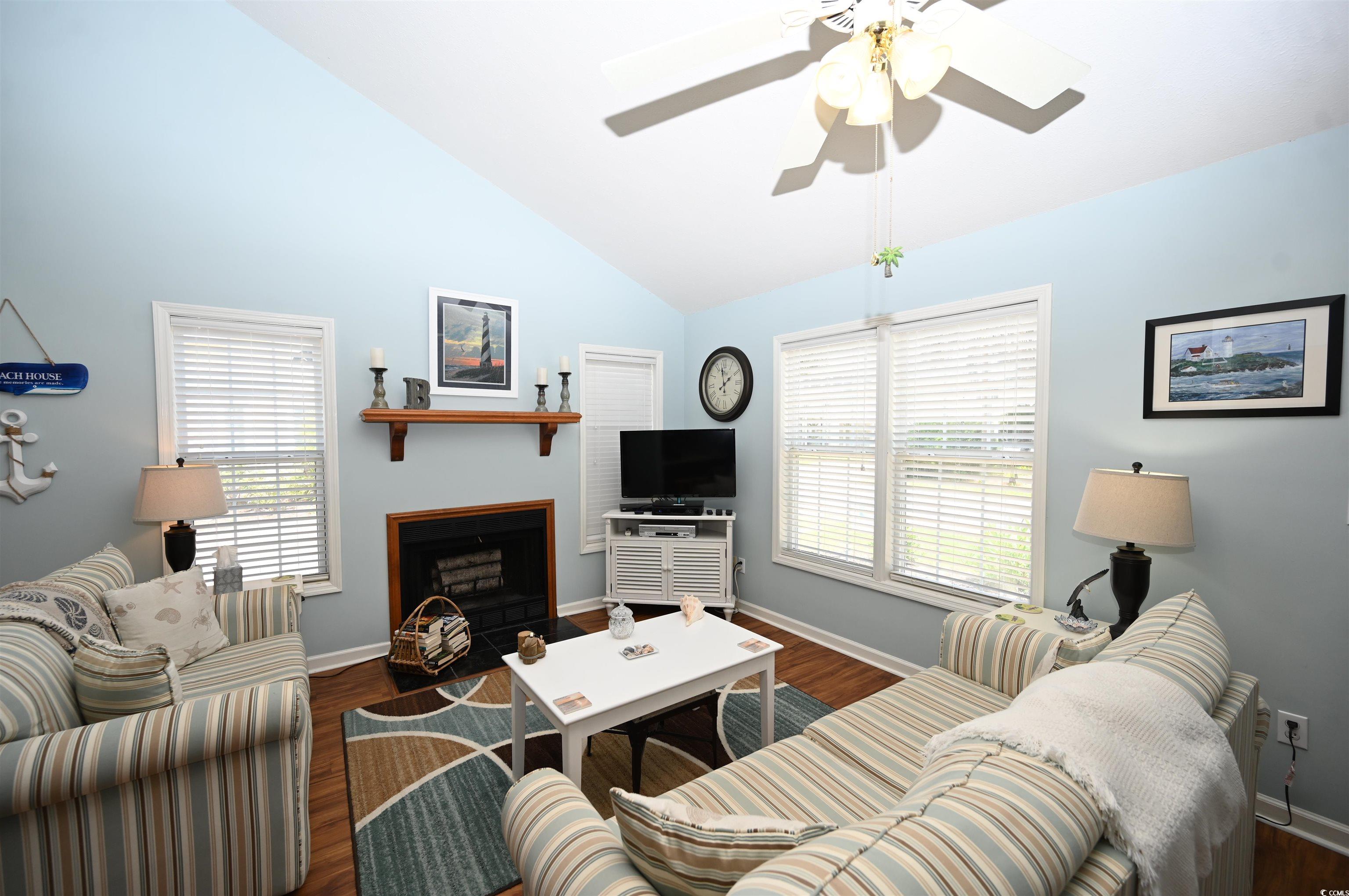 Cute as a Button Beach Retreat! Talk about the ultimate summer package all wrapped up in one perfect deal! This fully furnished two bedroom, two full bathrooms and one half bathroom, home is just minutes from the beach (estimated at 3 minutes!), and it’s ready for you to move in and start enjoying coastal living right away. The spacious living room features stunning high ceilings and a cozy fireplace, creating an inviting atmosphere for relaxing or entertaining. Outside, you’ll find a convenient attached storage closet, perfect for your beach gear and more. As an added bonus, this home includes an electric golf cart, making beach trips and neighborhood cruising a breeze. The low HOA dues and access to a community pool. Buyer is responsible for verifying all measurements.