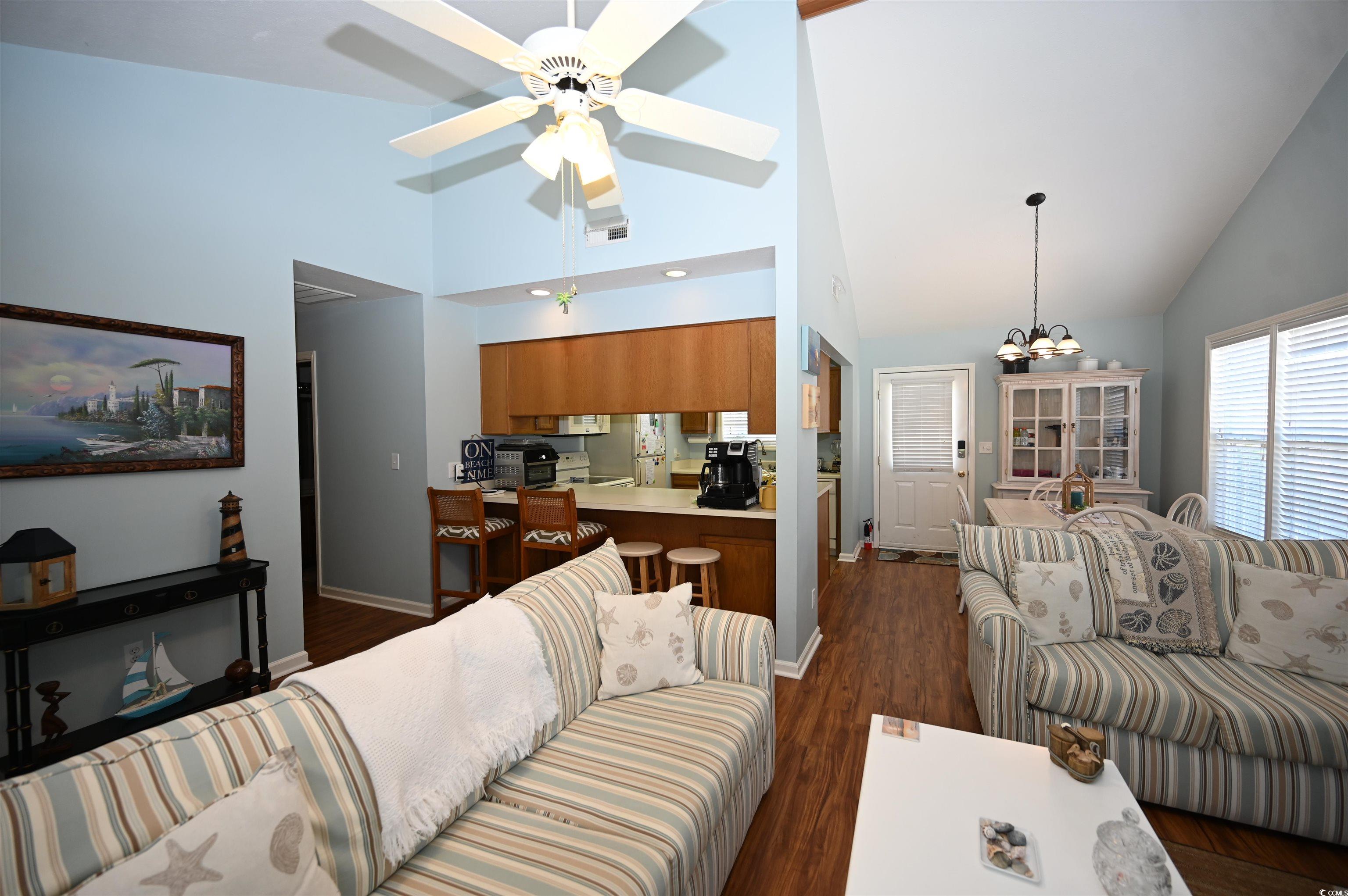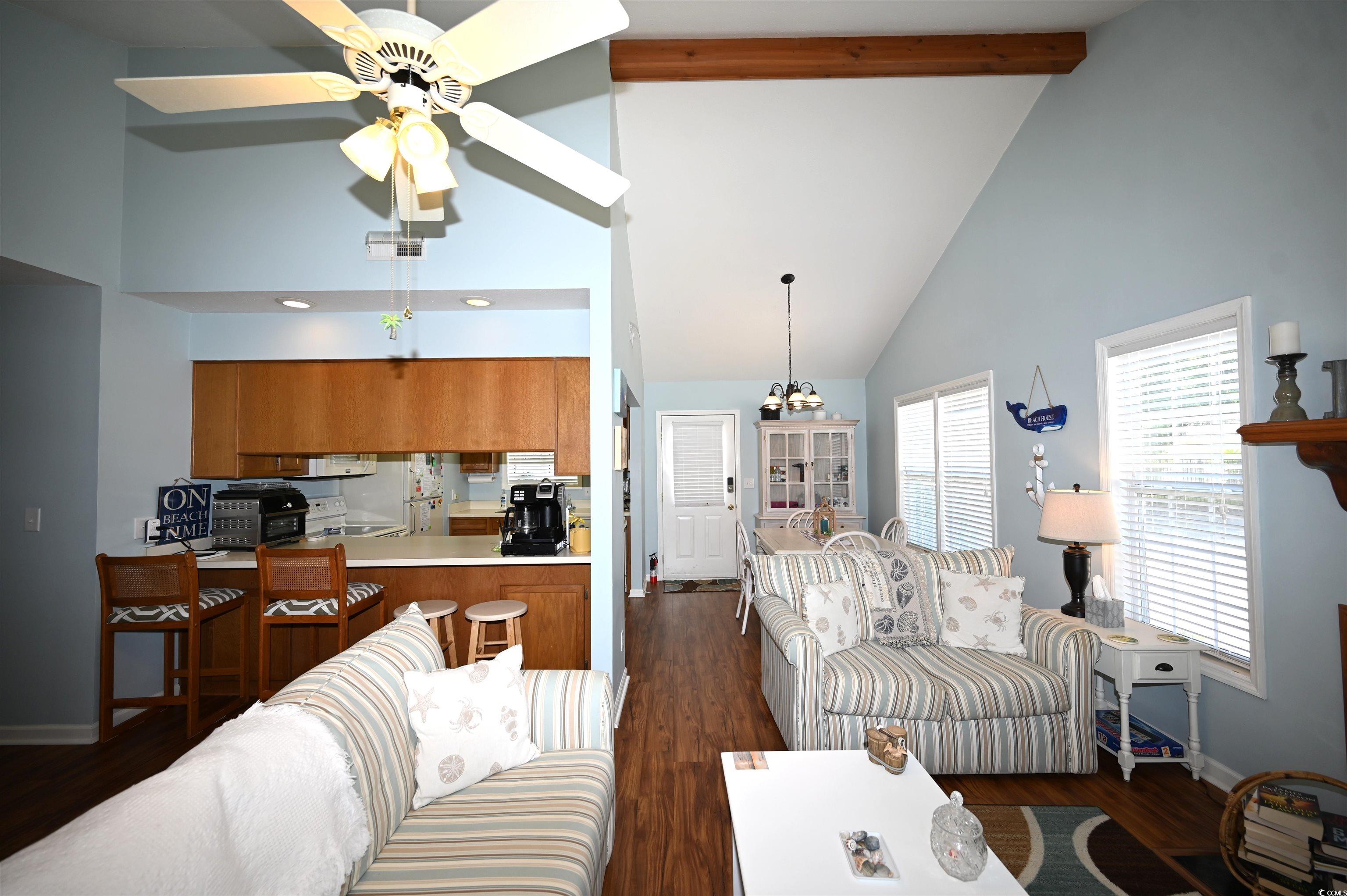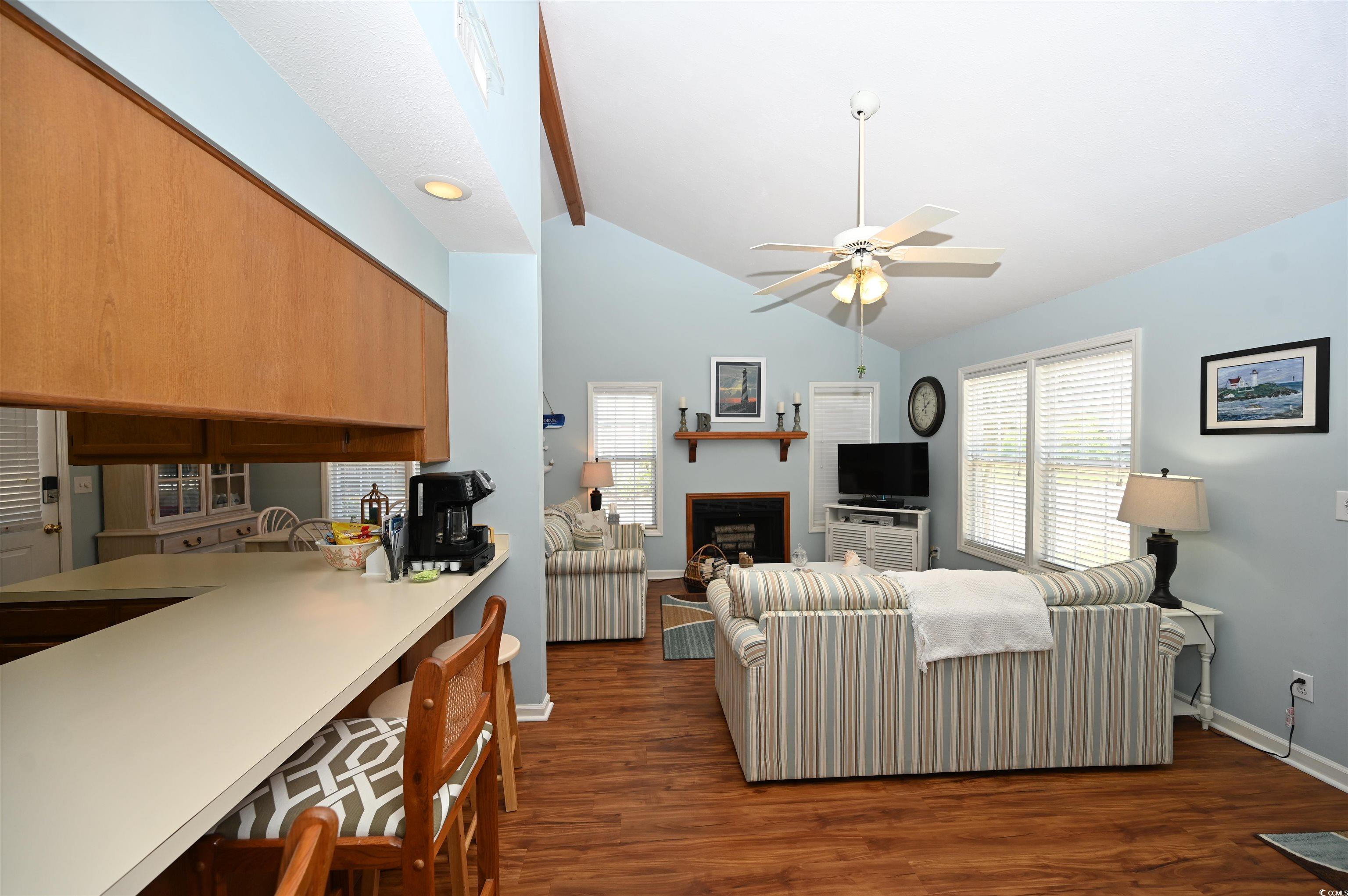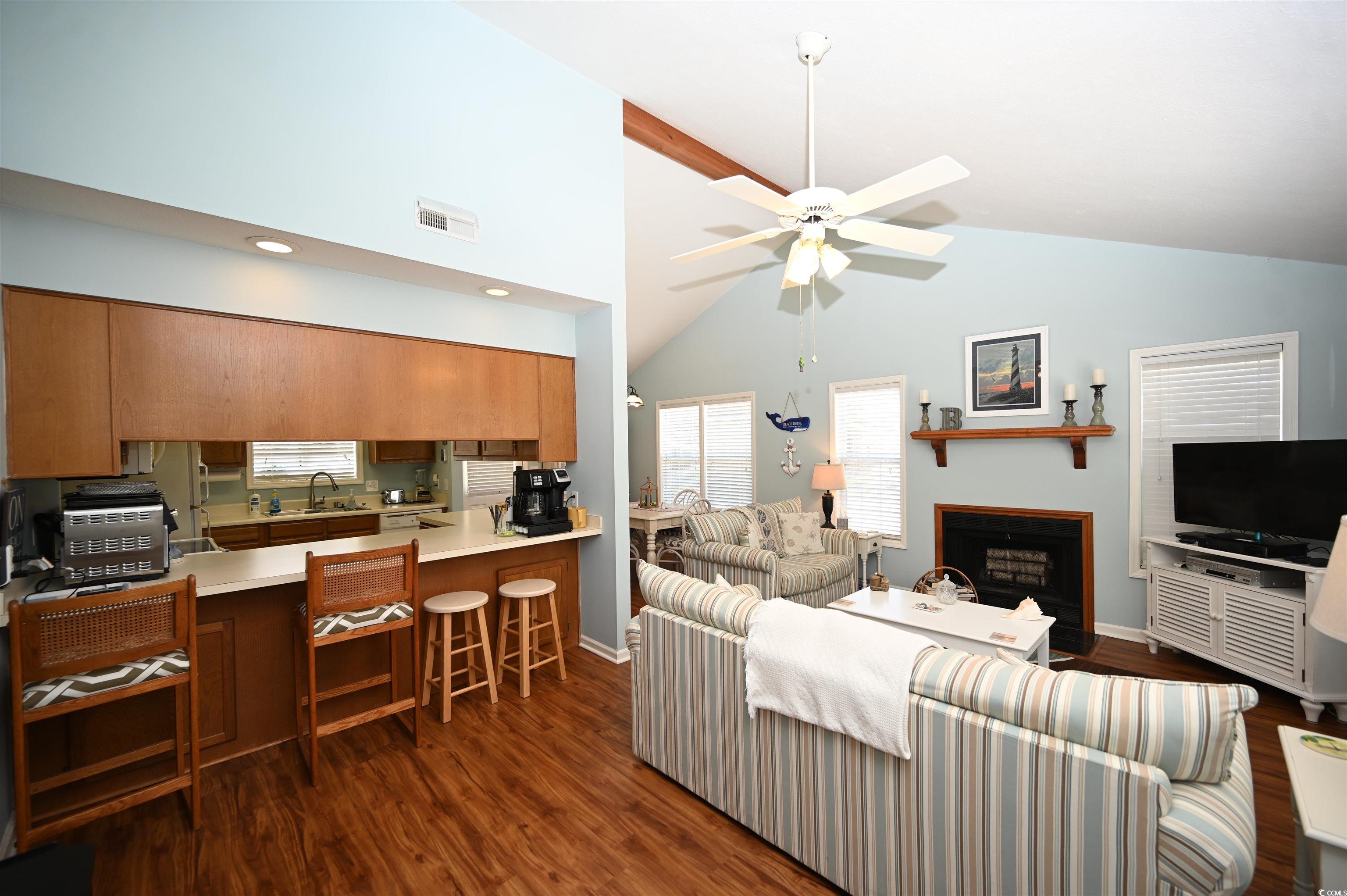 Cute as a Button Beach Retreat! Talk about the ultimate summer package all wrapped up in one perfect deal! This fully furnished two bedroom, two full bathrooms and one half bathroom, home is just minutes from the beach (estimated at 3 minutes!), and it’s ready for you to move in and start enjoying coastal living right away. The spacious living room features stunning high ceilings and a cozy fireplace, creating an inviting atmosphere for relaxing or entertaining. Outside, you’ll find a convenient attached storage closet, perfect for your beach gear and more. As an added bonus, this home includes an electric golf cart, making beach trips and neighborhood cruising a breeze. The low HOA dues and access to a community pool. Buyer is responsible for verifying all measurements.