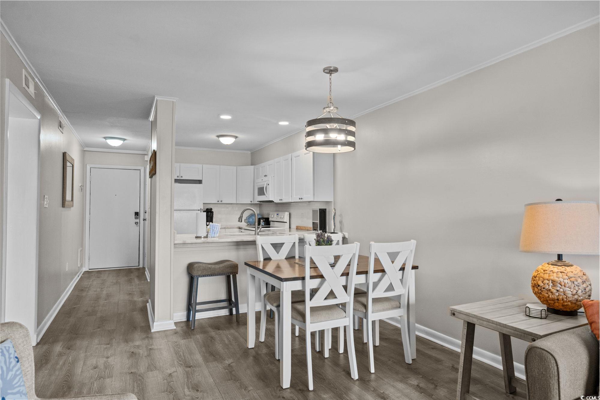 Designer condo featuring 2 bedrooms and 2 full baths, your own private balcony overlooking the marsh and golf course, located less than one block from the ocean in the desirable Mariners Cove development. Clubhouse and outdoor pool for your enjoyment. The completely updated condo offers a warm and inviting feel with its open floor plan, abundant natural light, enjoying stunning marsh and sunset views, as well as views of one of the most sought-after private clubs, the Dunes Beach Club—currently hosting the PGA tournament. Offered fully furnished, this exceptional condo is perfect as a primary residence, second home, or investment property.