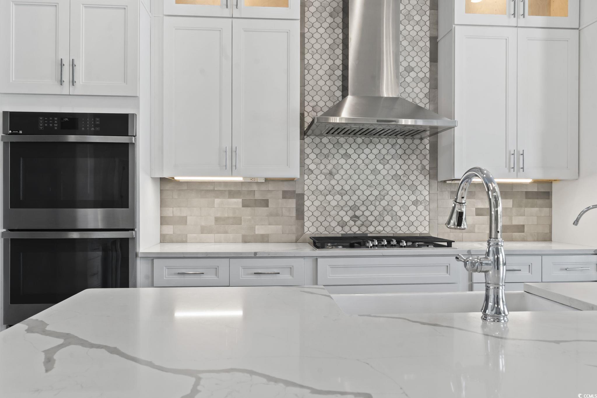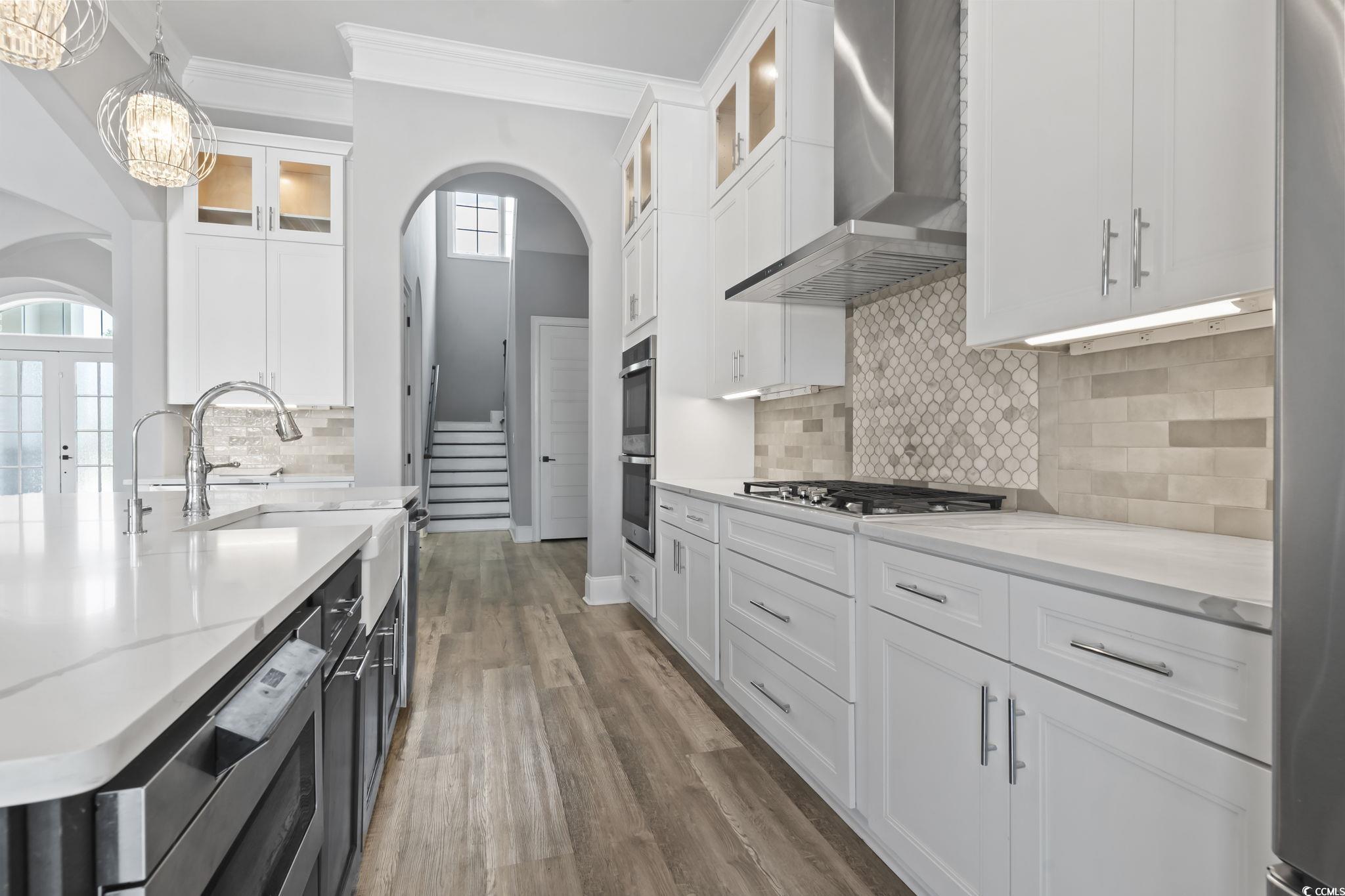 You finally found your luxurious lakefront dream home, offering 5 bedrooms (could be 6!)and 5.5 full baths. Incredible backyard perfect for entertaining, with a 40x20 heated saltwater pool and hot tub surrounded by a beautiful paver patio. Relax by your fire pit, or enjoy cooking out in your outdoor kitchen with pizza oven that boasts a retractable screened porch. As you enter this custom-built home, you will find a spacious Dining Room adjacent to a bright, open Family Room. The stone fireplace is surrounded by lighted built-in cabinets that highlight the coffered ceiling and premium LVP flooring. Open to the Family Room, the Gourmet Kitchen and large Eating Area offer views of the pool and lake. Featuring a gas cooktop, double oven, drawer microwave, beverage fridge, the Stainless steel appliances compliment the quartz countertops and accent cabinets. Main-level Master Suite is the epitome of luxury with it's zero entry shower, soaking tub, double sinks and vanity, and custom closet organizers. The Master Bedroom includes a sitting area overlooking the lake and pool, and exposed beams in the vaulted ceiling. Also downstairs, you'll have an additional bedroom with it's own full bath, and separate office/flex room. Upstairs, your find an additional 3 bedrooms, and an office that could be a 6th bedroom! All rooms are spacious with tons of closet space. Recently finished bonus room is a perfect play room, media room, game room. Two laundry rooms, too, so no more lugging laundry up and down the stairs! Need more storage? Enormous walk-in storage upstairs, PLUS an oversized 3 car garage with plenty of room for your cars AND storage. Don't forget you can dock your boat right in your backyard for those fun days out on the lake! This incredible home is absolutely loaded with upgrades so put this on your list of homes to see! This is your chance to take advantage of all that Plantation Lakes has to offer, lake front living, and world class amenities which includes two large pools, clubhouse for its residents, tennis and basketball court, playground for the kids, and sidewalks throughout the neighborhood. You will be located within a very short drive to tons of shopping, restaurants, grocery stores, the Myrtle Beach International Airport, and best of all approximately 15-20 minutes to the best beaches that Myrtle Beach has to offer. All square footage is approximate and is not guaranteed. Buyer is responsible for verification.