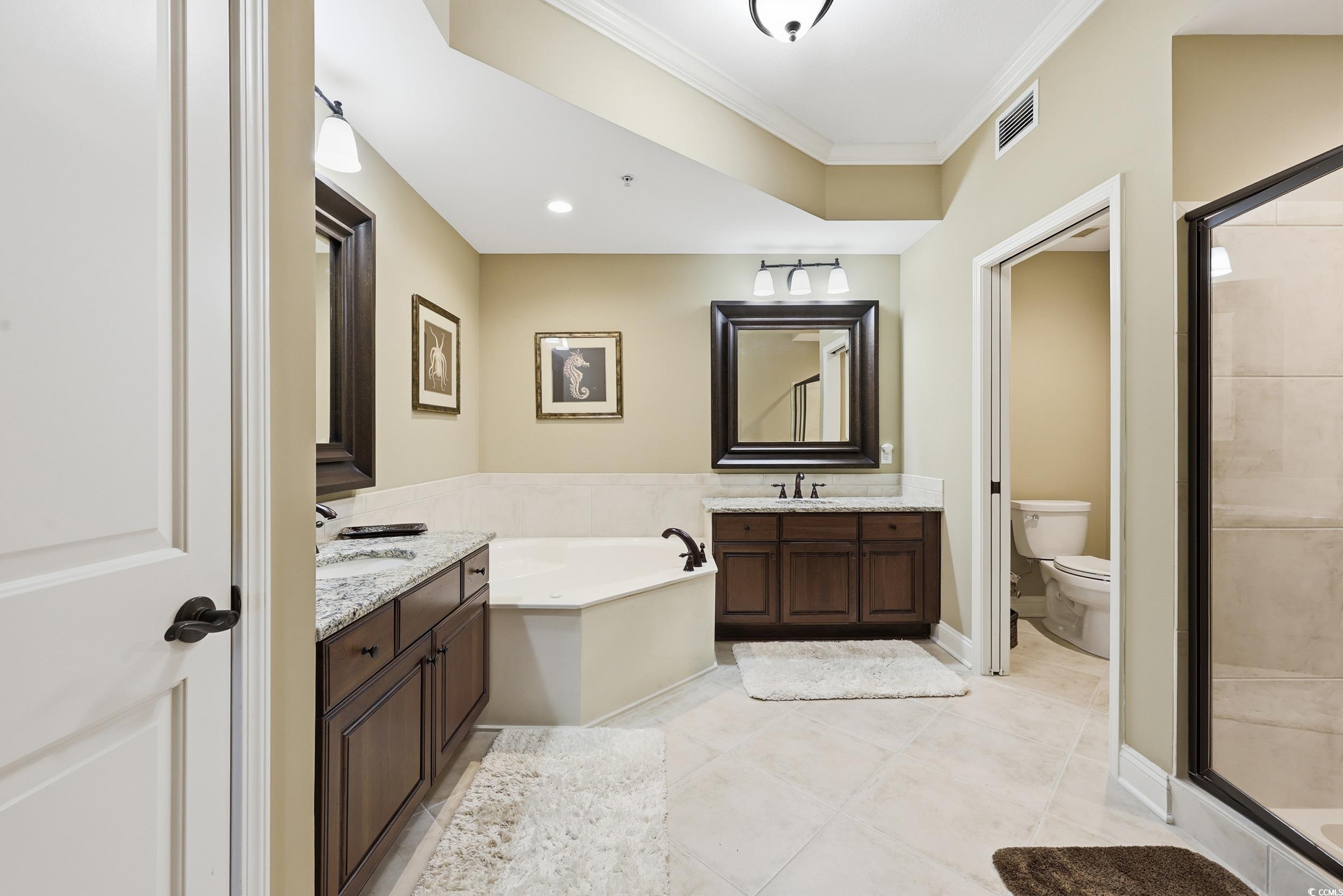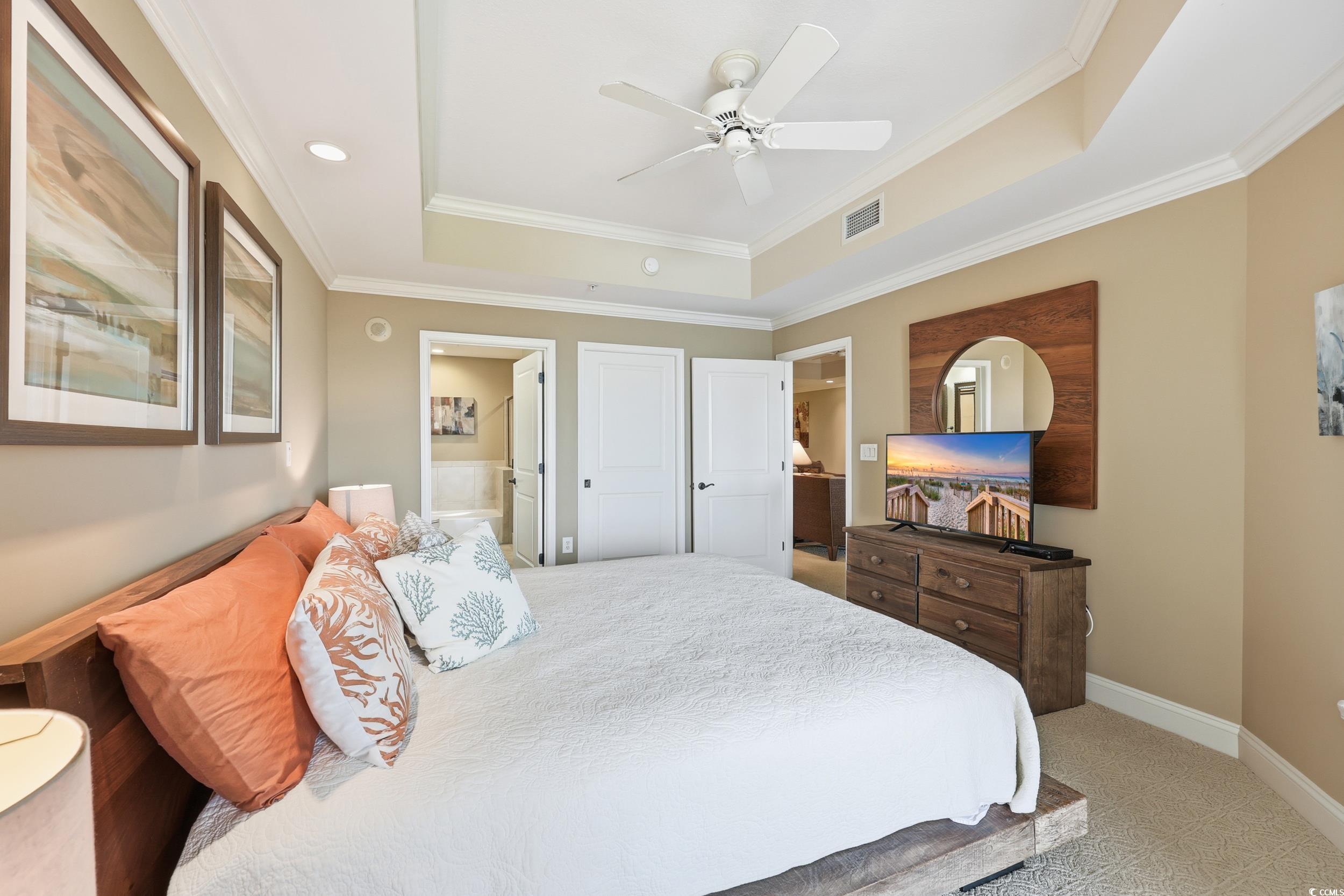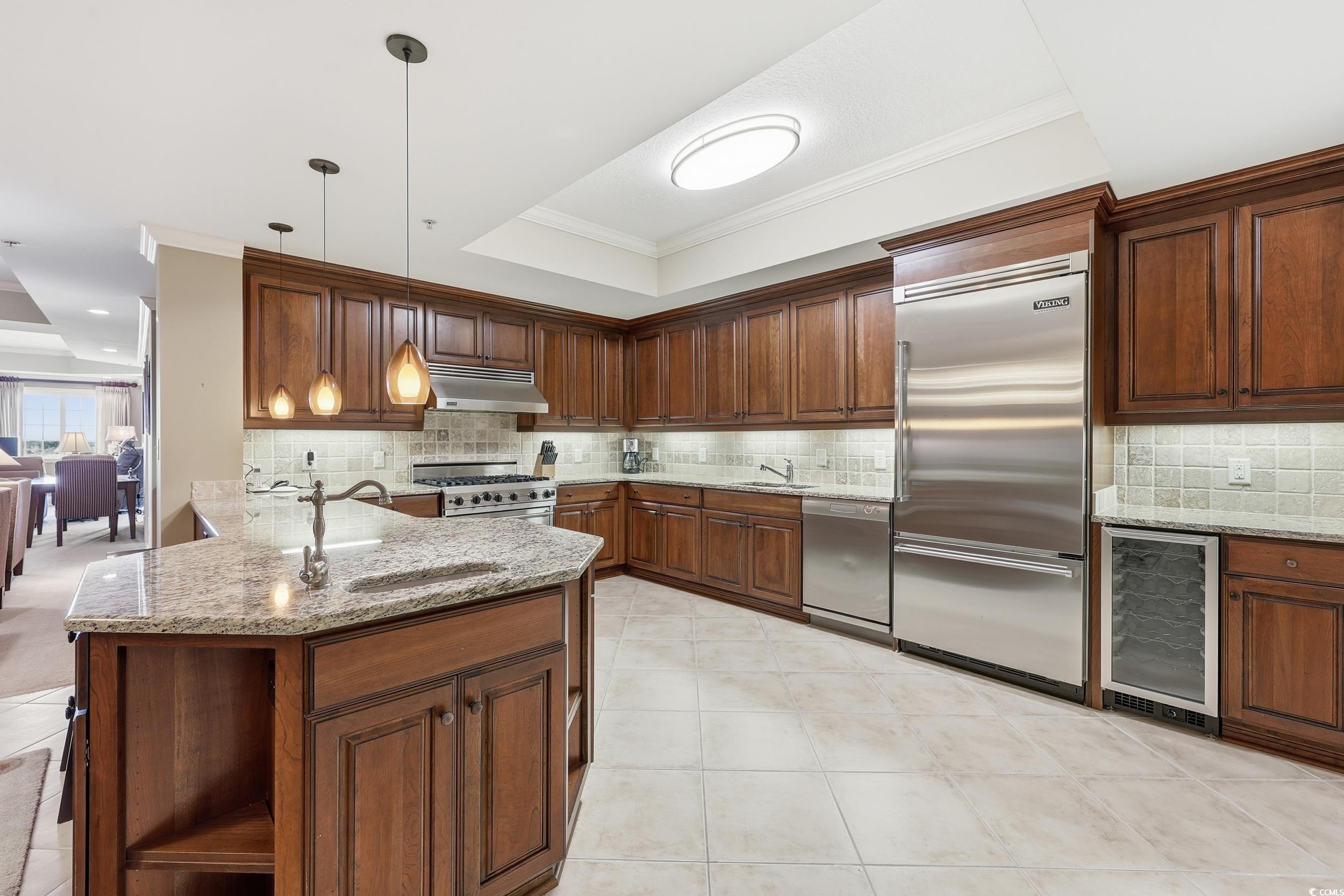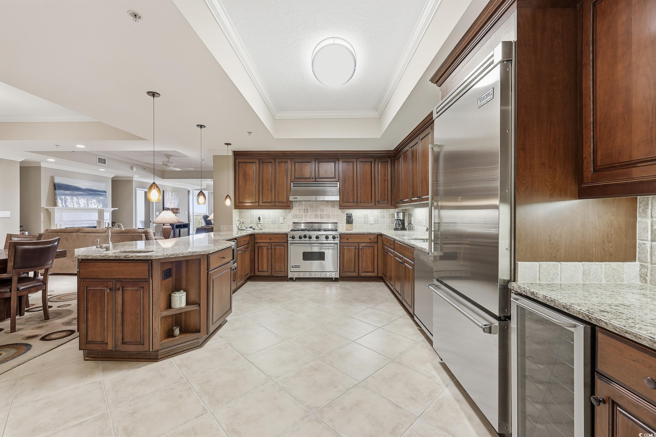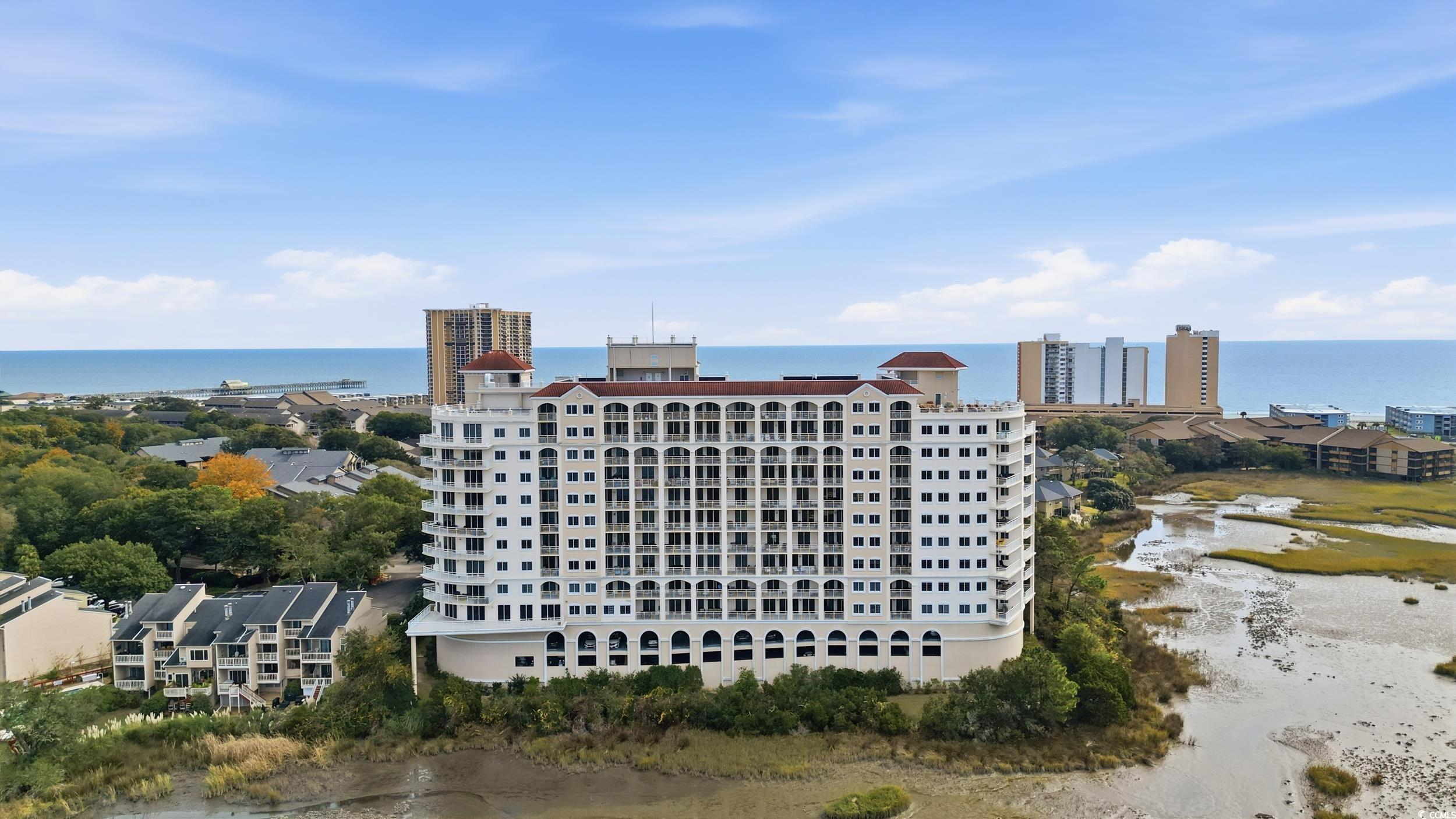 Experience coastal luxury from this beautifully furnished penthouse residence at The Pointe, offering unmatched panoramic views of the marsh, Dunes Lake, and the prestigious Dunes Golf Course. The Pointe is a secure, gated luxury high-rise offering 24-hour lobby access, private parking, individual storage rooms, an indoor pool, fitness center, and an elegant owners lounge with full kitchen and billiards. Long-term rental restrictions ensure a quiet, residential feel. This 3BR/3.5BA condo features an open, spacious layout with two waterfront ensuite bedrooms, each with private balconies overlooking the water, plus a generous third guest suite. The updated gourmet kitchen is equipped with Viking professional appliances, including a 6-burner gas range, oversized refrigerator/freezer, wine cooler, and custom range hood, perfect for those who love to cook or entertain. High-end furnishings, designer lighting, and quality finishes create an inviting, upscale atmosphere throughout. A standout feature is the private rooftop terrace, boasting sweeping views of the ocean, marsh, and golf course, ideal for sunsets, relaxing, or stargazing. All of this is just a short walk to the beach and minutes from everything Myrtle Beach and North Myrtle Beach have to offer.