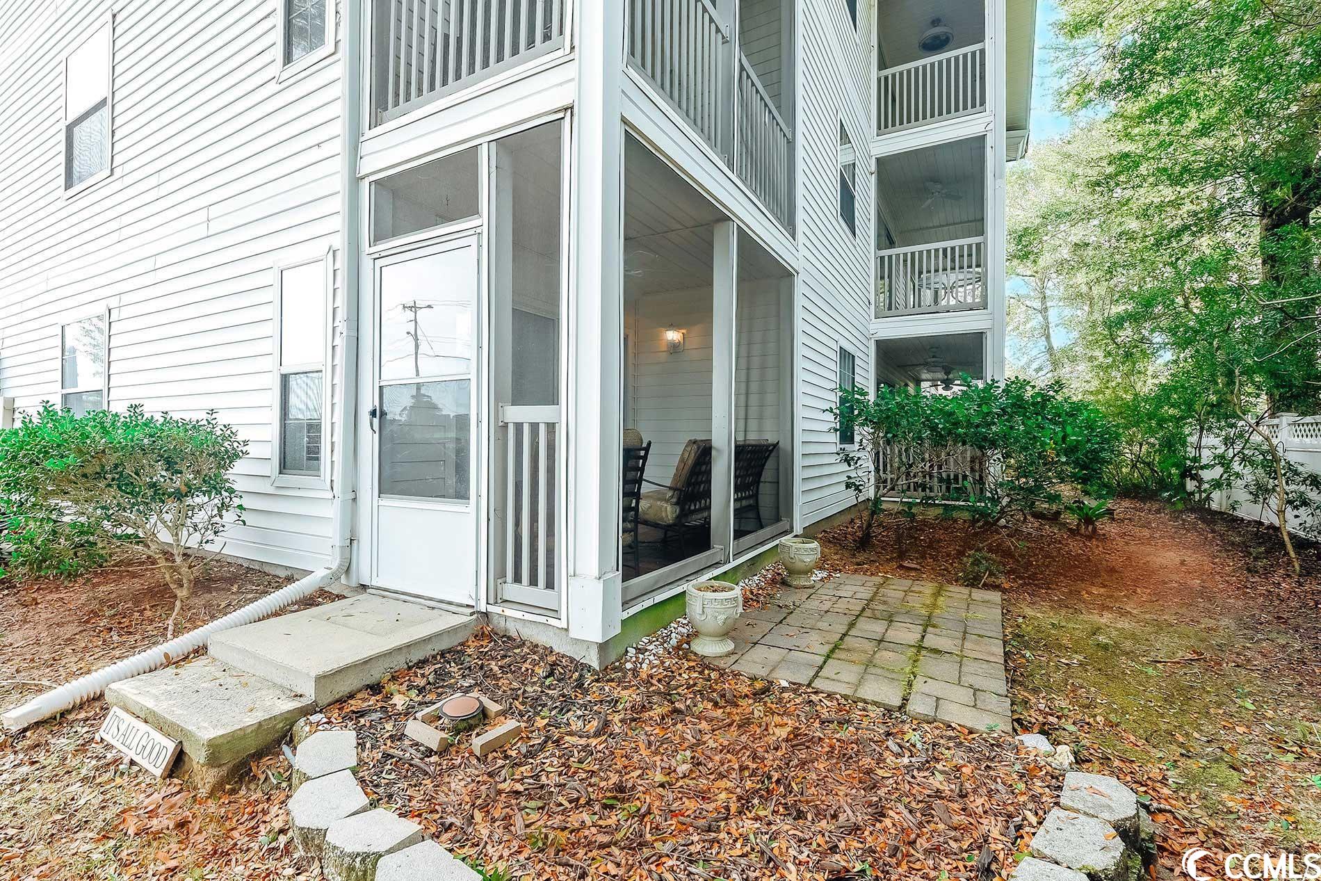 Welcome to Maison Place, where luxury meets convenience in this fantastic first-floor condo! This 2-bedroom, 2-bathroom home is newly painted, has newly installed plantation shutters, fully furnished and ready for you to move in or use as an excellent investment property, allowing both short-term and long-term rentals. Nestled in a tranquil section of the Shore Drive area, Maison Place provides the perfect balance of serenity and proximity to the beach. The condo boasts an abundance of natural light, thanks to numerous windows, and features an extraordinary screened porch, offering a perfect spot to unwind. This end unit condo comes with additional perks, including a gated storage area for golf carts and an outdoor storage closet for your beach essentials. If you're a beach enthusiast, you'll appreciate the short walking distance or golf car ride to the sand. Indulge your culinary skills in the gourmet kitchen equipped with plenty of counter-top space, and new lighting. The great room with new furniture provides ample seating for friends and family, with a new flat screen TV for viewing. The master bedroom offers a private en-suite bathroom and new ceiling fan. Both bathrooms have new upgraded toilets. Access the screened porch directly from the great room, creating a seamless indoor-outdoor living experience. Imagine enjoying a relaxing break on the porch during sunset after a sun-soaked day at the beach from your private retreat. For your convenience, there's a private golf cart corral and an outdoor owner's closet to store all your beach necessities.