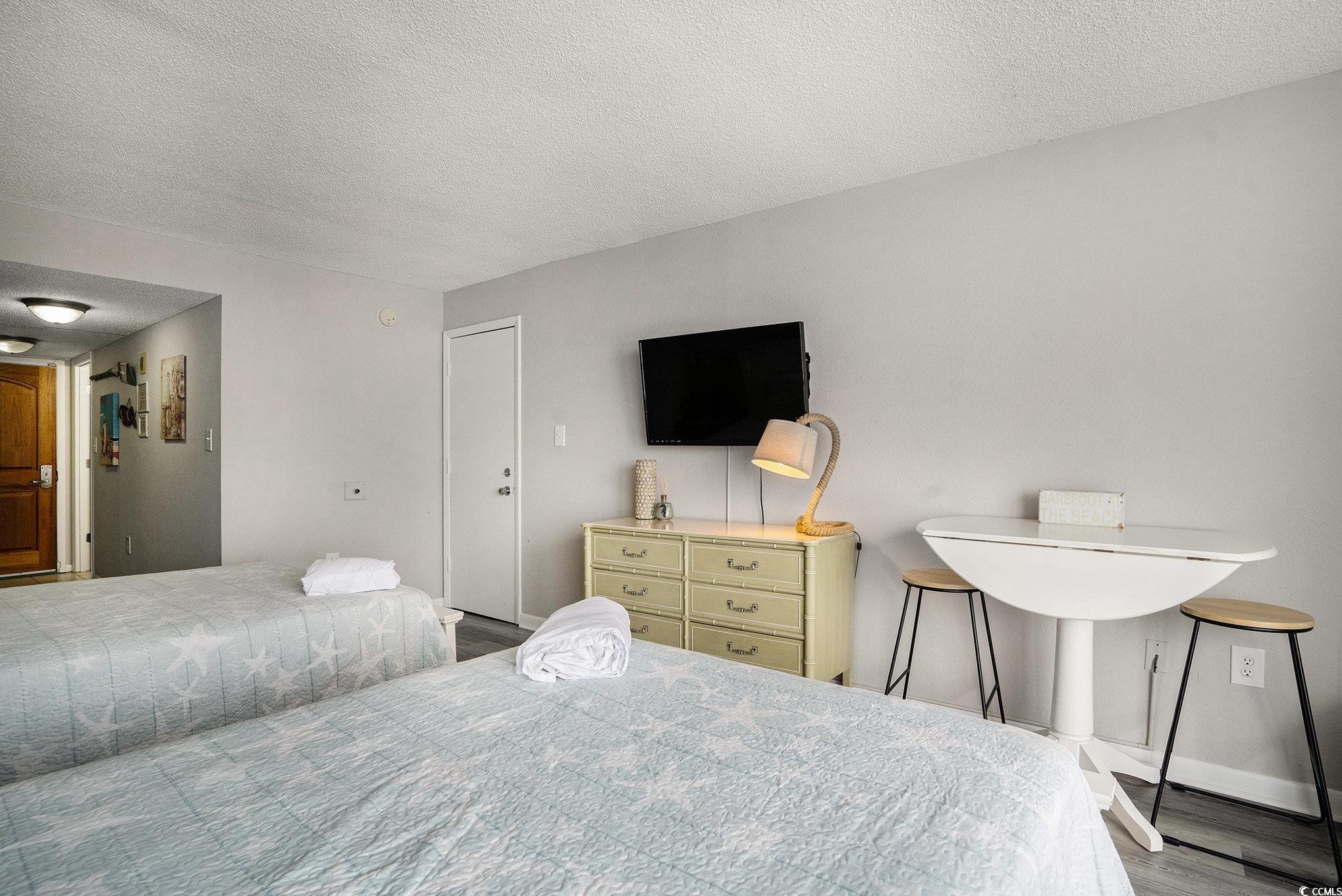 Cozy efficiency unit with ocean views, tile flooring, and plenty of natural light. Features two double beds, a full bath with tub/shower, and a kitchen with full-size refrigerator, stove, and microwave. Located in Sands Ocean Club, just minutes from shopping, dining, golf, and attractions. Enjoy resort amenities including indoor and outdoor pools, lazy river, spa, on-site dining, shops, and the iconic Ocean Annie's Beach Bar. Perfect for a vacation retreat, investment property, or primary residence in the heart of the Grand Strand.
