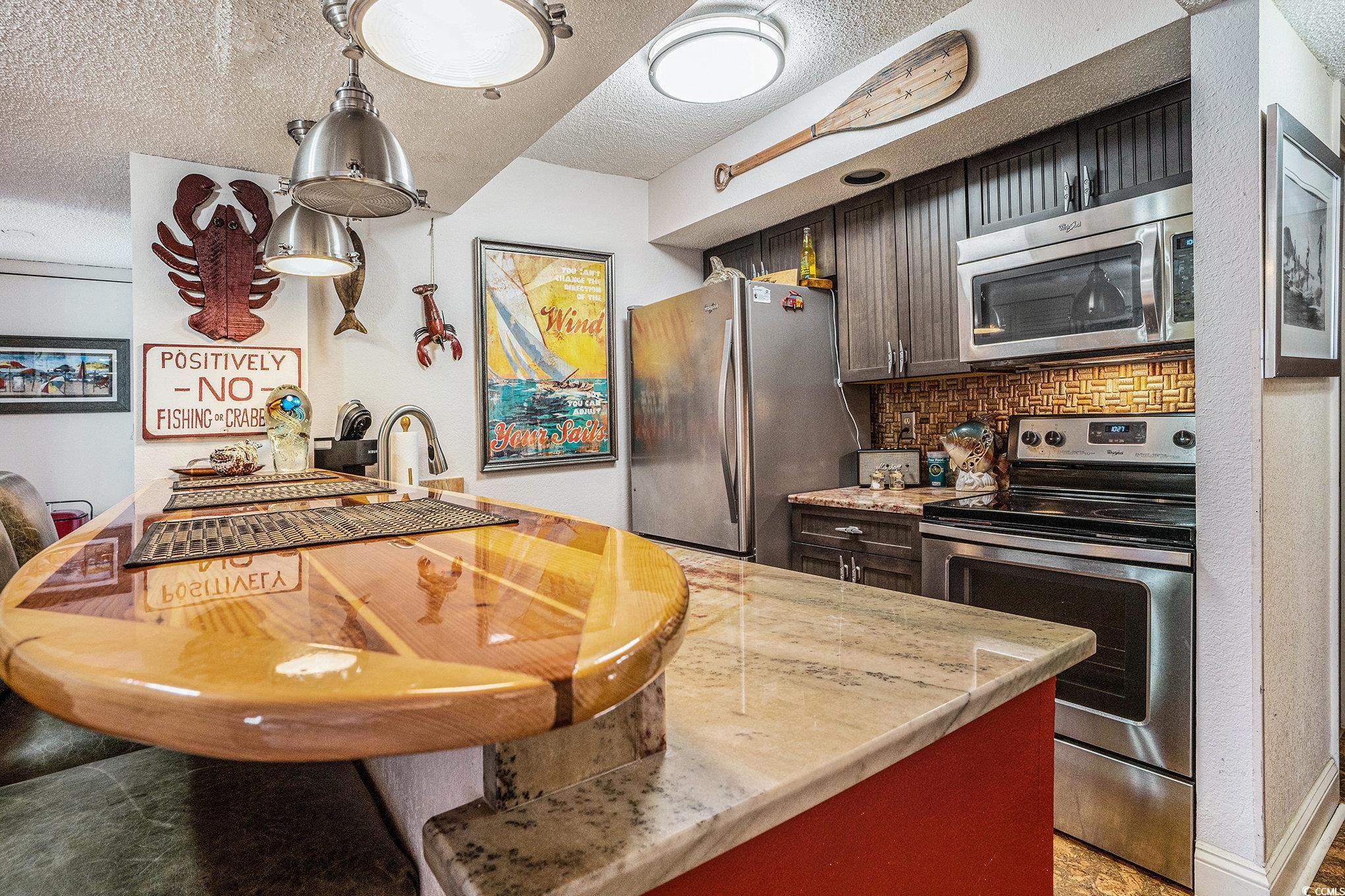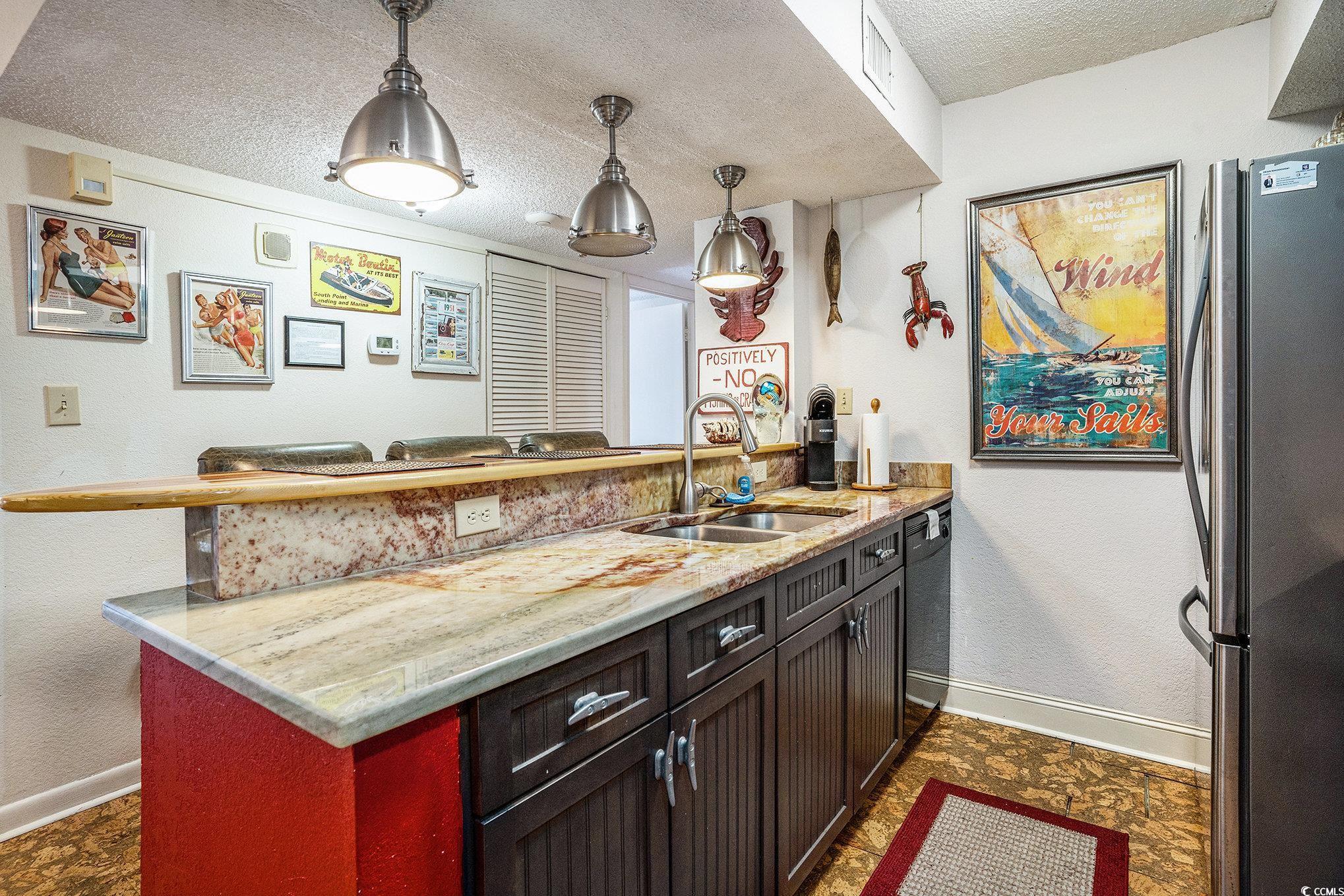 Bright and airy 2-bedroom, 2-bath ocean-view condo featuring cork flooring throughout and tile in the baths. Enjoy abundant natural light, plantation shutters, and a balcony with ocean views. The full kitchen offers granite countertops, ample cabinet space, and a unique surfboard-style bar top?perfect for coastal living. Located in Sands Ocean Club, just minutes from shopping, dining, golf, and attractions. Enjoy resort amenities including indoor and outdoor pools, lazy river, spa, on-site dining, shops, and the iconic Ocean Annie's Beach Bar. Perfect for a vacation retreat, investment property, or primary residence in the heart of the Grand Strand.
