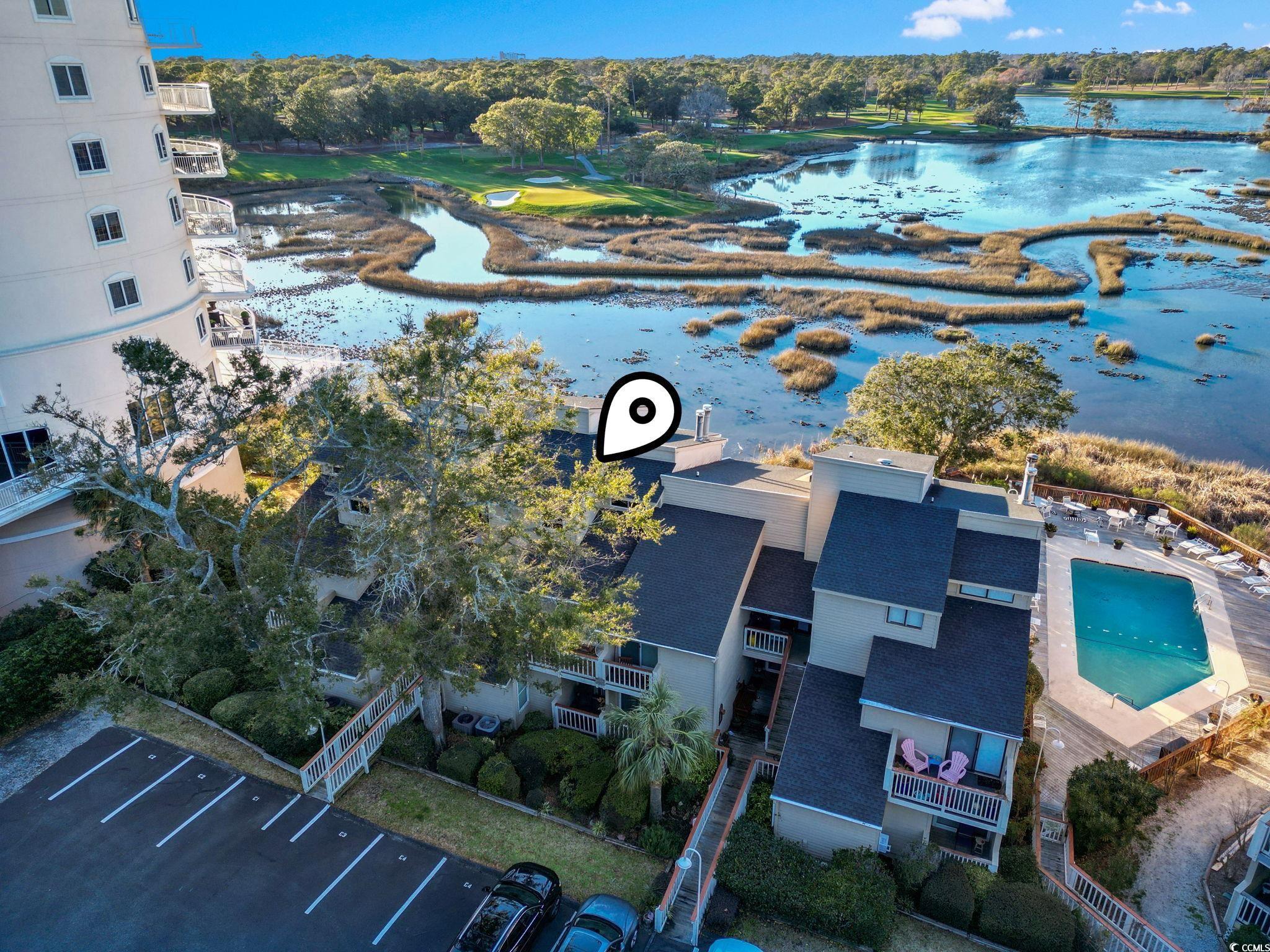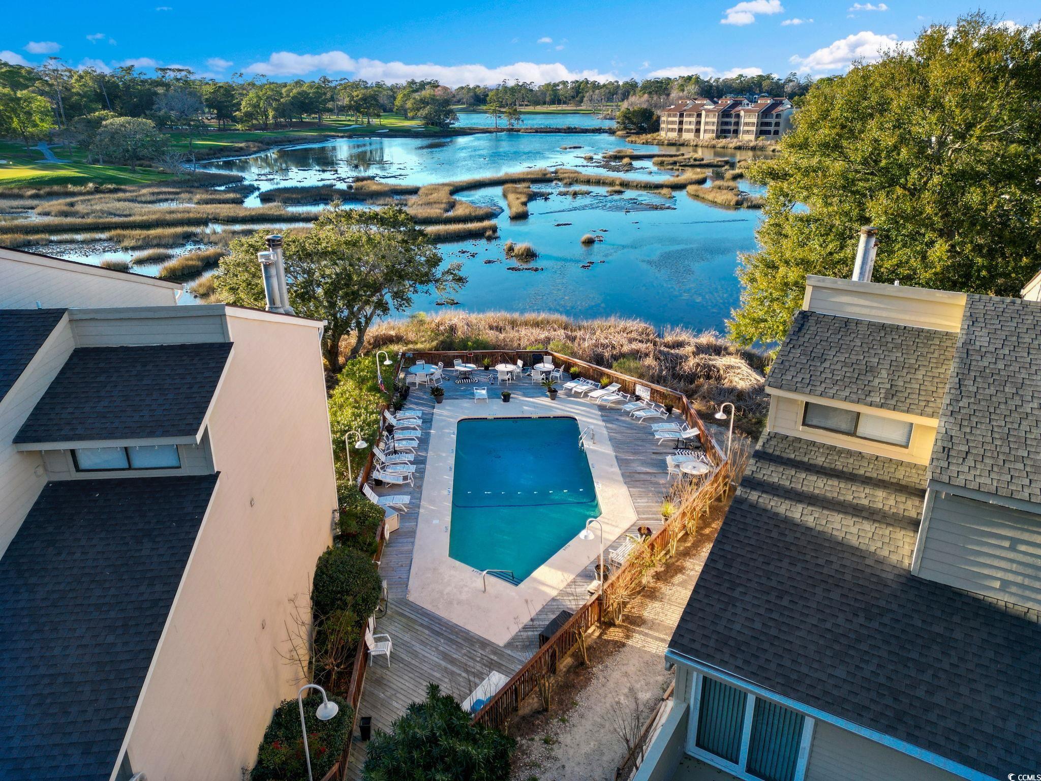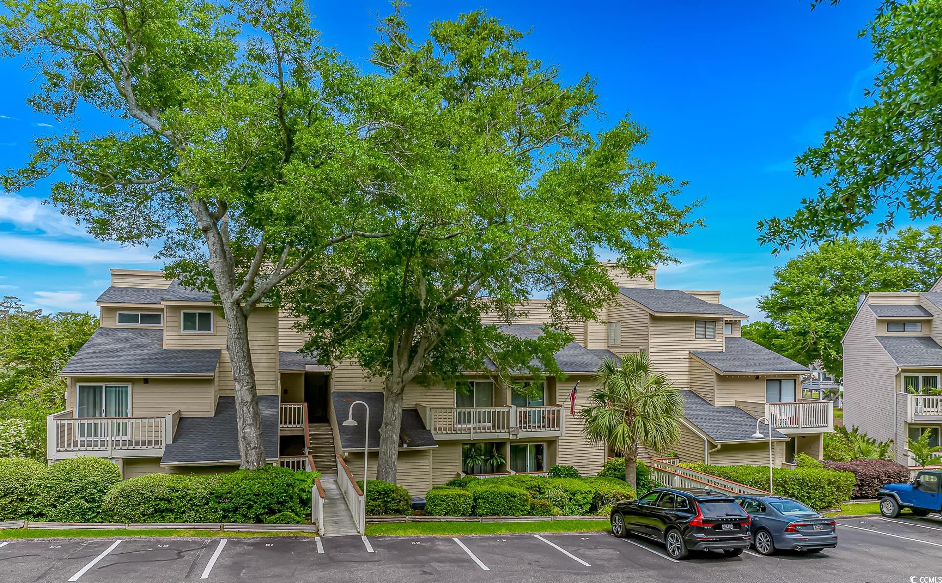 Beautifully updated 2 bedroom 2 bath condo with spectacular marsh views and new paint and flooring. The kitchen includes updated stainless steel appliances, granite counter tops and white cabinets. The dining area is large enough for a table with 6 chairs and looks out on a deck with sliders leading to the amazing marsh views. The living area features a cathedral ceiling, ceiling fan and stone front wood burning fireplace. You will enjoy the natural sunlight in this condo and the assigned parking. The primary bedroom is a comfortable size and has plenty of room for a King or Queen sized bed and includes an attached bathroom. If you are looking for a small quiet neighborhood close to the beach that allows golf carts, this is the condo for you. Some photos have been virtually staged.