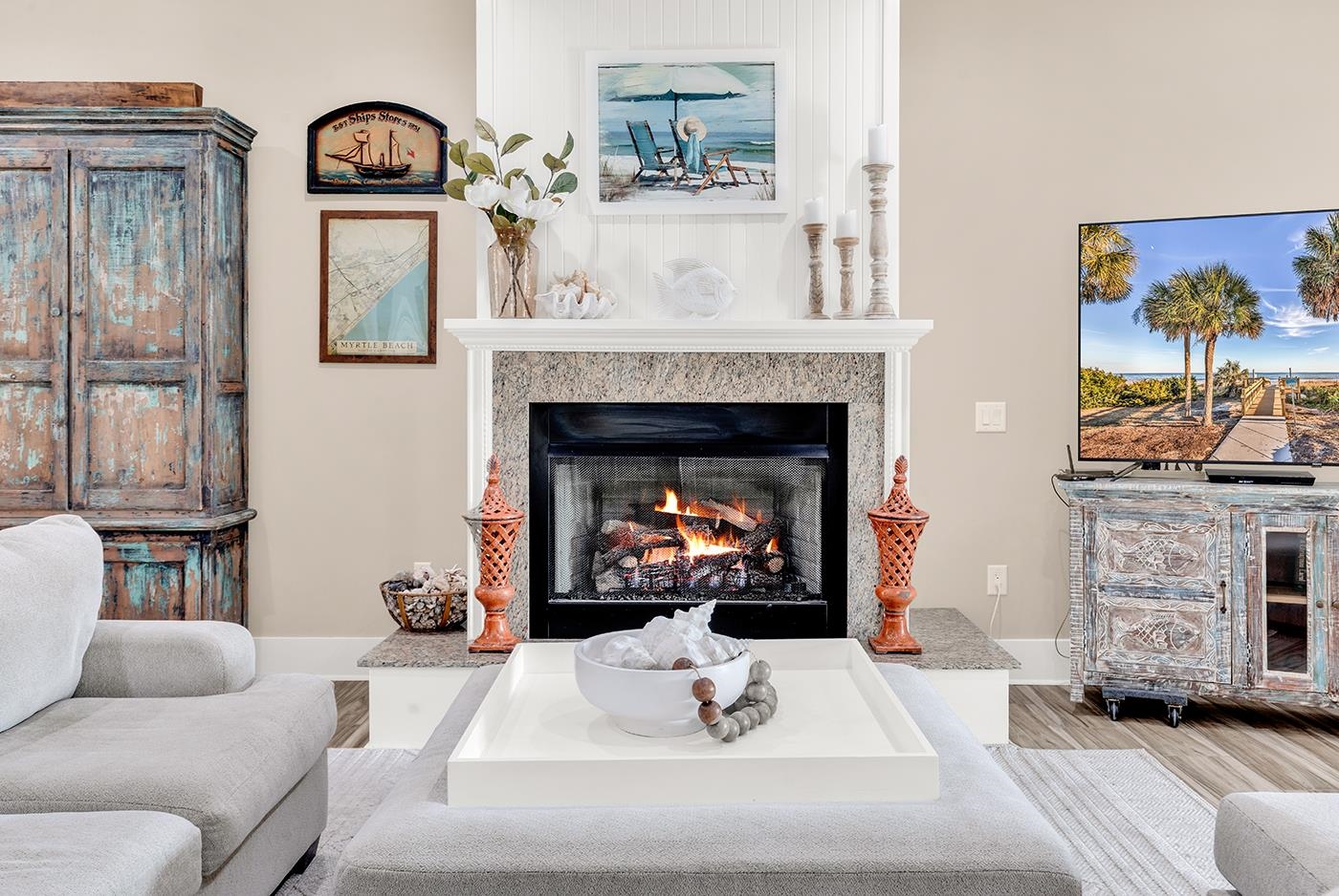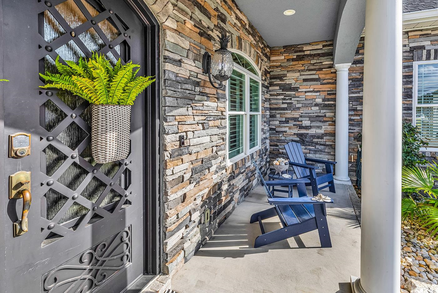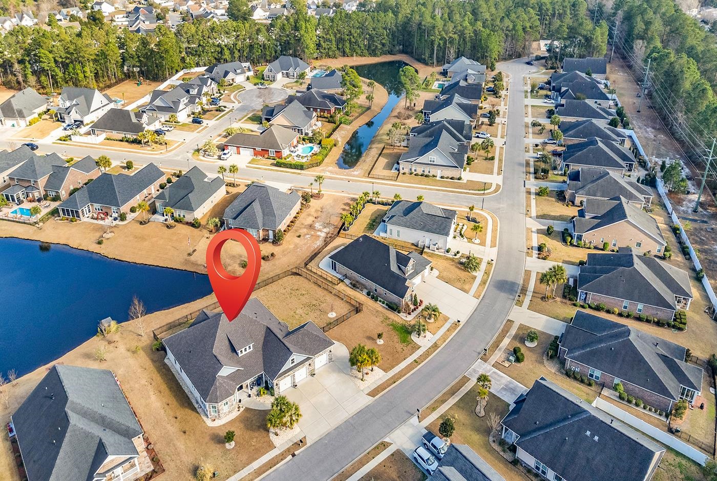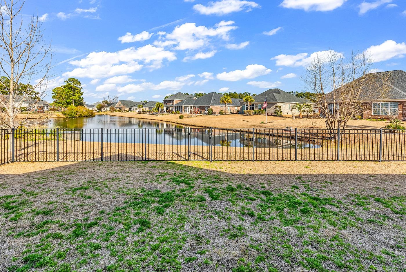 This beautifully designed 3BR/3.5BA custom-built luxury residence offers 3,543 heated sq ft and is situated on a rare 0.44-acre double lot in the gated Covington Lake East community in Carolina Forest. Entering through the striking double iron front doors, you immediately experience the luxury and craftsmanship found throughout the home. The chef-inspired gourmet kitchen is the star of the show, featuring upgraded cabinetry, a 9' x 4' two-tone quartz island, butler’s pantry, breakfast area with bay window and built-in bench seating, and breakfast bar, along with an imported Italian dual-fuel range, wall oven, microwave, and glass tile backsplash. The open floor plan showcases 10' ceilings, 8' doors, ceramic wood-look plank flooring, plantation shutters, and a spacious great room with a gas fireplace. A formal dining room with tray ceiling and decorative pillars provides an elegant space for gatherings, while the turret-shaped office offers a unique and functional dedicated workspace. The Carolina room features a dramatic 14' vaulted ceiling, stacked stone fireplace, and four-panel sliding doors opening to a fenced backyard overlooking the pond. The first primary suite offers a spa-style bath with soaking tub, dual sinks, and a walk-in shower with rain head. Bedroom two is also a full En-suite, while bedroom three features a large walk-in closet. Additional highlights include a heated and cooled three-car garage with a truck-depth third bay and attic storage accessible by elevator lift. Construction quality and mechanical systems are detailed in the brochure provided in the documents, as this home offers upgrades too numerous to list.